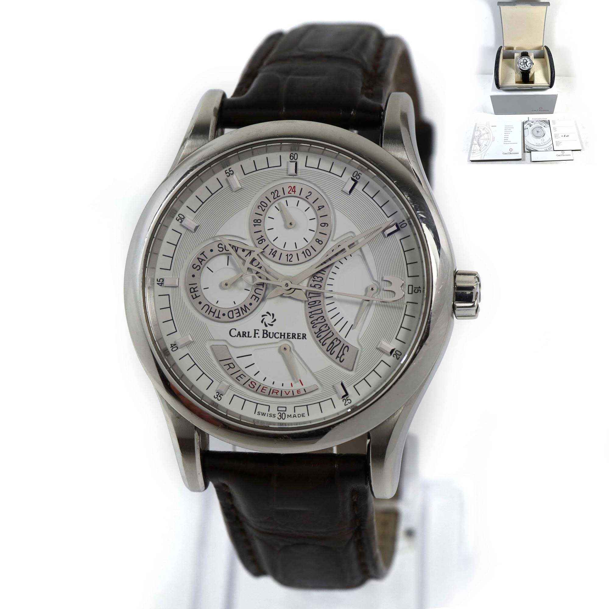 Read Morethis carl f. Bucherer watch is in very good condition showing some minor signs of wear on the case and comes with its box, booklets, and warranty paper dated november 8th, 2007. This watch is in stock and available to ship immediately!