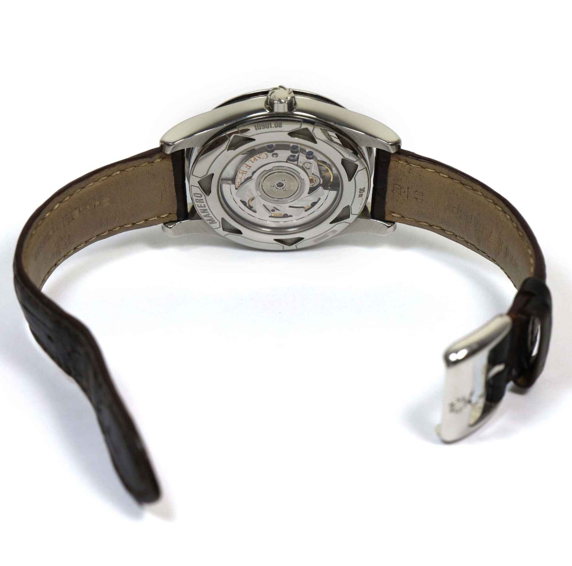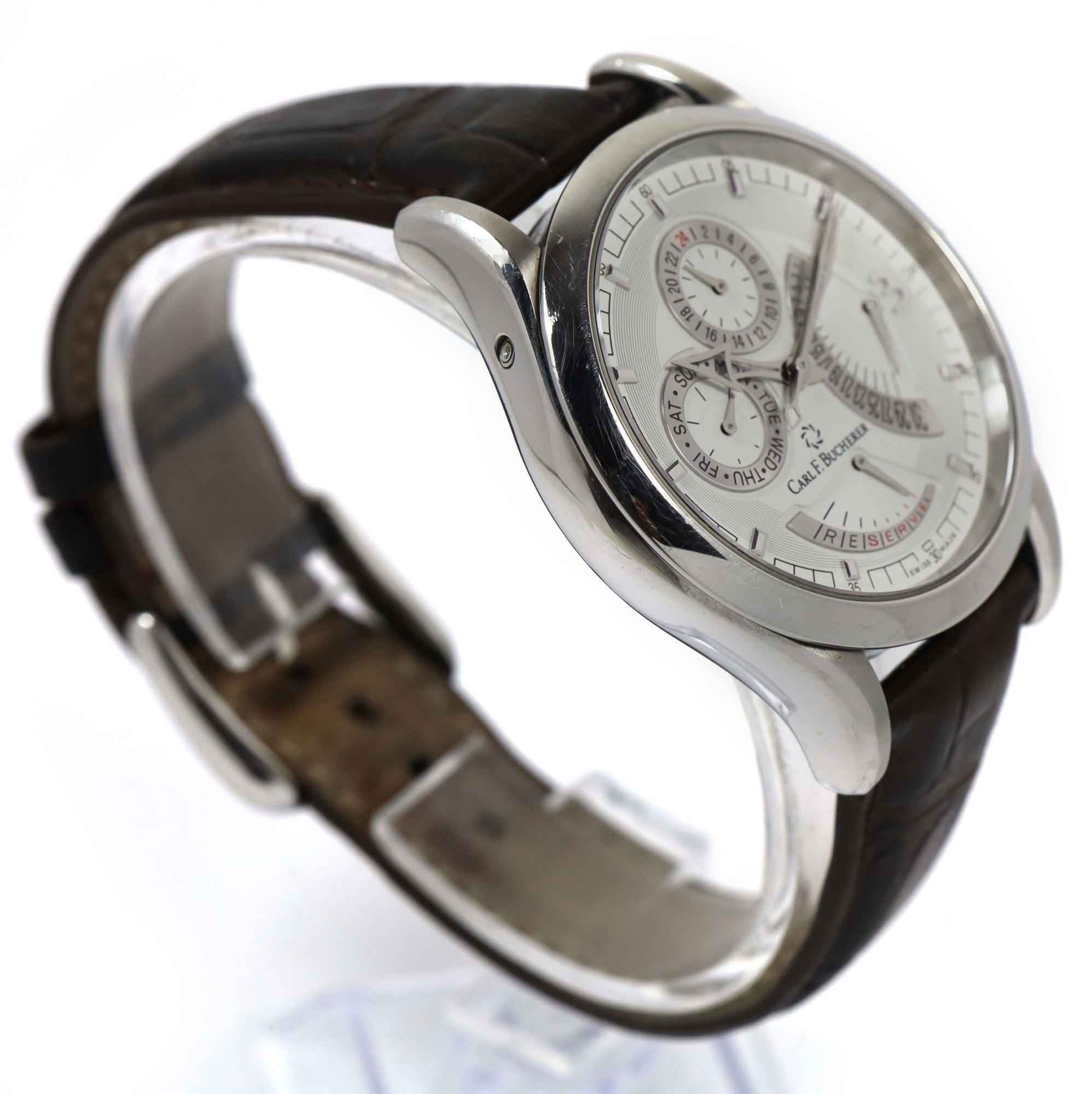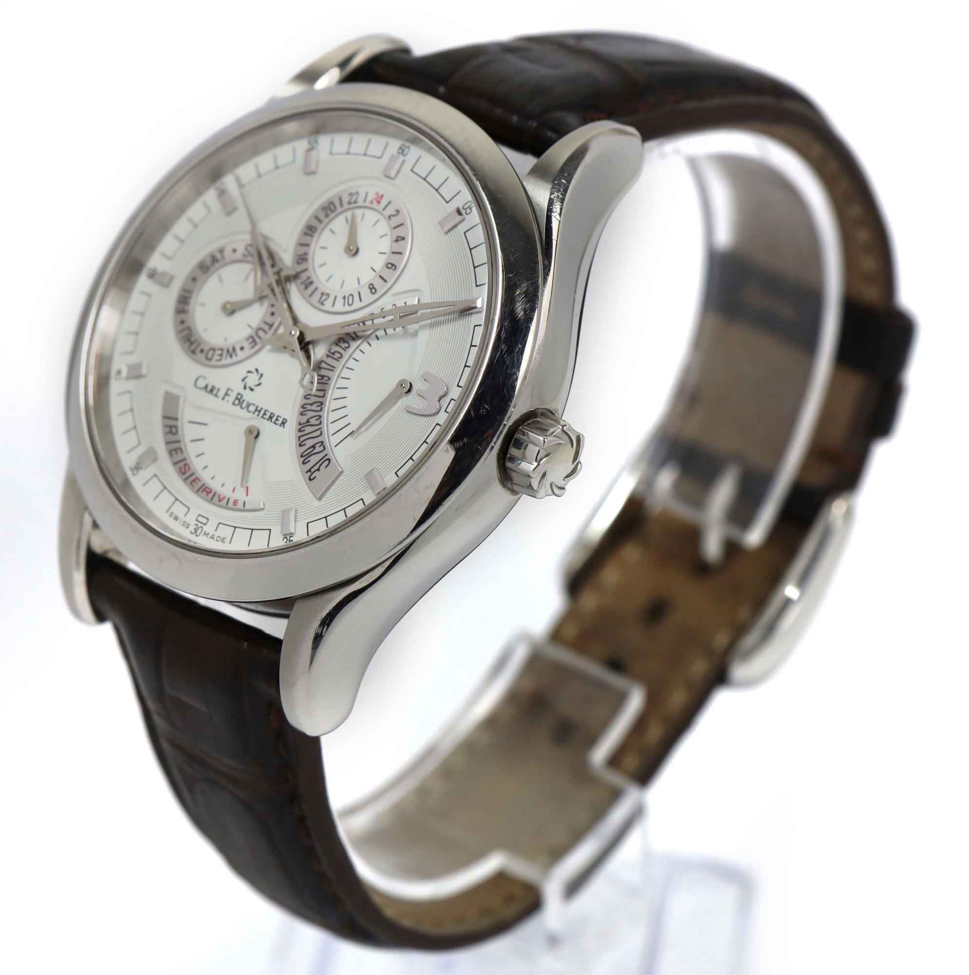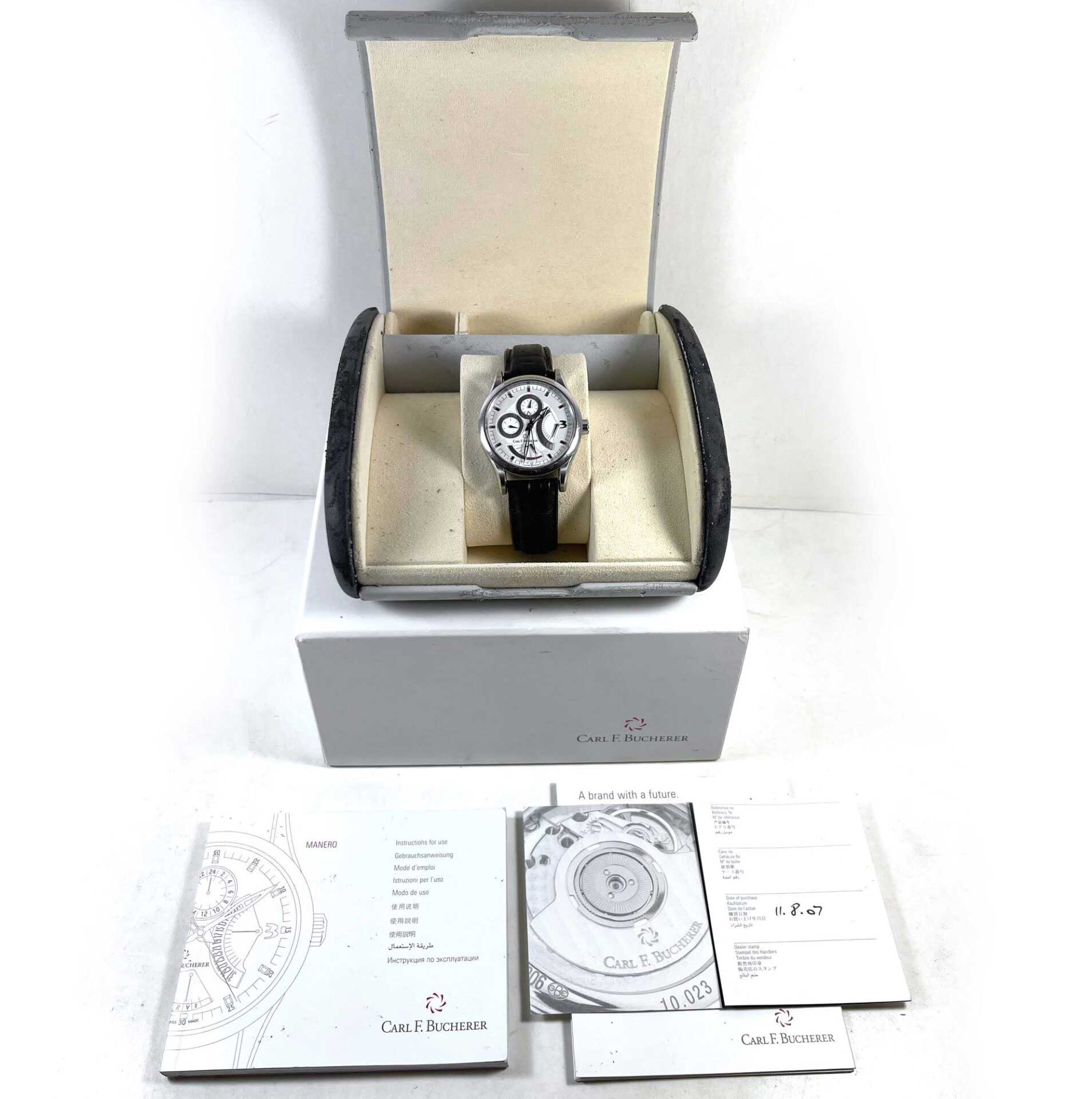 This Carl F. Bucherer watch is in very good condition showing some minor signs of wear on the case and comes with its box, booklets, and warranty paper dated November 8th, 2007. This watch is in stock and available to shi...