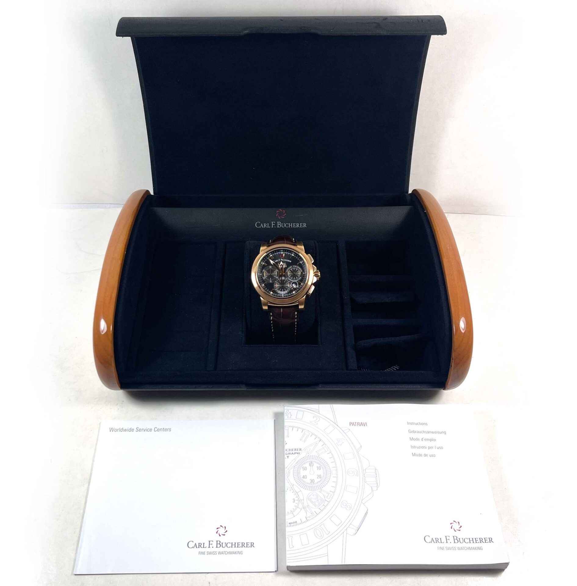 this carl f. Bucherer watch is in excellent condition and comes with its box and booklets only as shown in the pictures attached. This watch is in stock and available to ship immediately!