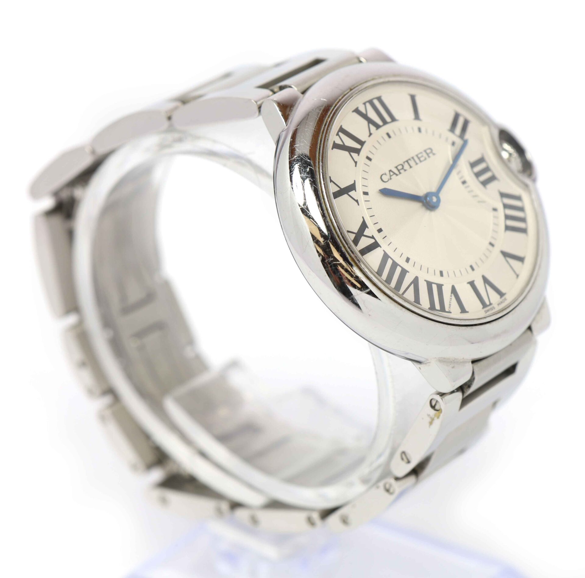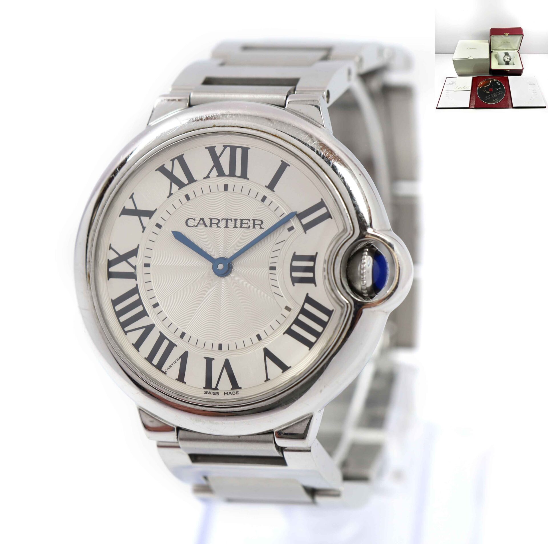 Read Morethis cartier watch is in good overall condition showing some signs of wear on the case and bracelet consistent with preowned watches. This comes with its box, booklets, and warranty paper dated august 16th, 2009 as shown in the pictures attached. This watch is in stock and available to ship immediately!