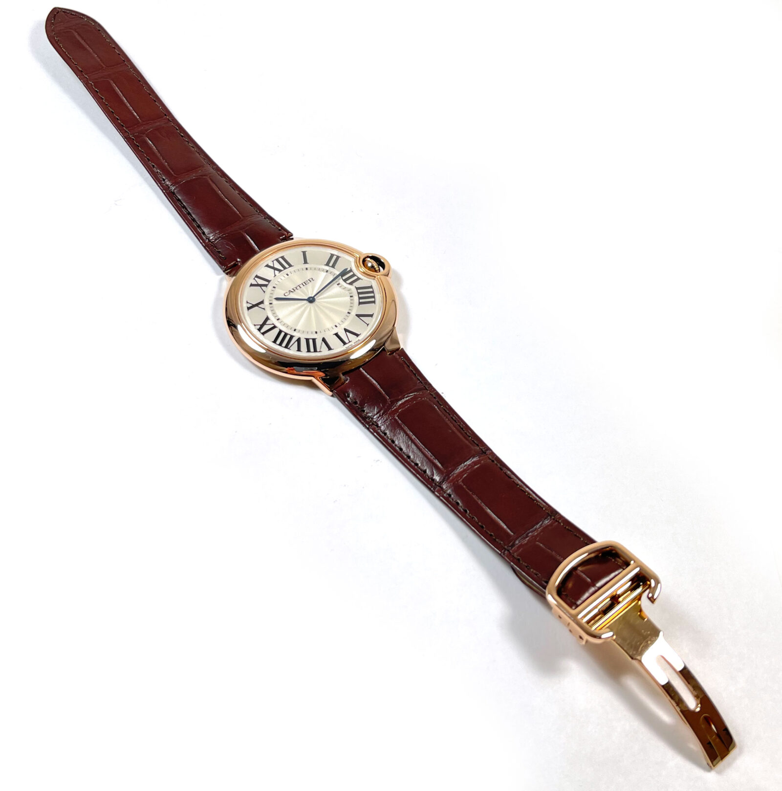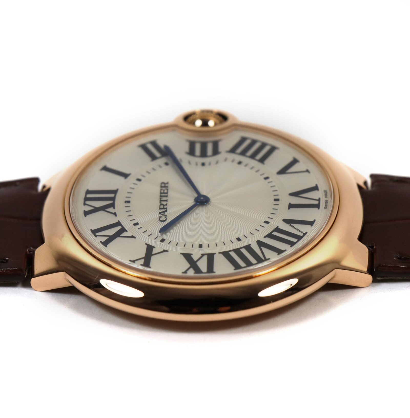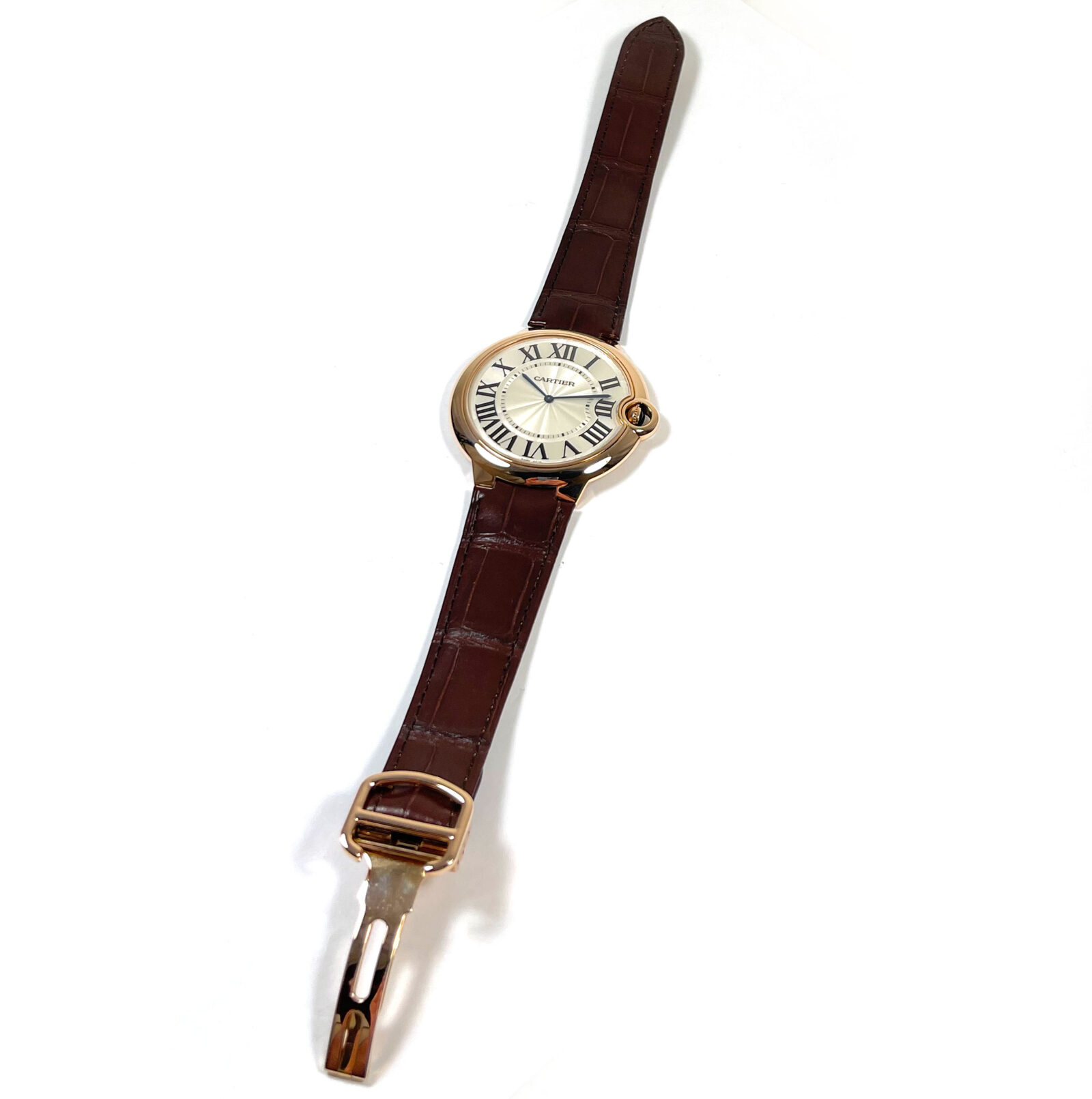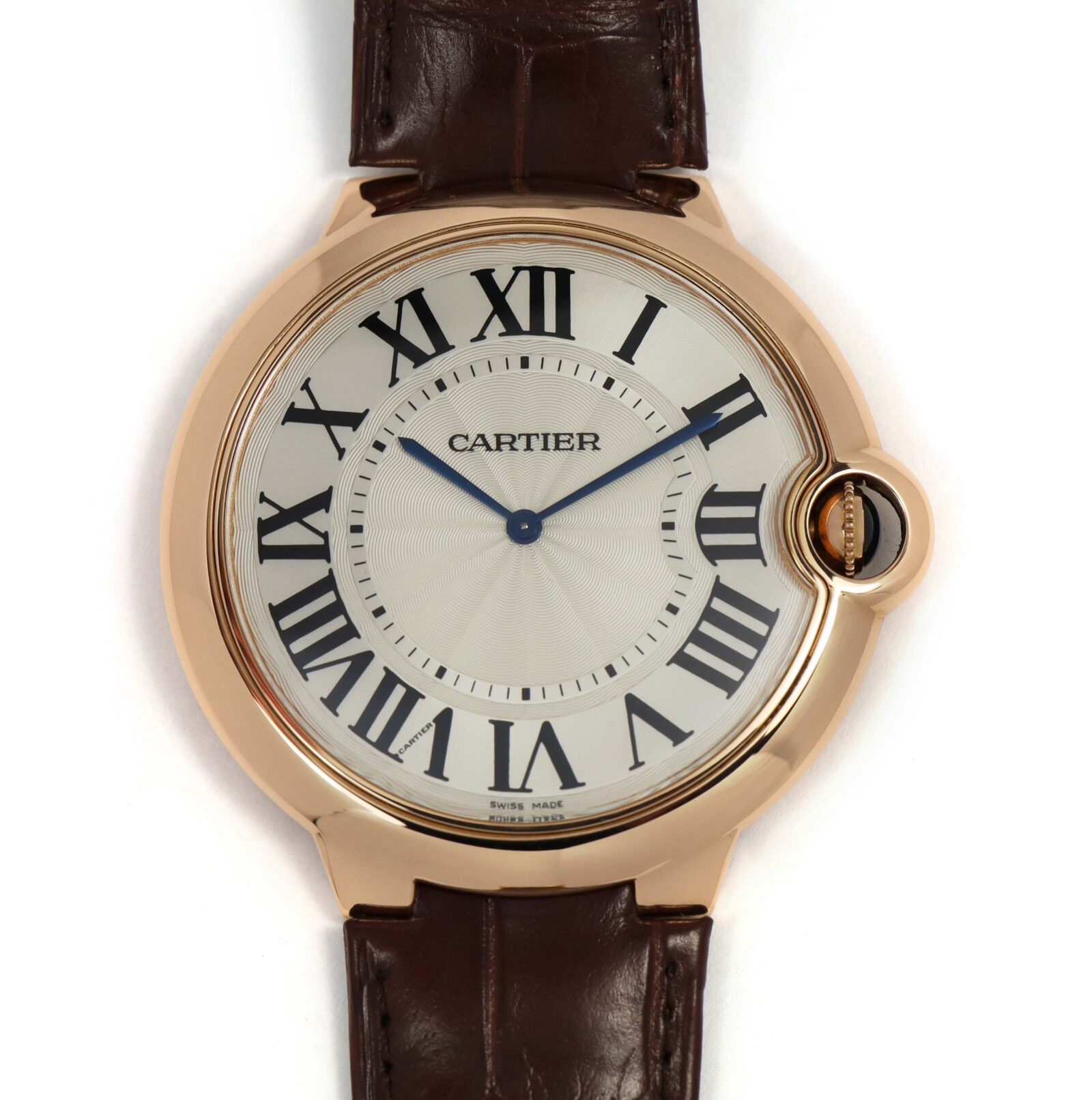 Read Morethis cartier watch is excellent condition and comes as watch only as shown in the pictures attached. This watch features a 46mm rose gold case that surrounds a silver dial and comes on a brand new brown leather strap with a rose gold deployant clasp. This watch is in stock and available to ship immediately!