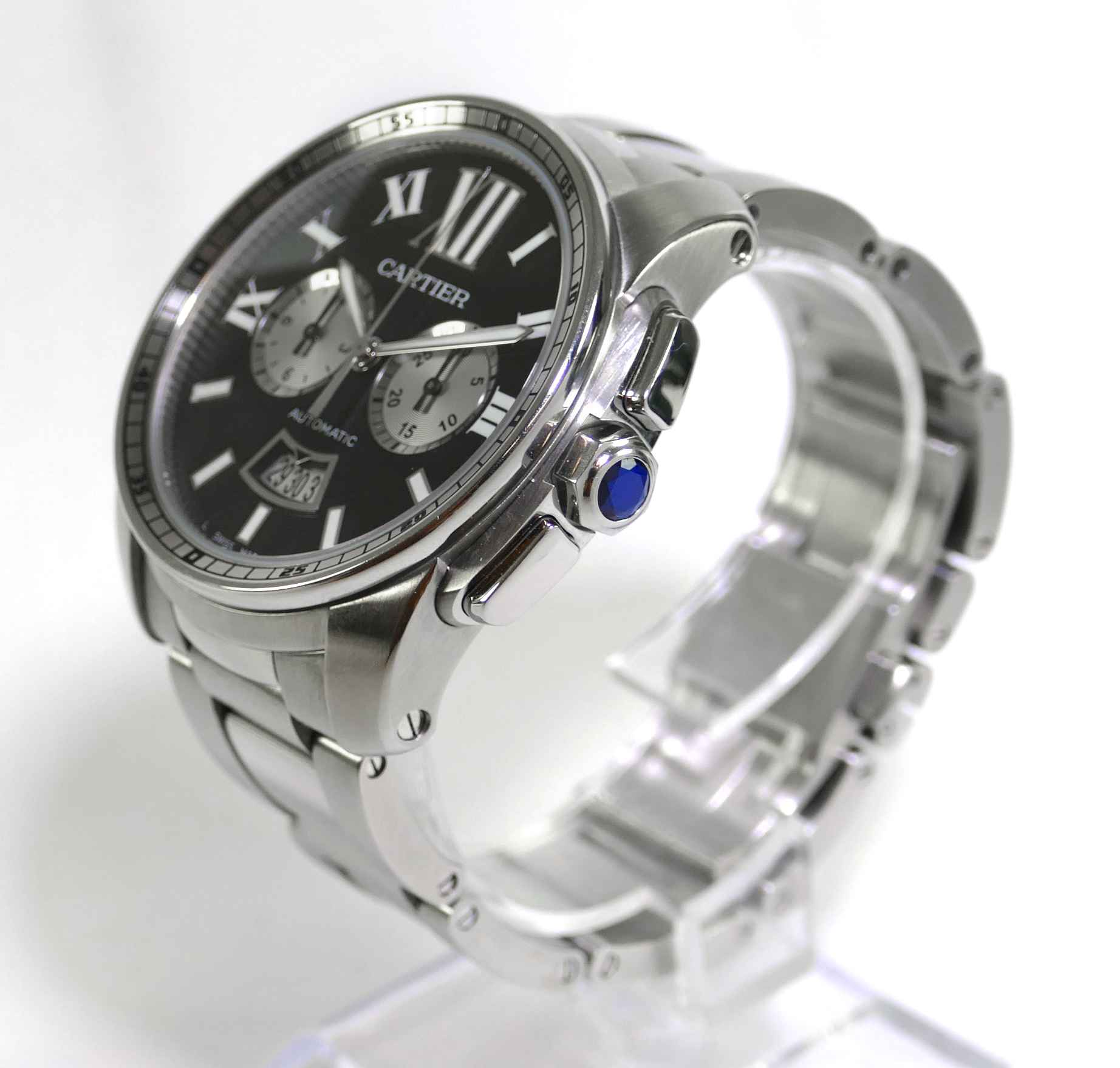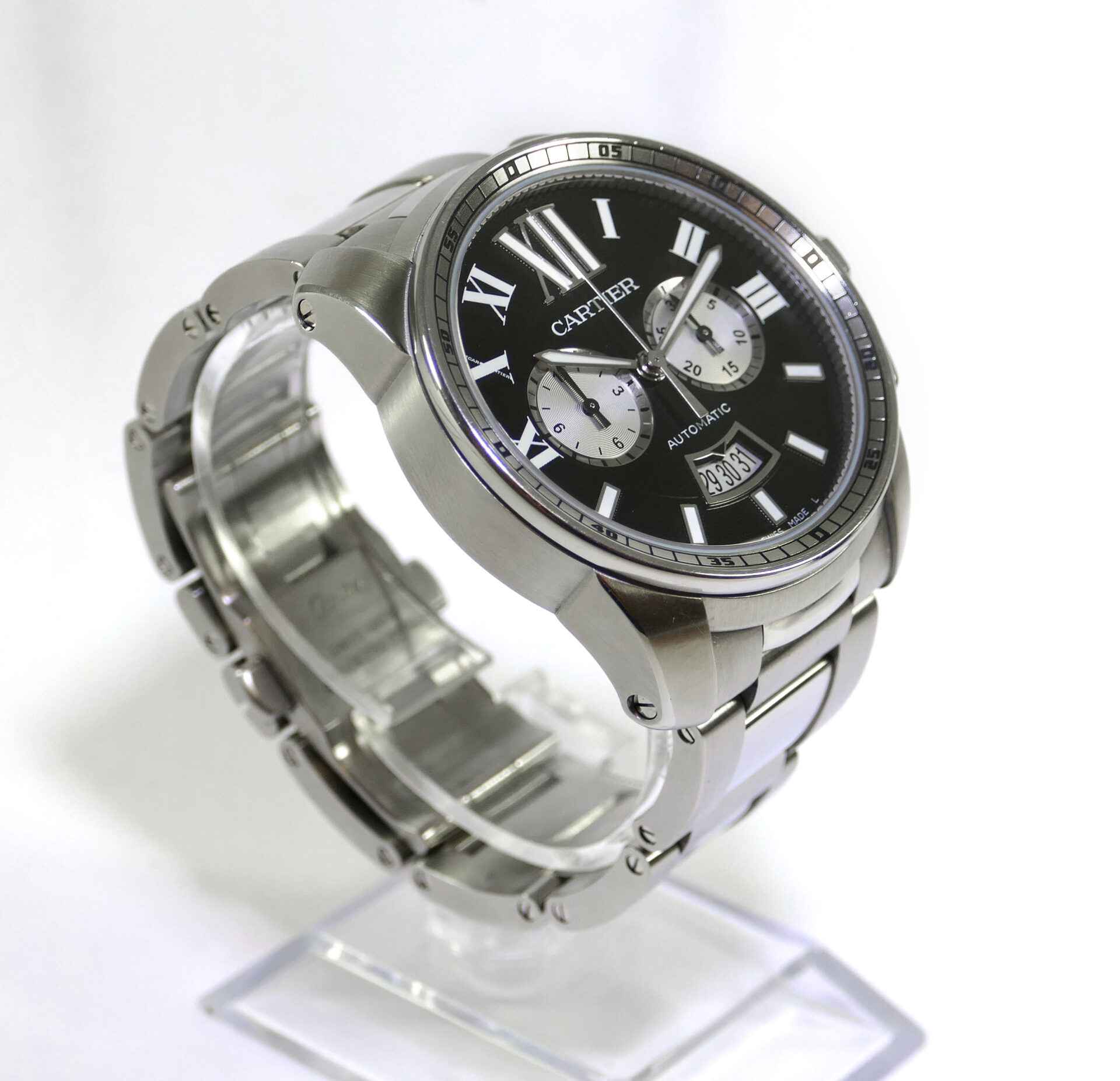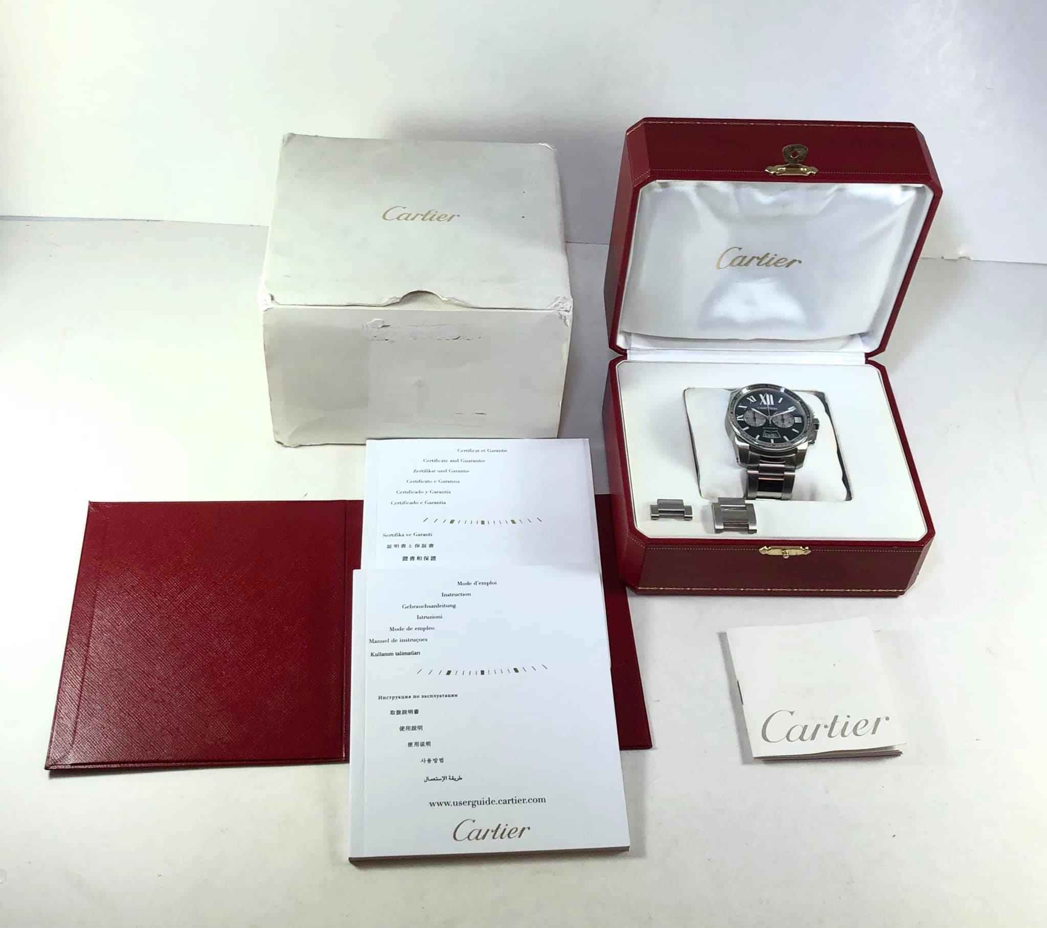 this cartier watch is in great condition and comes with its original box, papers and all links. There are minor signs of wear throughout the case and bracelet.