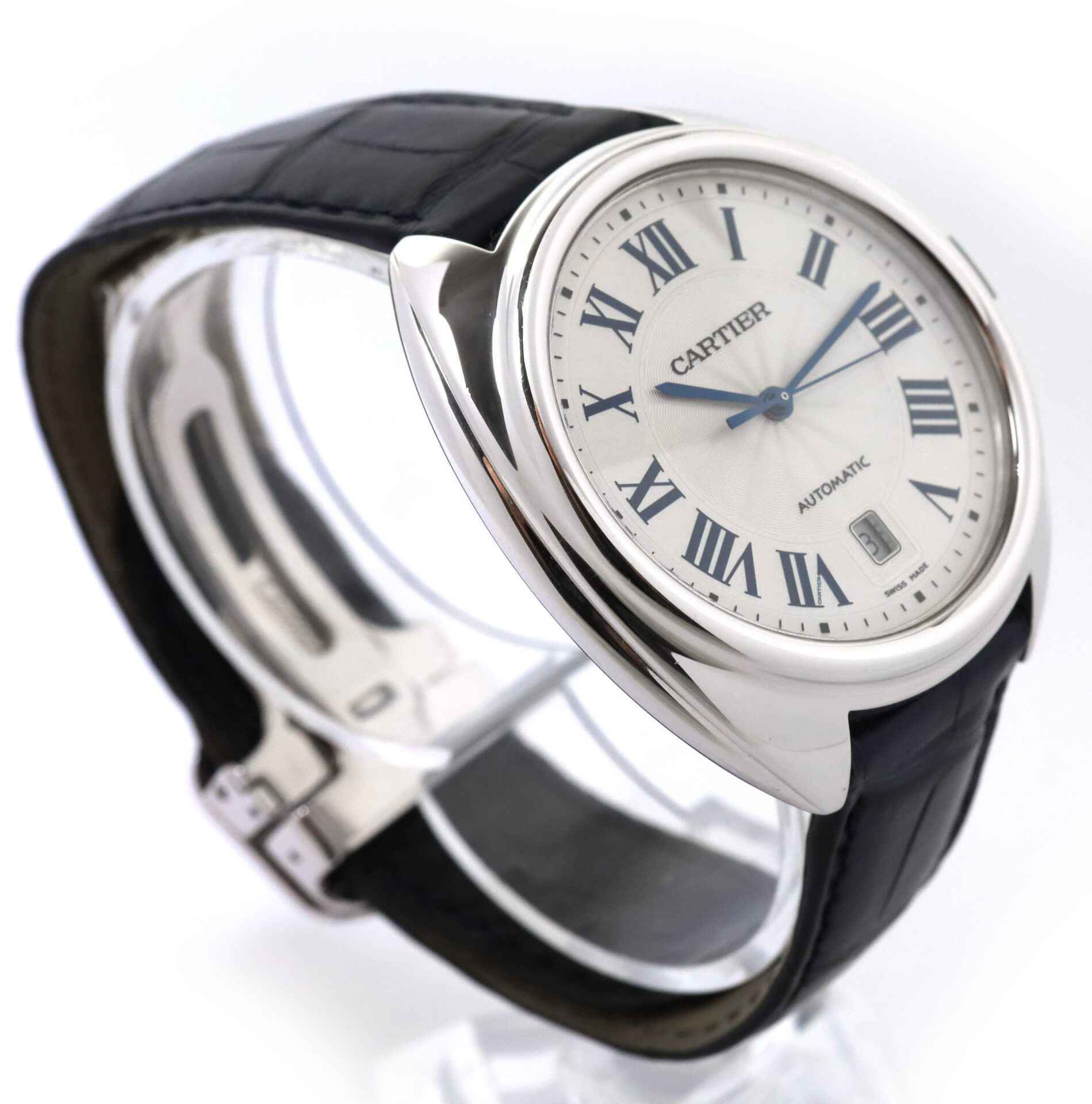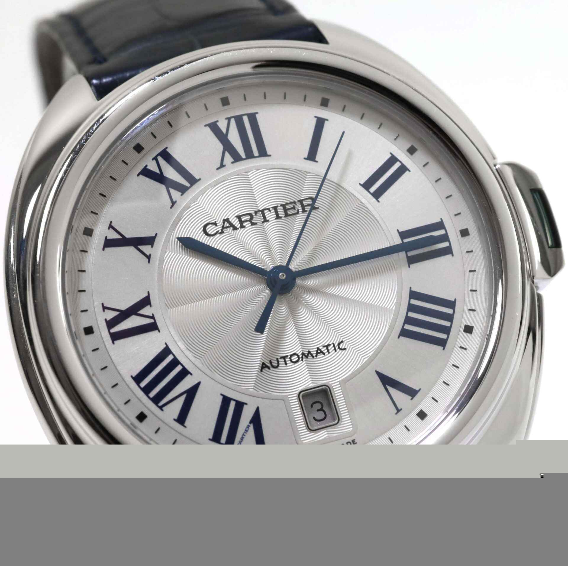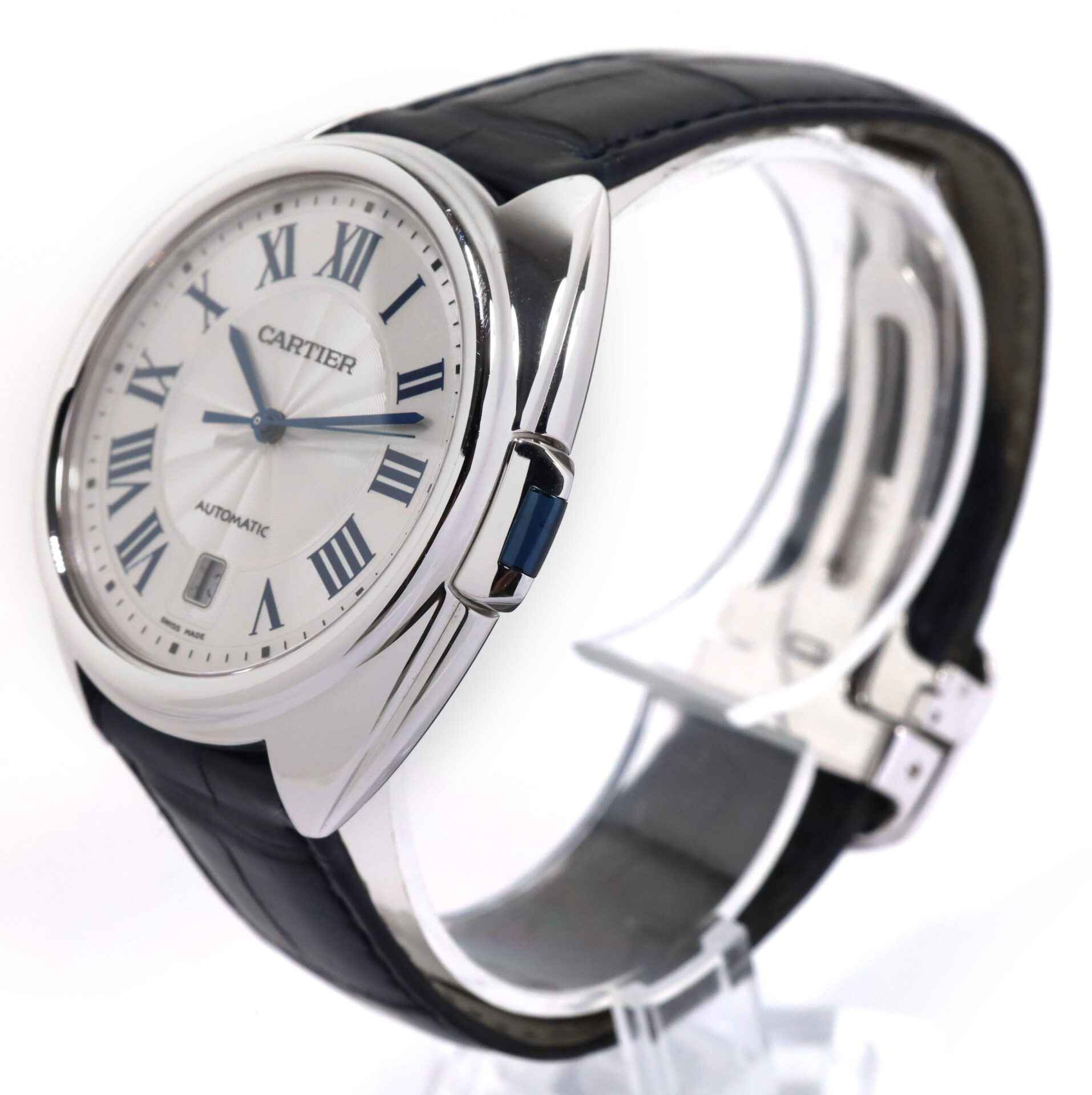 This Cartier watch is in excellent condition and comes as watch only. This watch features a white gold case surrounding a silver dial with Roman numeral hour markers and...