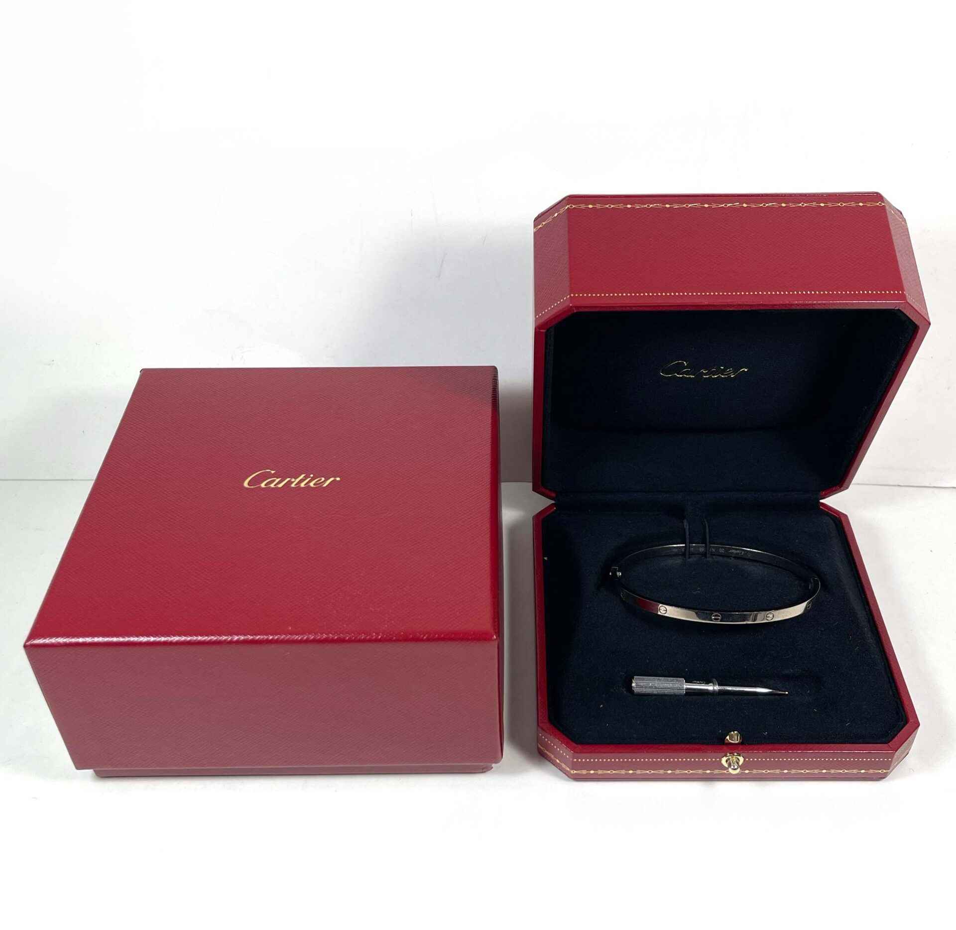 this cartier love bracelet is in excellent condition and comes with its box and cartier tool as shown in the pictures attached.