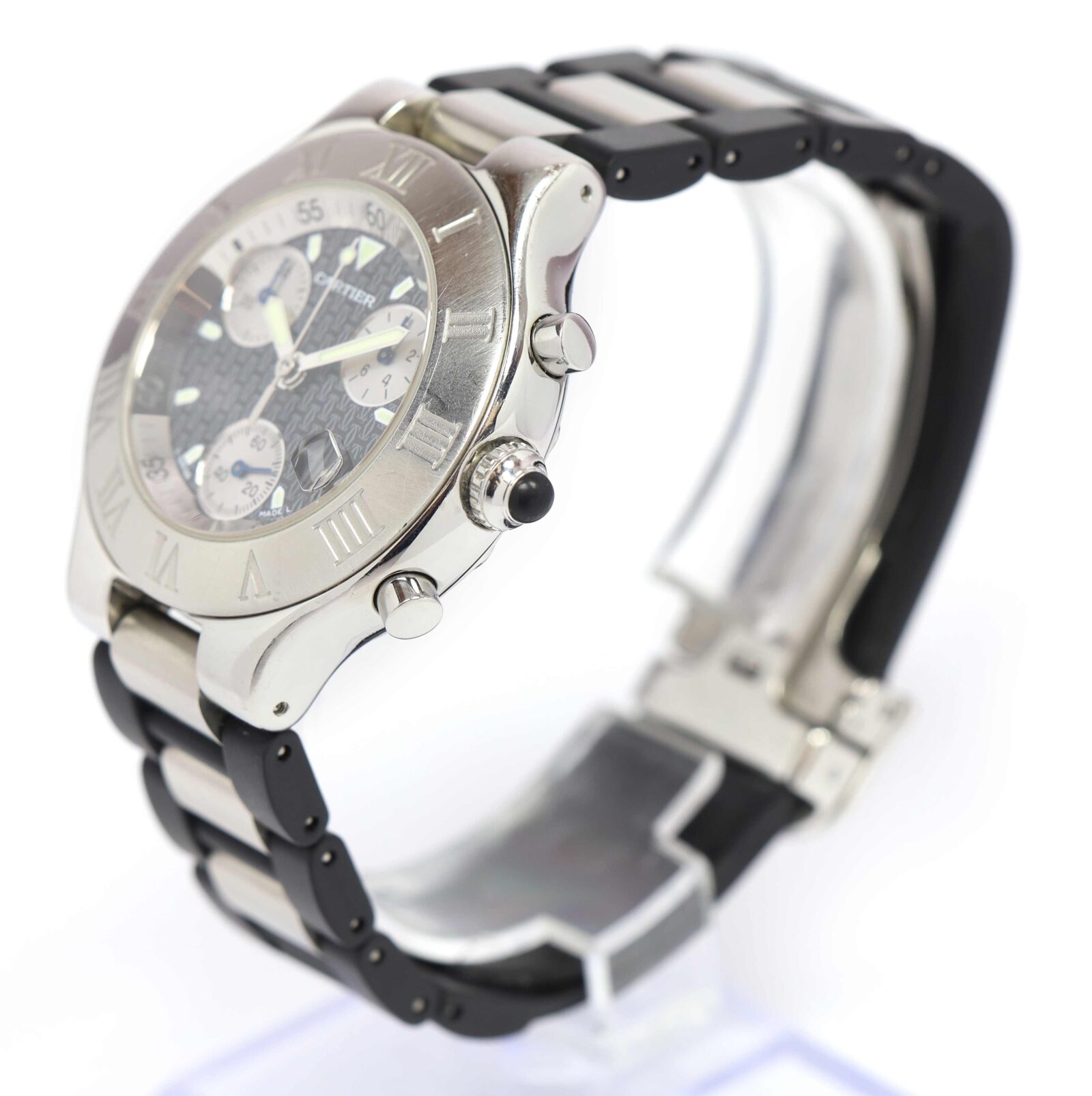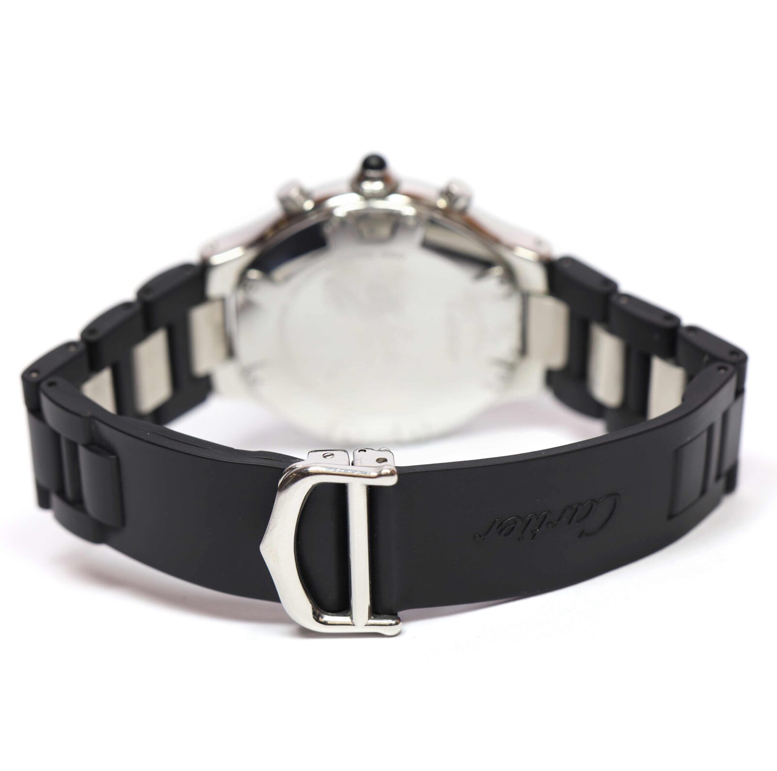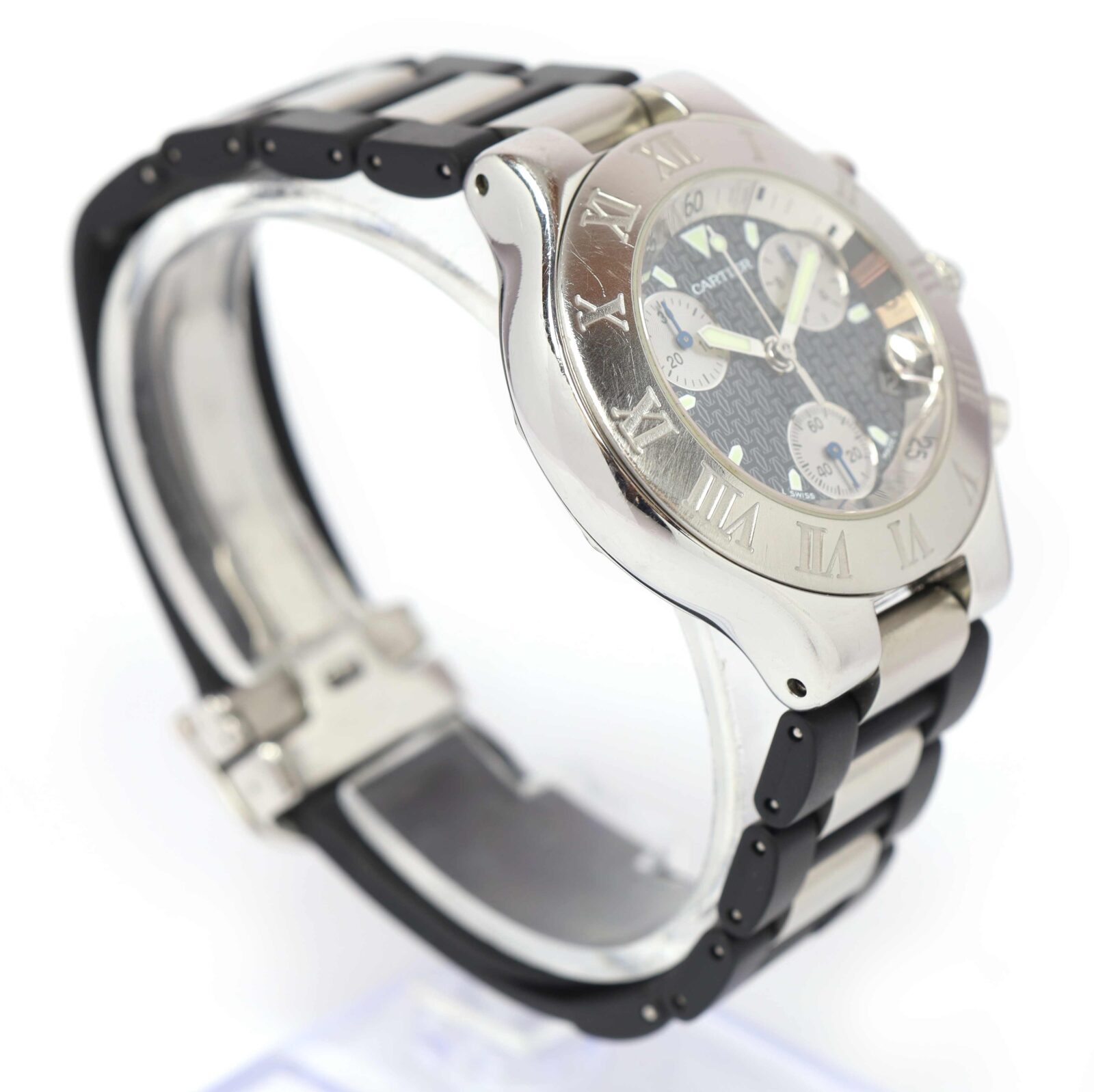 This cartier watch is in good overall condition showing signs of surface wear consistent with preowned watches. This comes with its box, booklets, and warranty paper dated july 9th, 2005 as shown in the pictures attached. This watch is in stock and available t...