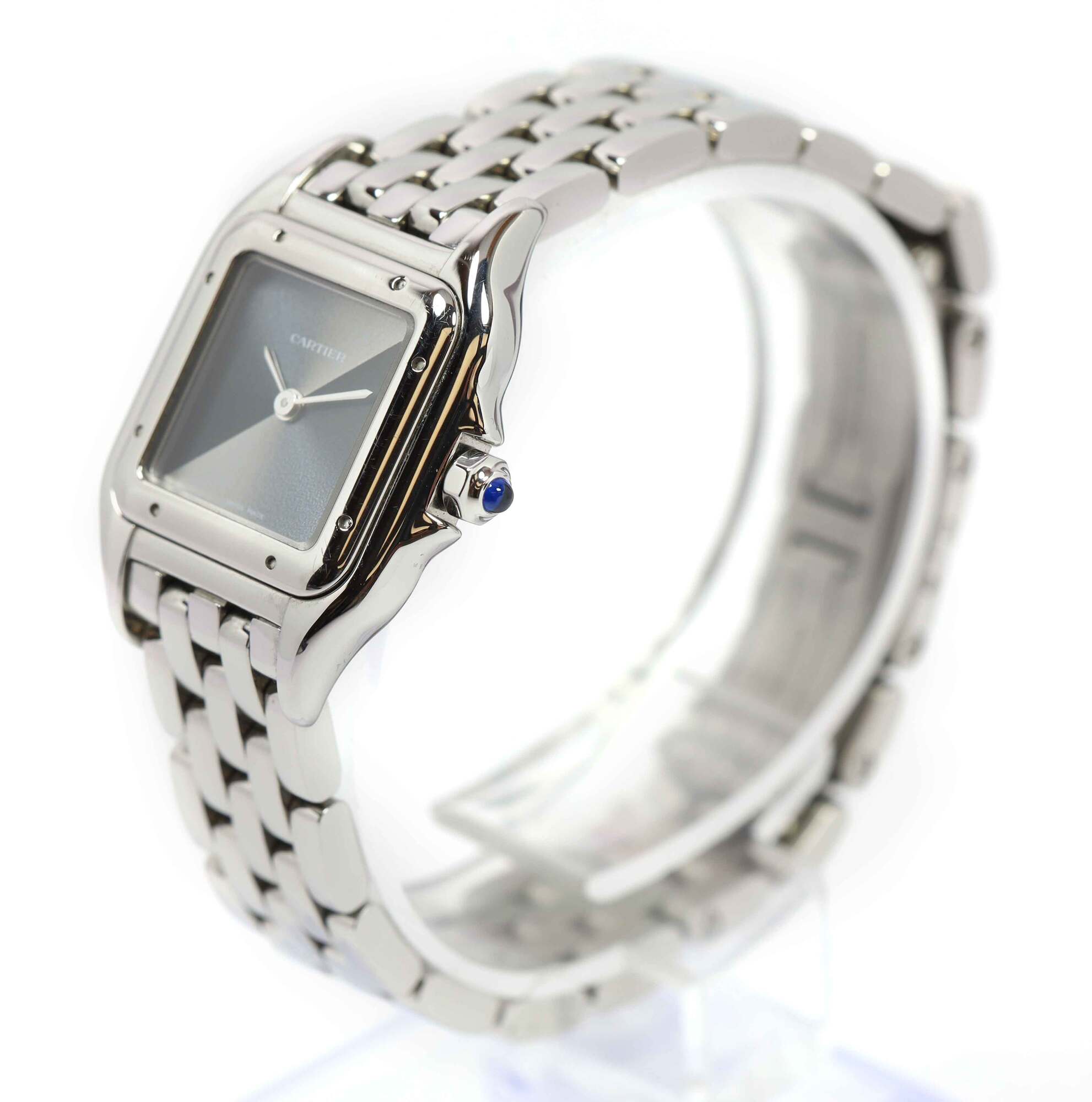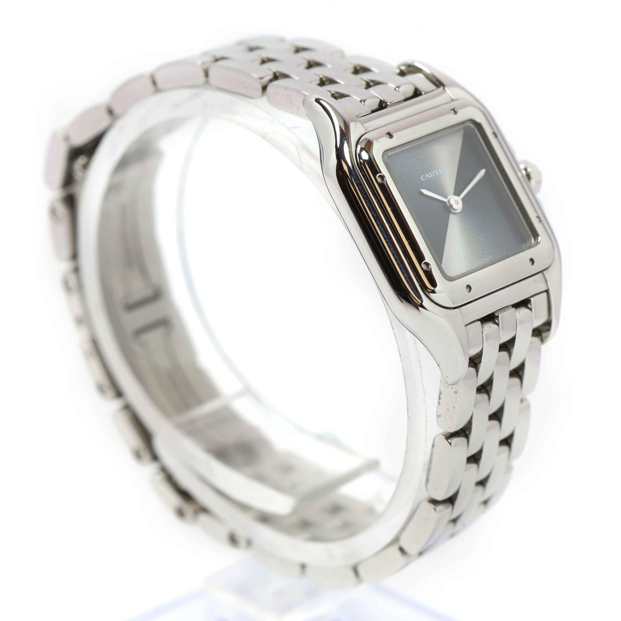 THIS CARTIER WATCH IS IN GOOD OVERALL CONDITION SHOWING SOME SIGNS OF WEAR ON THE CASE AND BRACELET CONSISTENT WITH PREOWNED WATCHES. THIS COMES WITH ITS BOX, SPARE LINKS, AND WARRANTY CARD AS SHOWN IN THE PICTURE ATTACHED. THIS WATCH IS IN STOCK AND AVAILA...