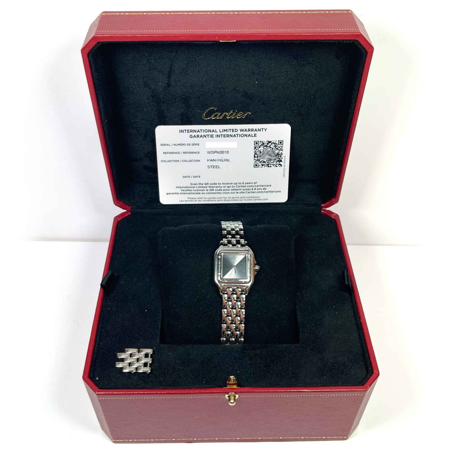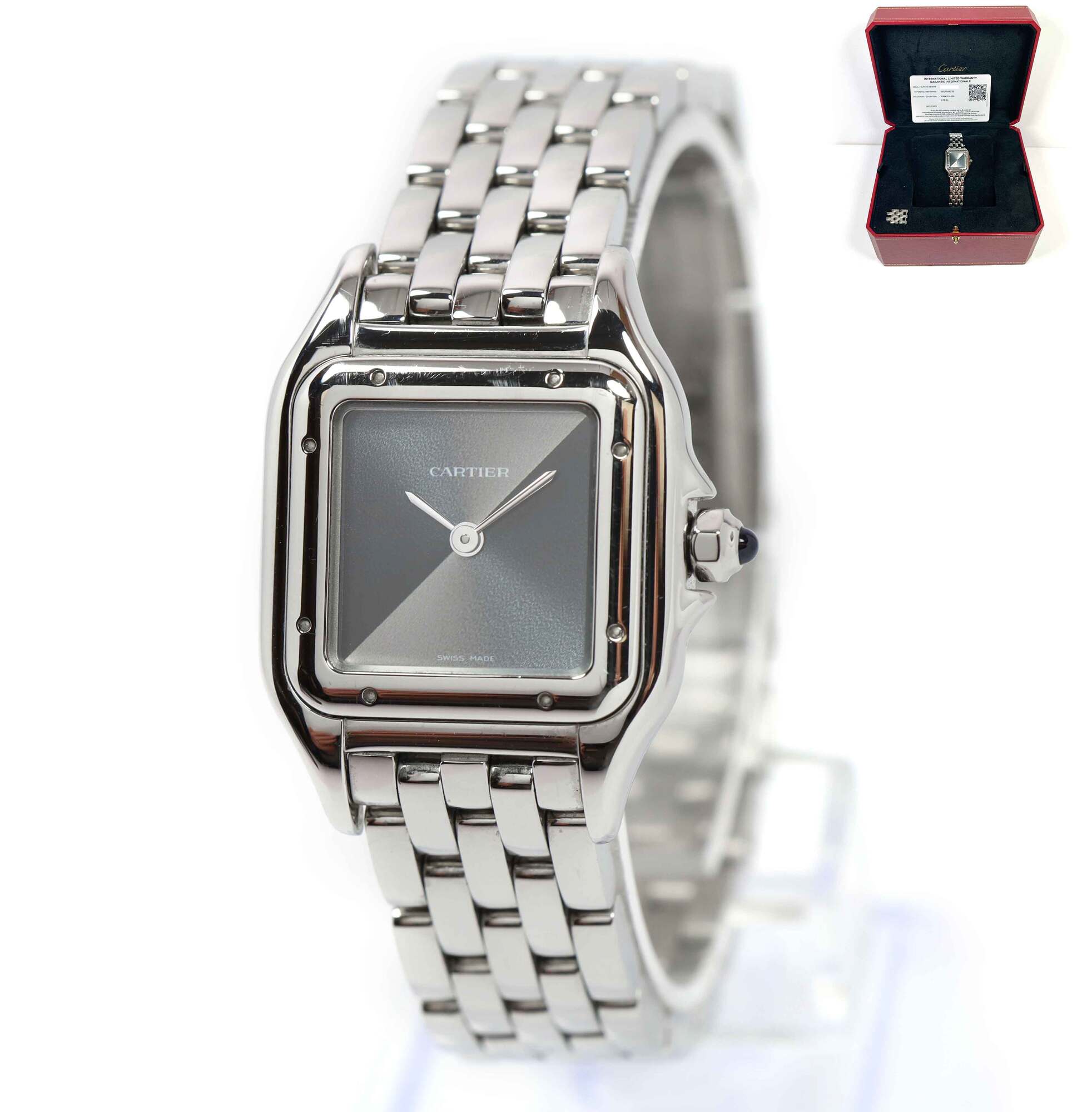 Read Morethis cartier watch is in good overall condition showing some signs of wear on the case and bracelet consistent with preowned watches. This comes with its box, spare links, and warranty card as shown in the picture attached. This watch is in stock and available to ship immediately!