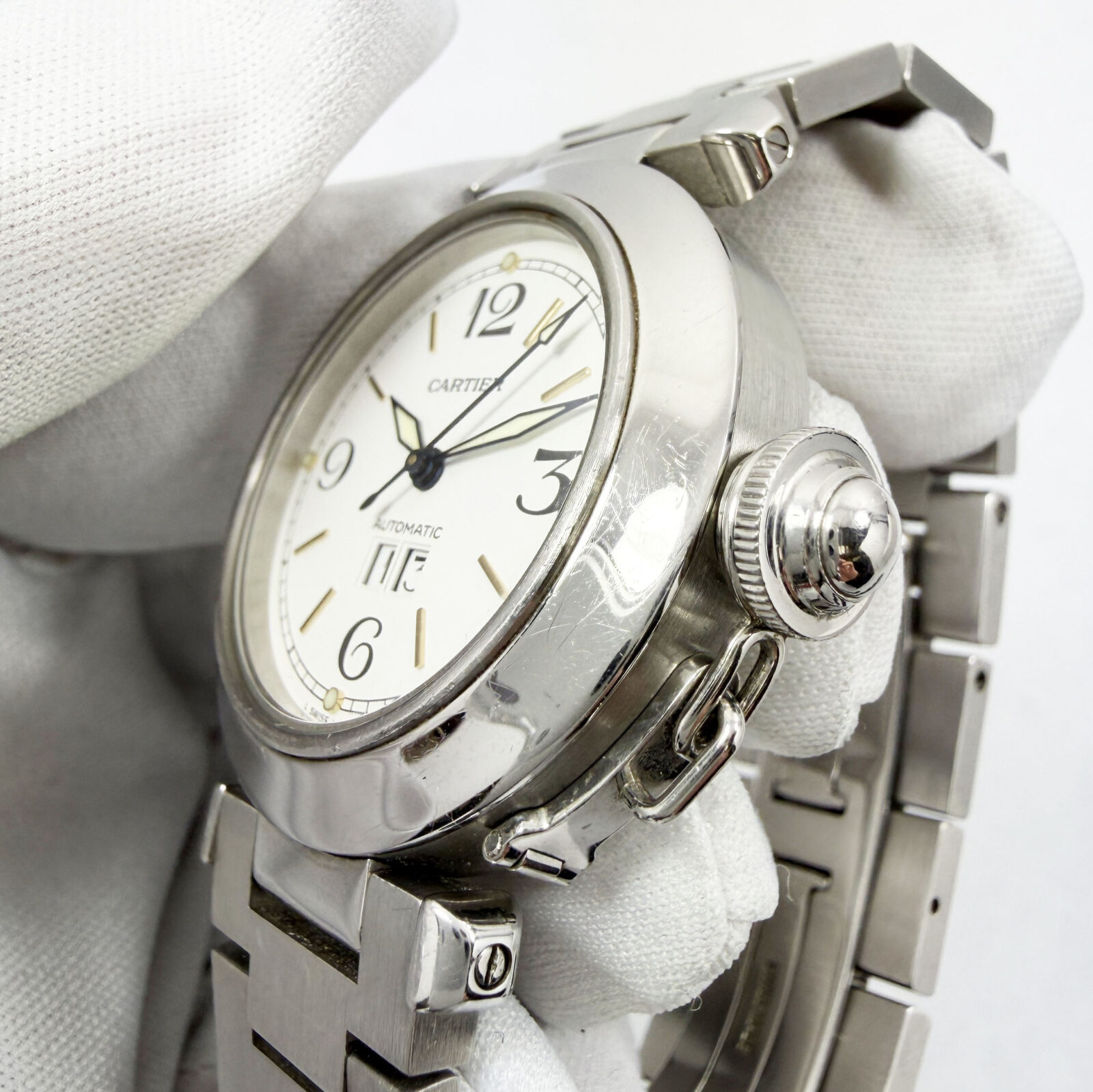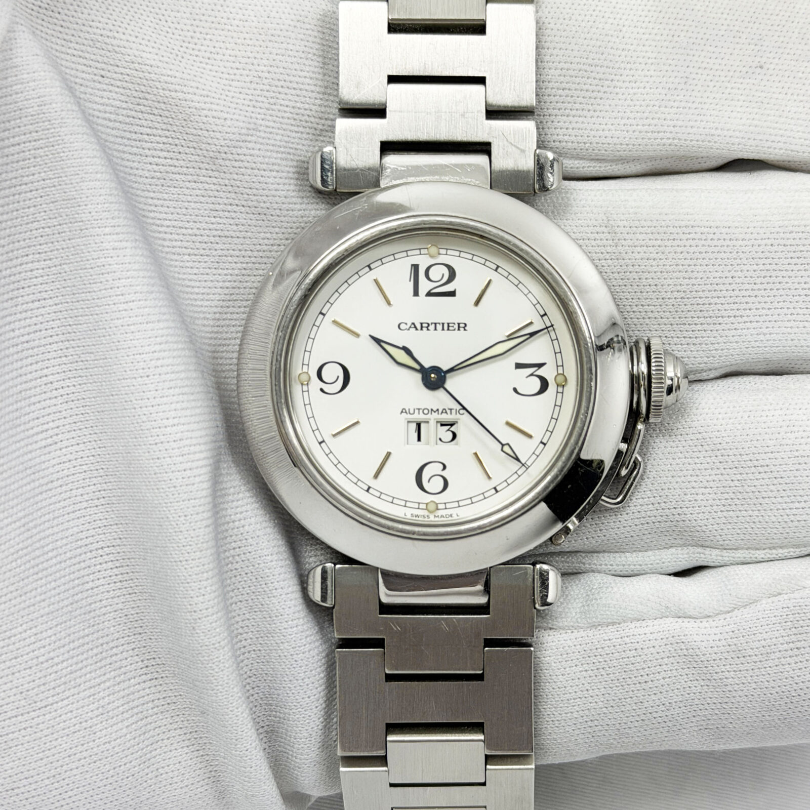 This Cartier watch comes with watch only. The photos shown are of the exact watch being sold and accurately represent its condition. This watch is in stock and ready to ship immediately!