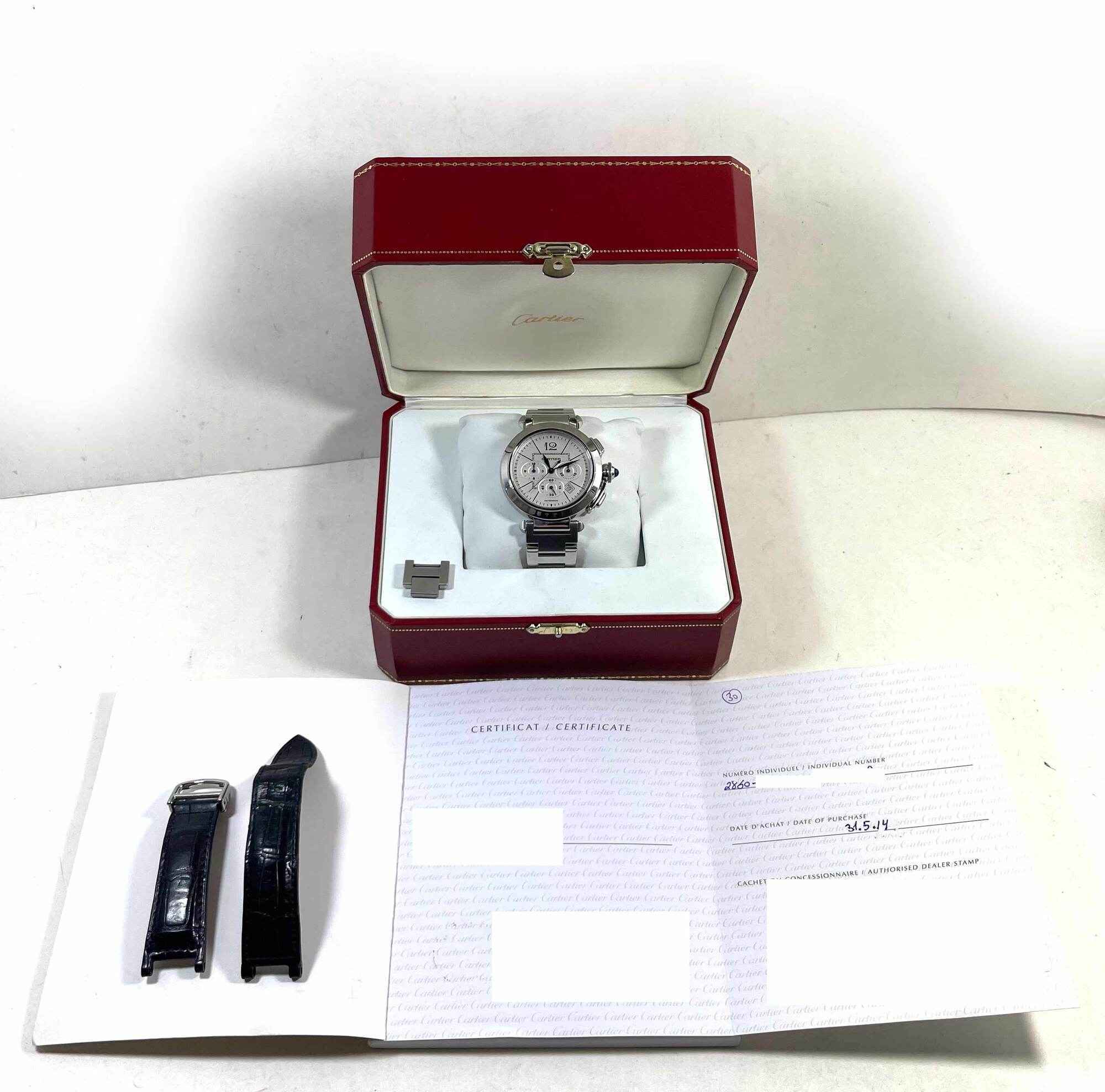 Cartier Pasha Chronograph 2860 42MM Silver Dial Box Papers