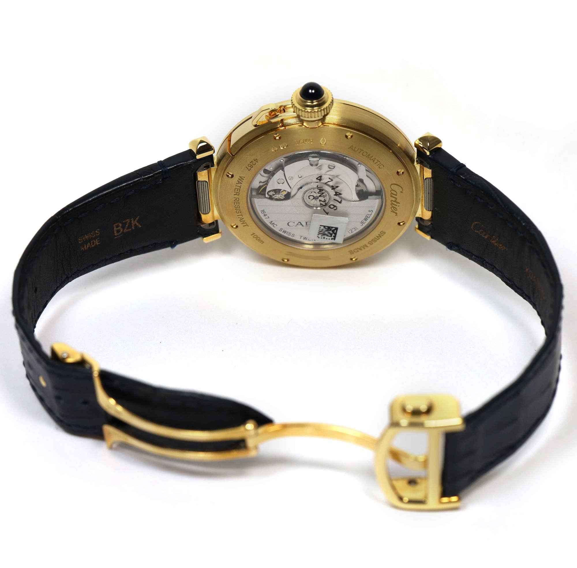 THIS CARTIER WATCH IS IN 99% LNIB CONDITION. THE WARRANTY CARD IS DATED IN 2021 AND THE CUSTOMER NEVER WORE THE WATCH. IF LOOKING AT THE WATCH SUPER CLOSELY, YOU MAY FIND A TINY SPECK OF HANDLING WEAR, BUT THE WATCH IS IN 99% CONDITION AND THE STRAP SHOWS Z...