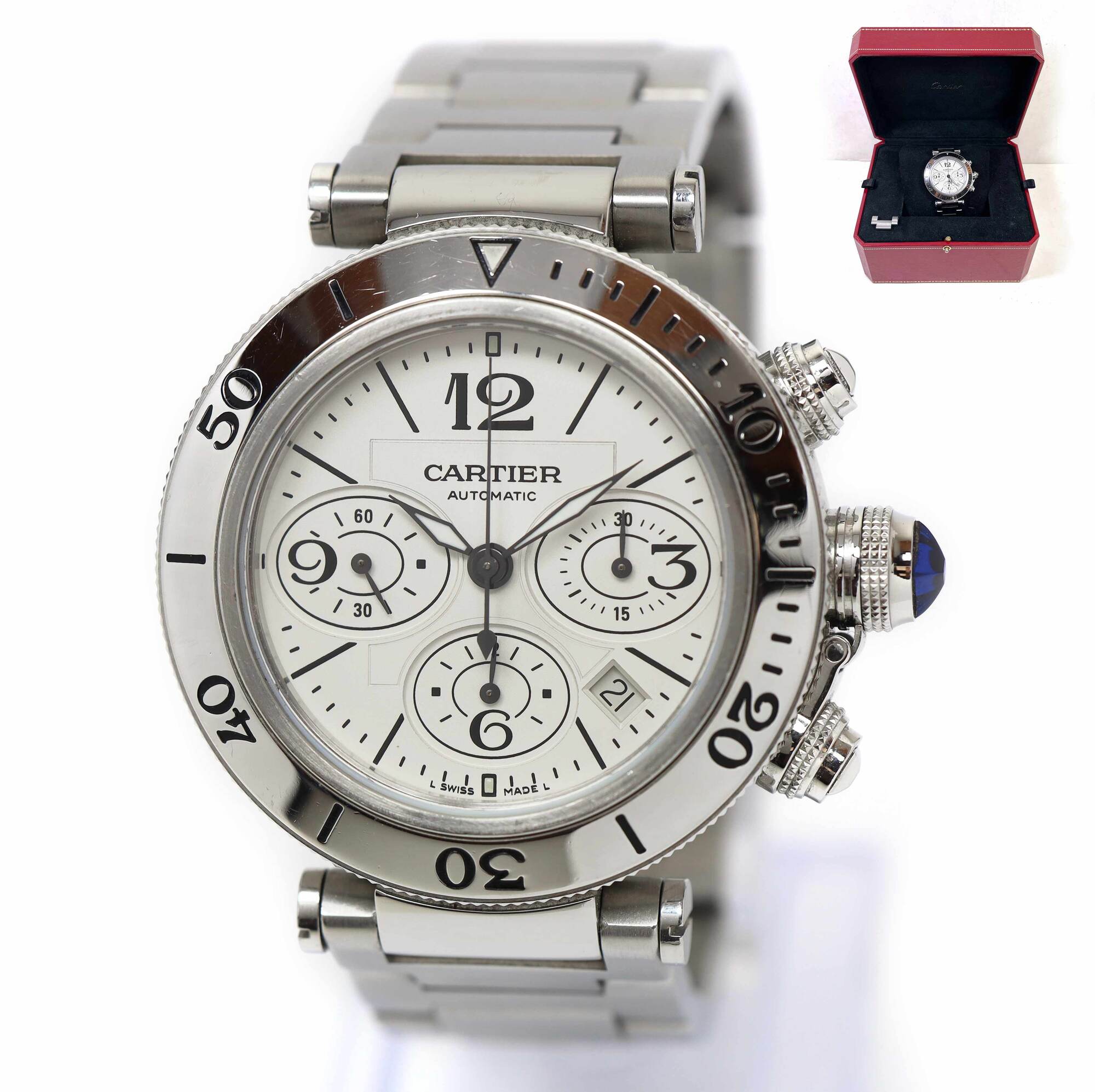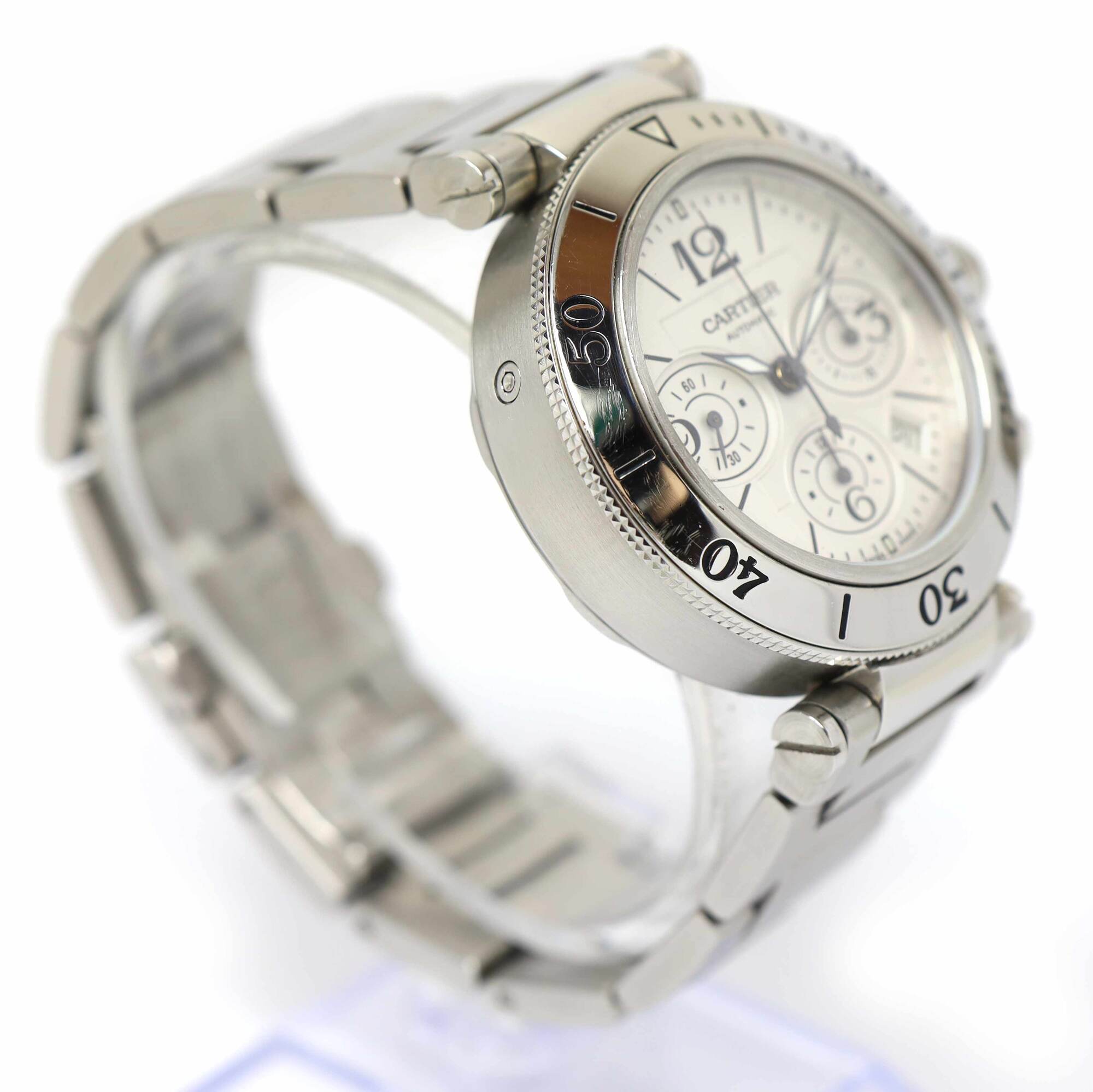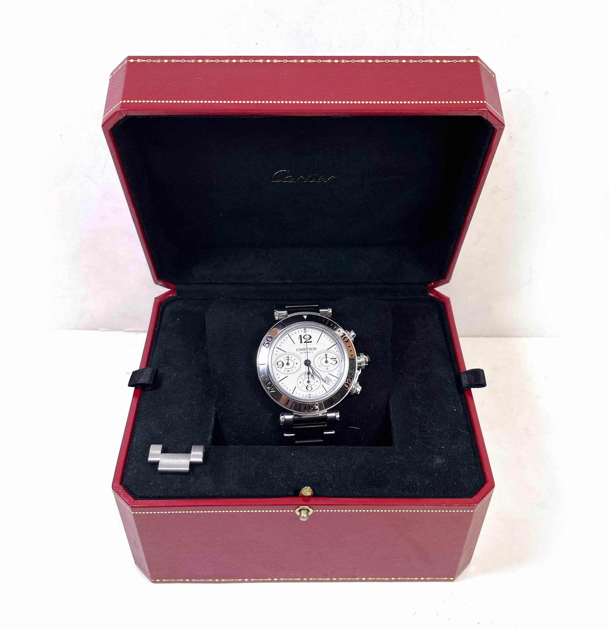 THIS CARTIER WATCH IS IN GREAT OVERALL CONDITION SHOWING SOME SIGNS OF WEAR ON THE CASE, BEZEL, AND BRACELET CONSISTENT WITH PREOWNED WATCHES. THIS COMES WITH ITS BOX AND ONE SPARE LINK ONLY AS SHOWN IN THE PICTURES ATTACHED. THE CASEBACK OF THIS WATCH IS E...