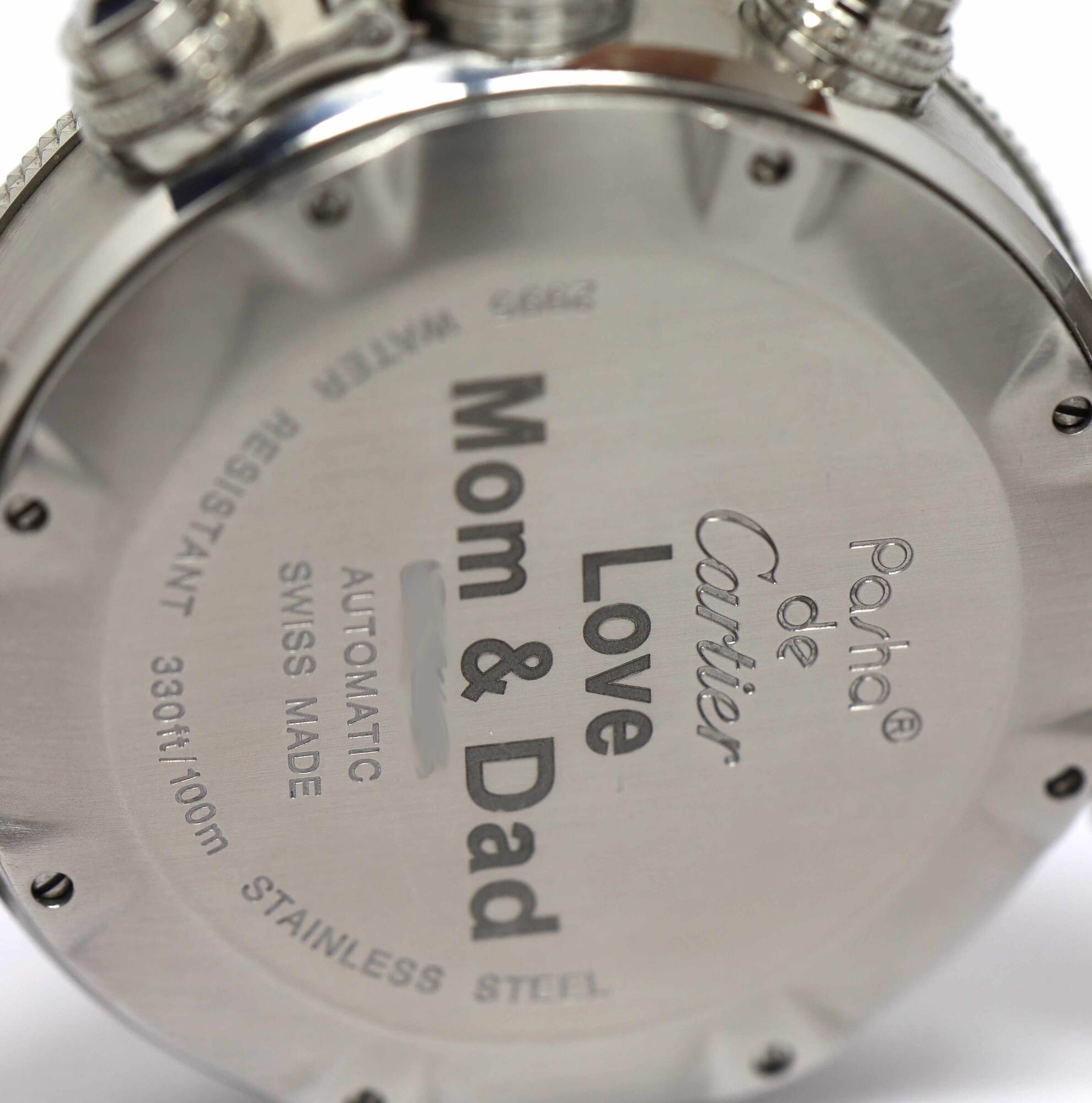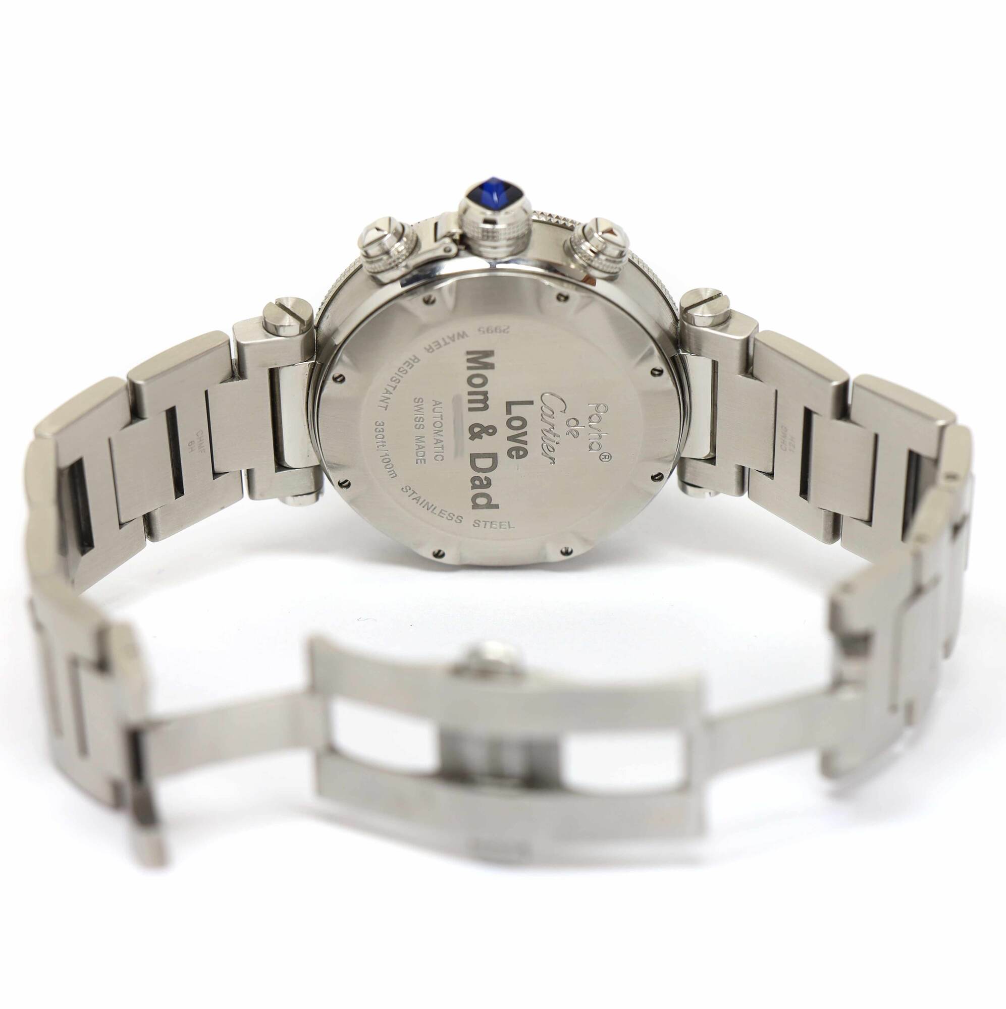 Read Morethis cartier watch is in great overall condition showing some signs of wear on the case, bezel, and bracelet consistent with preowned watches. This comes with its box and one spare link only as shown in the pictures attached. The caseback of this watch is engraved with “love mom & dad”. This can be removed upon request after purchasing. This watch is in stock and available to ship immediately!