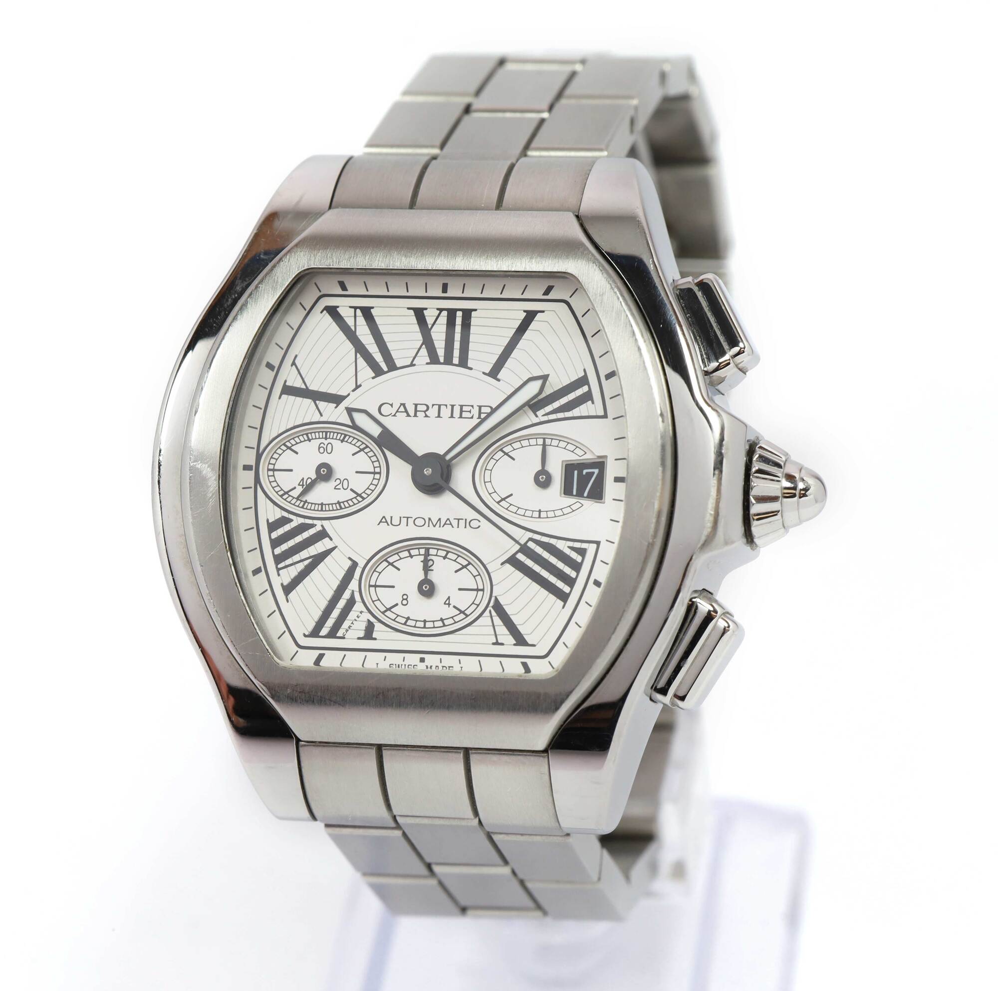 Cartier Roadster Chronograph 3405 W6206019 44MM Silver Roman Dial Steel