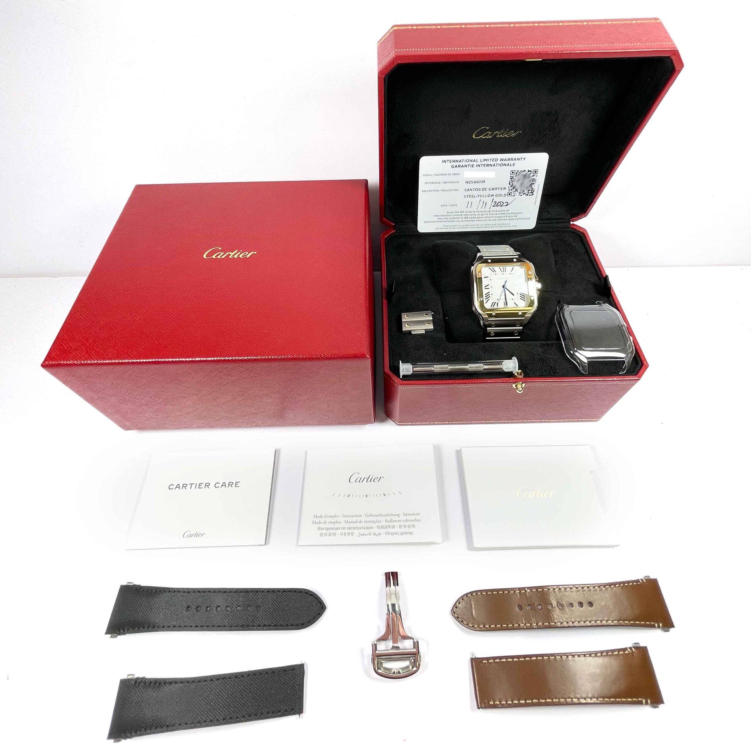 Read Morethis cartier watch is in excellent condition showing some light signs of wear on the case, bezel, and bracelet consistent with preowned watches. This comes with its box, booklets, watch tool, bezel protector, spare links, one additional brown leather strap/grey strap, one additional clasp, and warranty card dated november 11th, 2022. This watch is in stock and available to ship immediately!