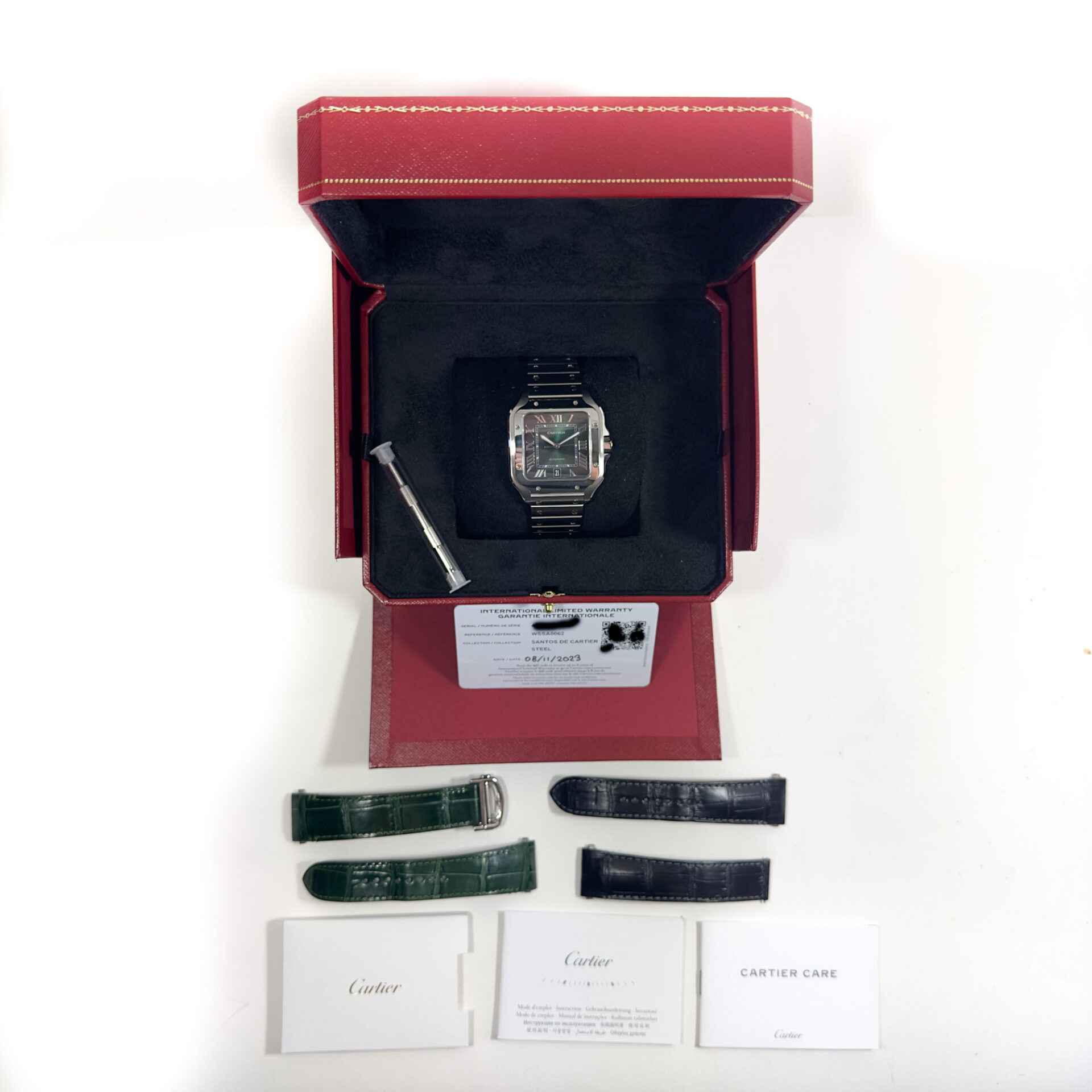 THIS CARTIER WATCH IS IN EXCELLENT CONDITION AND COMES WITH ITS BOX, WARRANTY CARD, AND TWO ADDITIONAL LEATHER STRAPS AS SEEN IN PHOTO.