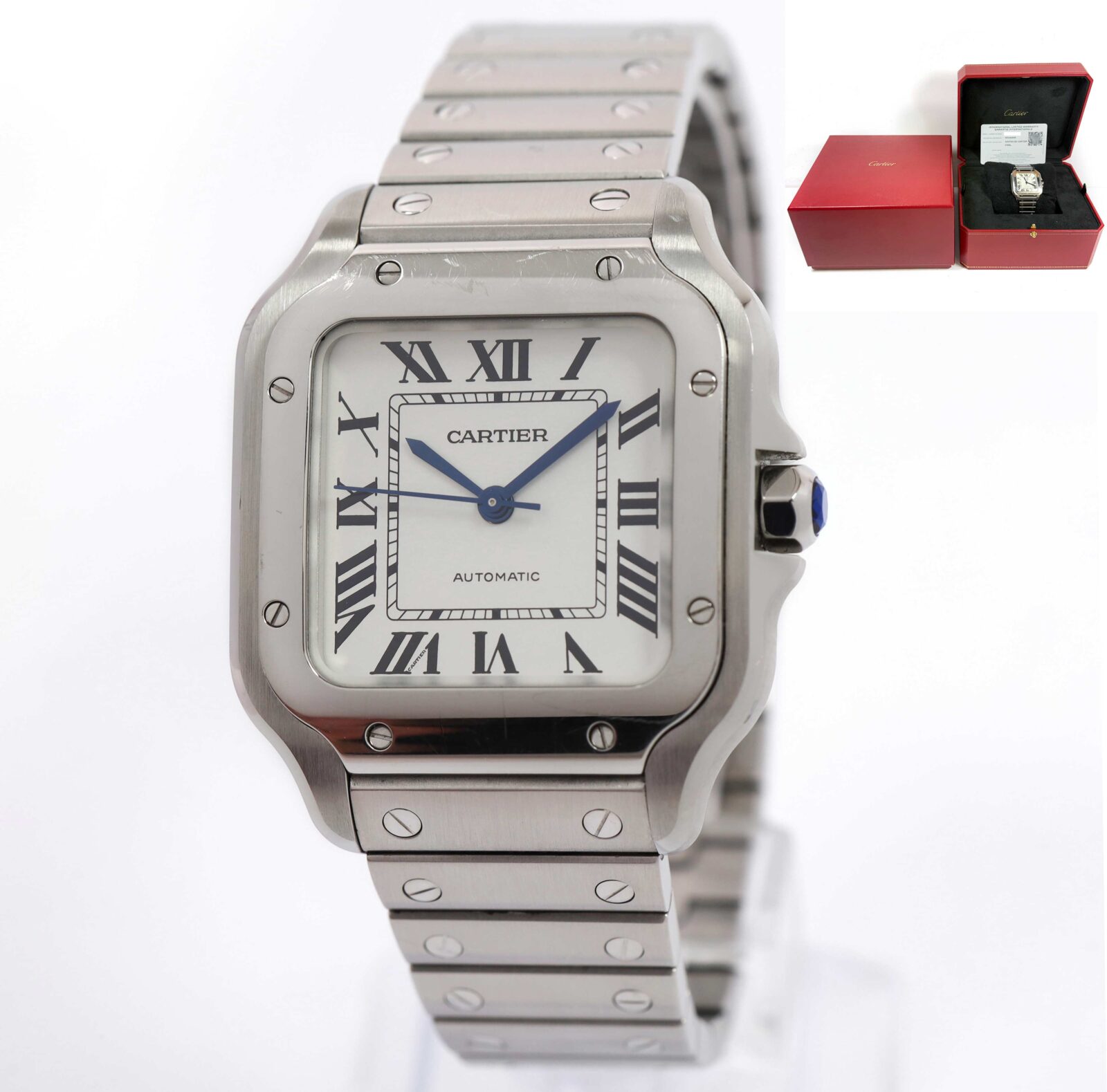 this cartier watch is in excellent overall condition showing some lights signs of surface wear consistent with preowned watches. This comes with its box and warranty card as shown in the pictures attached. This watch is in stock and available to ship immediately!