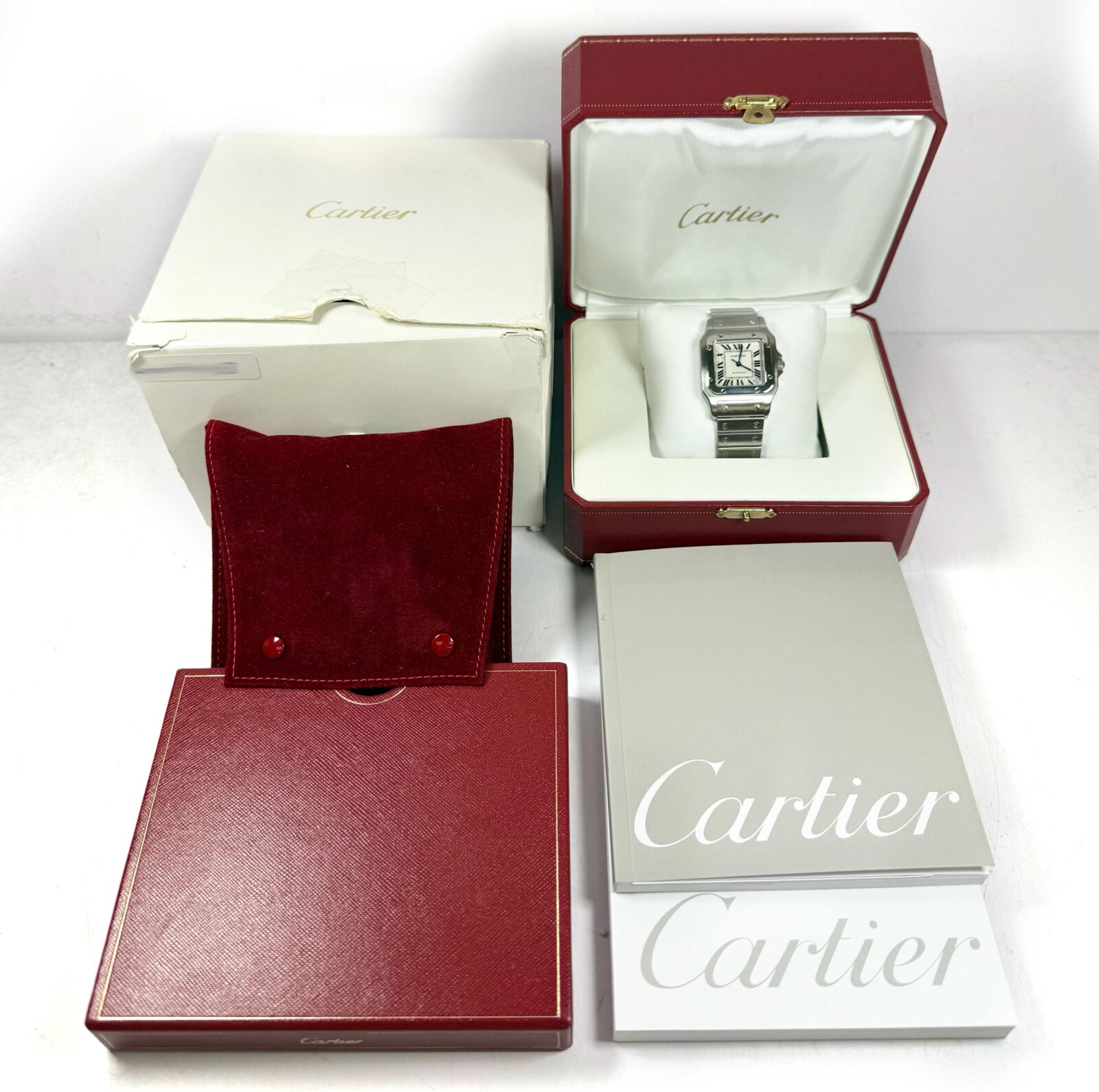 this cartier watch is in excellent overall condition and comes with its box, booklets, 2025 service paper, and warranty booklet as shown in the pictures attached. This watch is in stock and available to ship immediately!