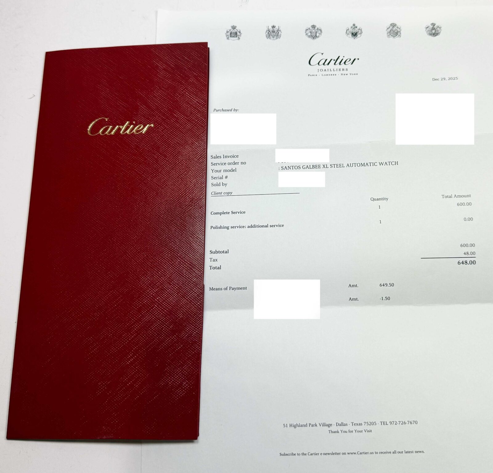 This Cartier watch is in excellent overall condition and comes with its box, booklets, 2025 Service paper, and warranty booklet as shown in the pictures attached. This watch is in stock and available to ship immediately!