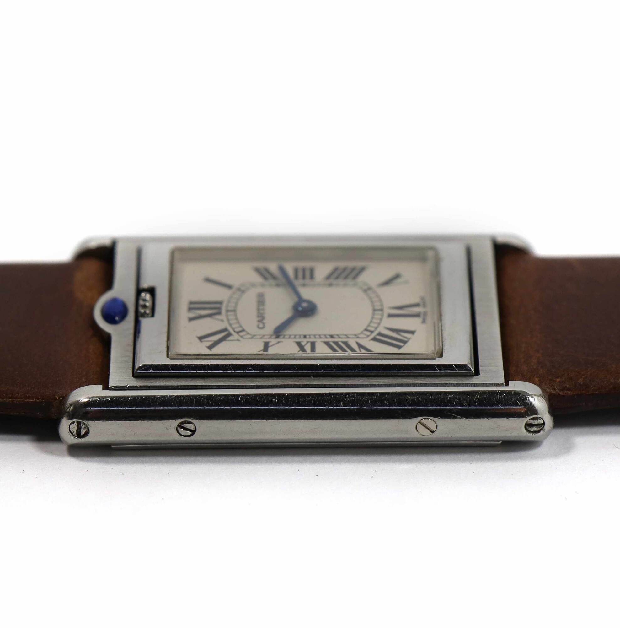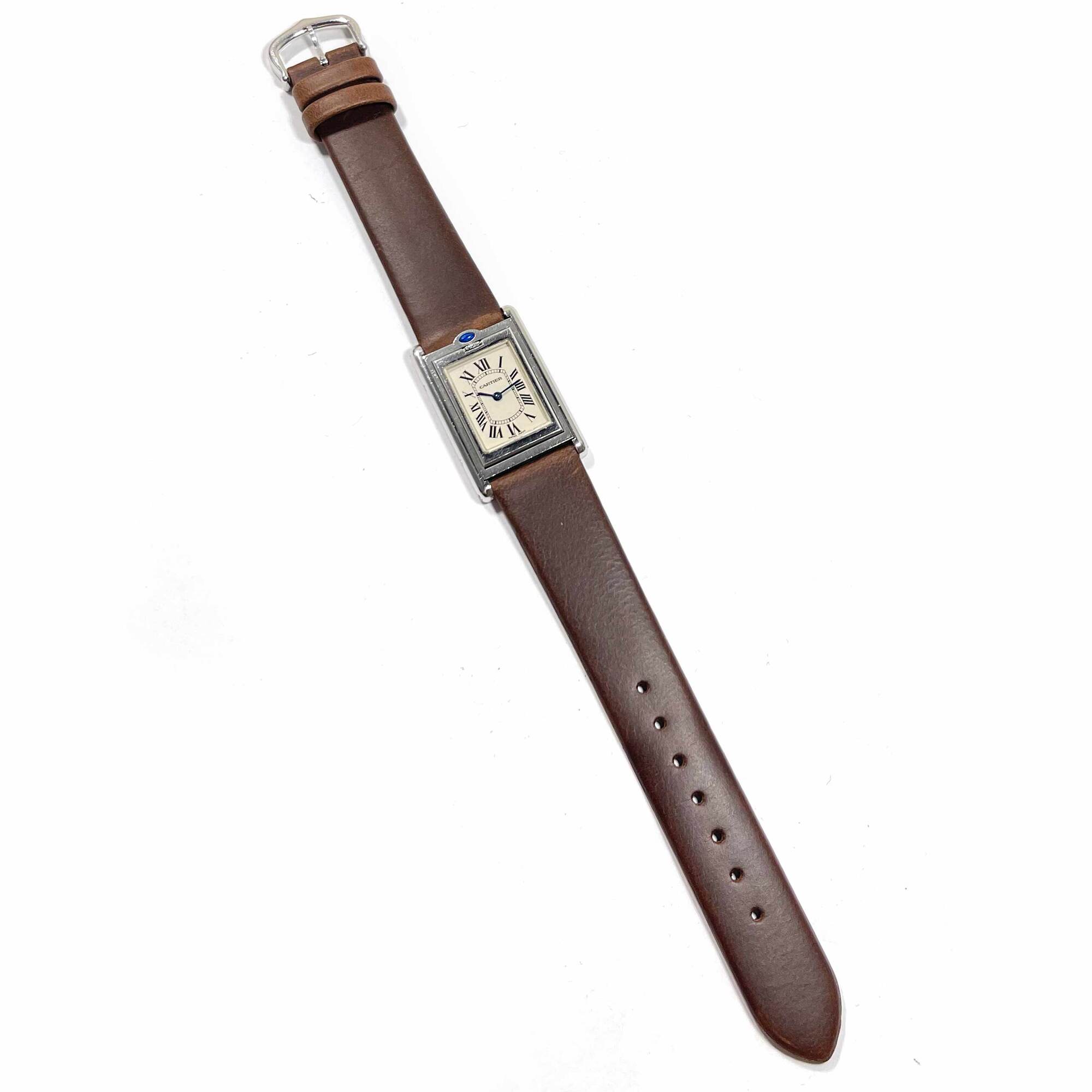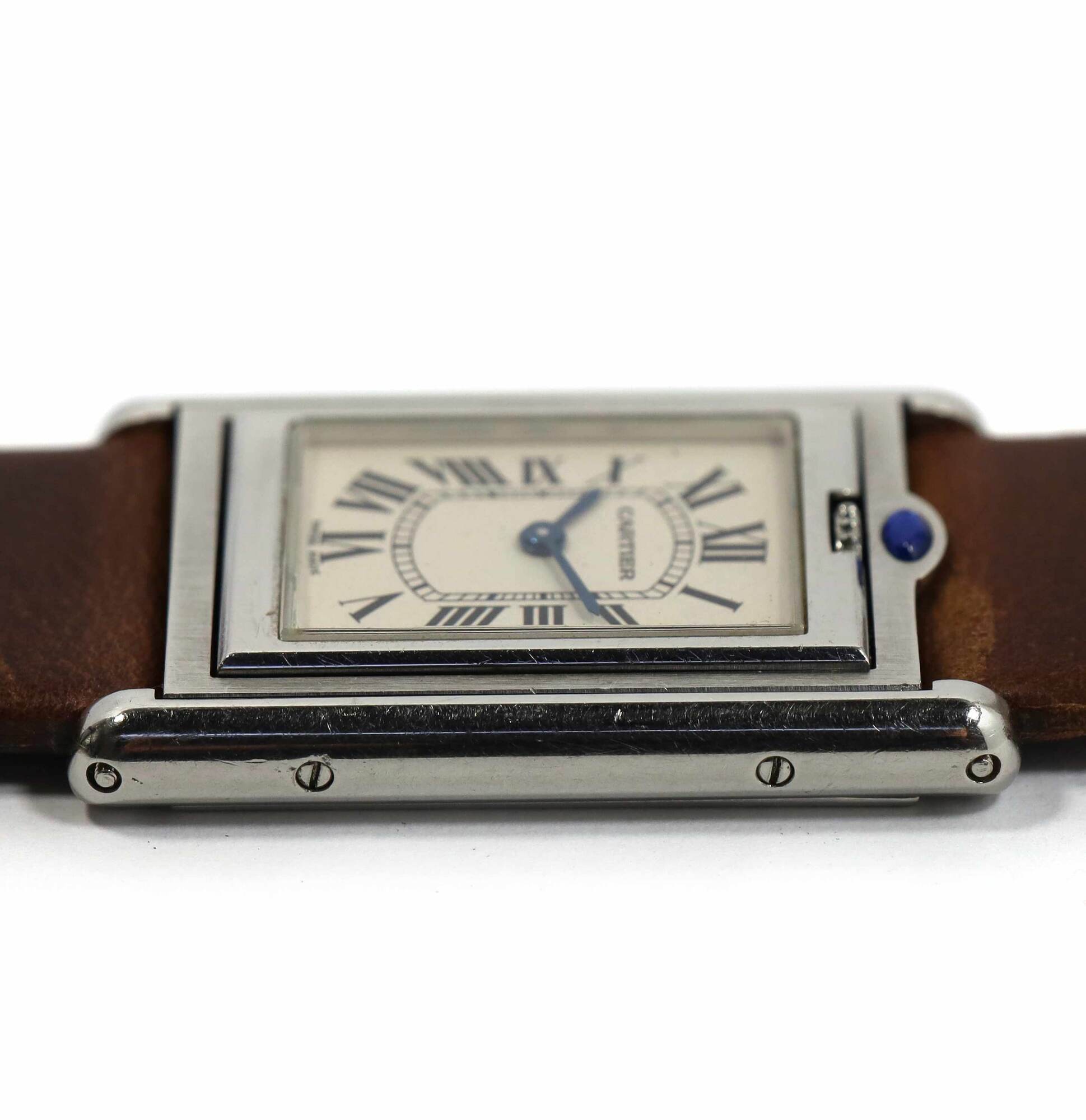 THIS CARTIER IS IN GREAT OVERALL CONDITION SHOWING SOME NORMAL SIGNS OF WEAR FOR A PREOWNED WATCH. THIS COMES AS WATCH ONLY AS SHOWN IN THE PICTURES ATTACHED. THE BAND ON THIS WATCH IS BRAND NEW/UNWORN BUT IS AFTERMARKET WITH AN ORIGINAL CARTIER TANG BUCKLE...