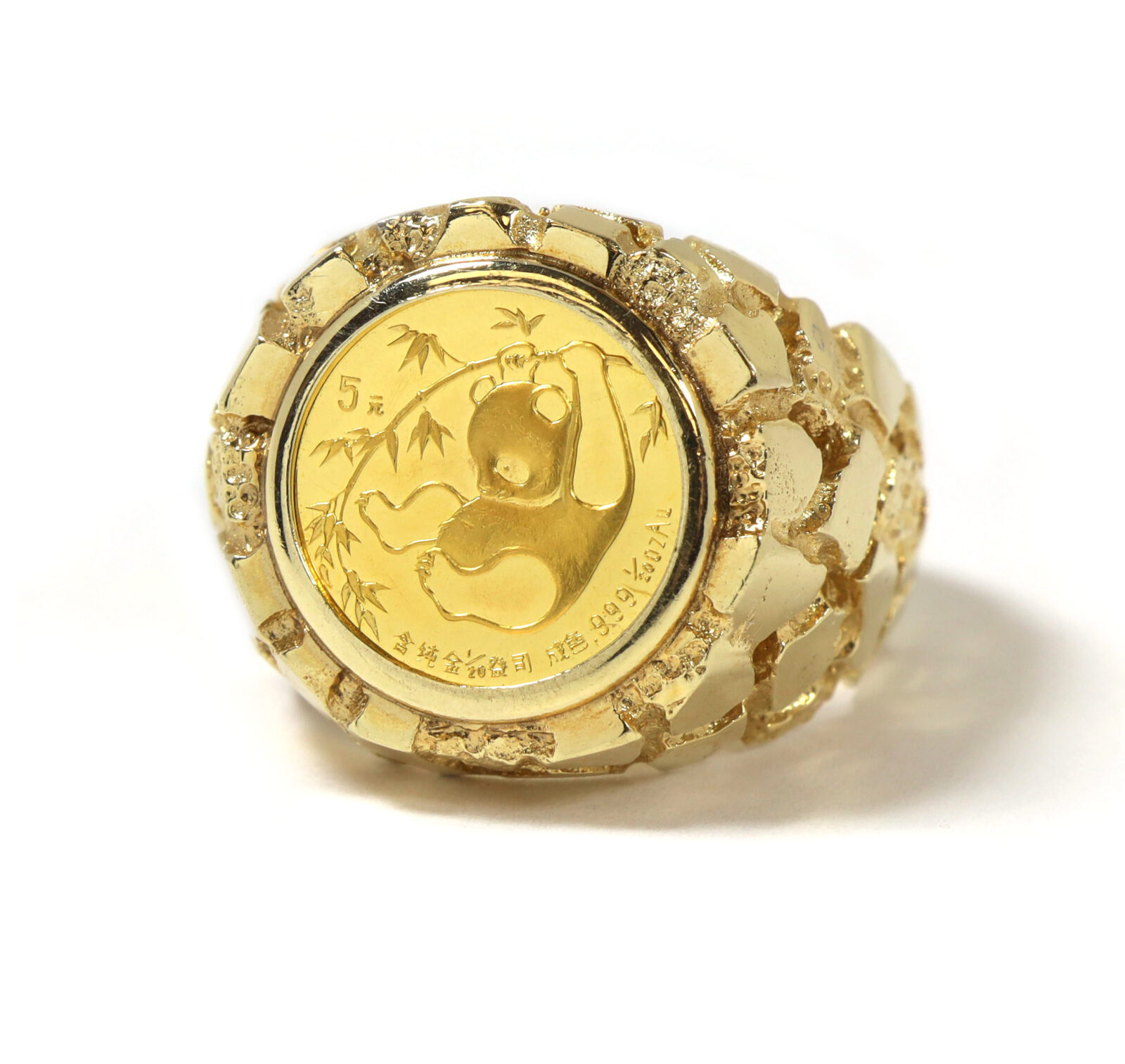 Read Moremetal: 14k yellow gold coin: chinese panda 1985 1/20 .999 gold coin ring size: 8.75 band width: 5mm front width: 18mm buy with confidence from tns diamonds, a trusted and established jeweler with a brick-and-mortar storefront and over 40 years of combined experience in the ethical watch and jewelry trade. At tns diamonds, we are proud to have trusted gia graduate gemologists on staff, ensuring that every piece of jewelry meets the highest standards of quality and craftsmanship. With our expertise and commitment to ethical practices, you can shop with peace of mind knowing you’re receiving a genuine product. If you have any questions or need further assistance, please don’t hesitate to reach out!
