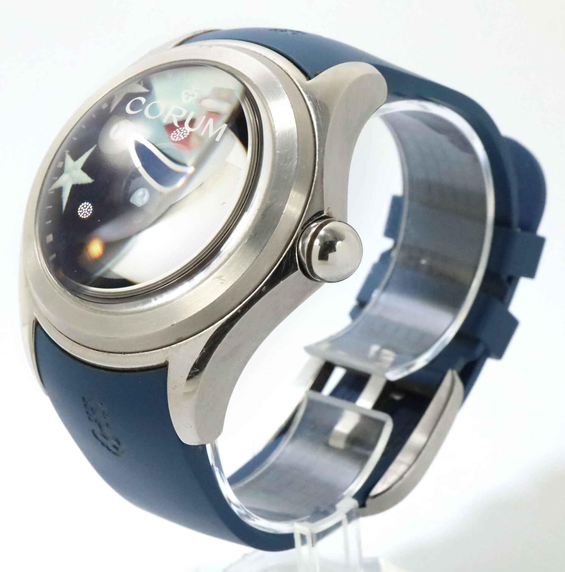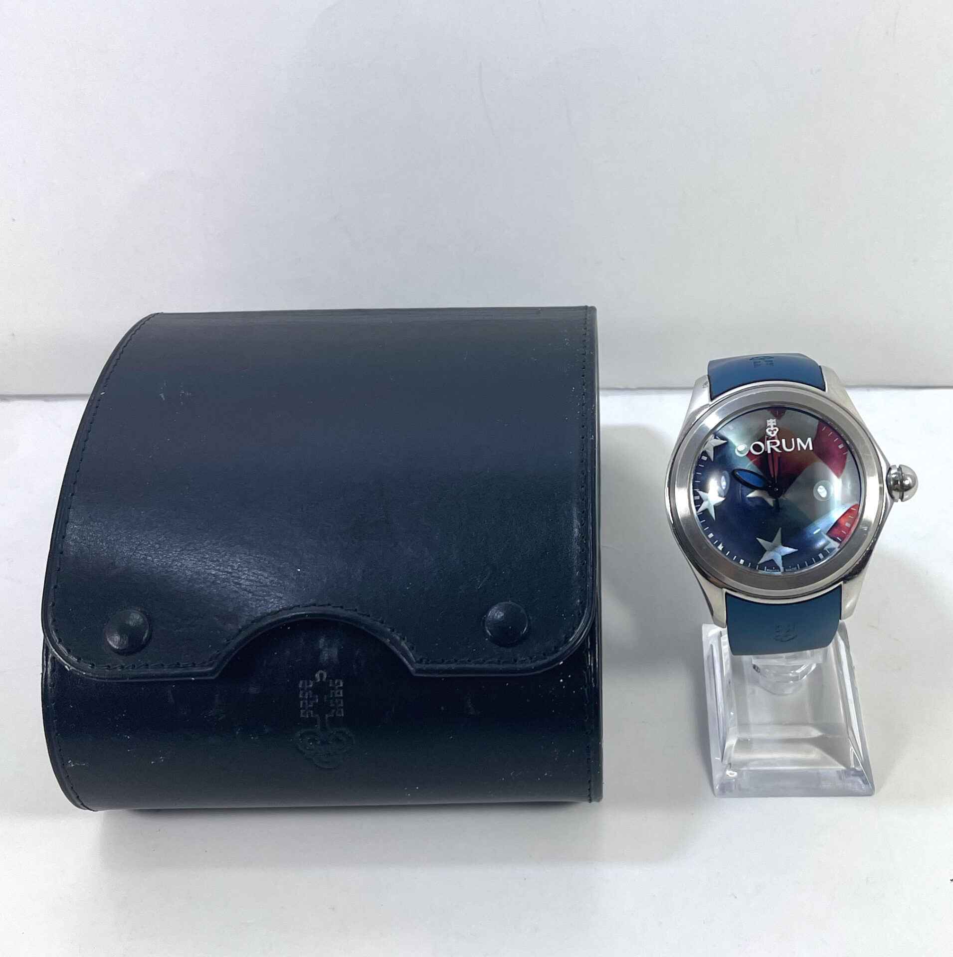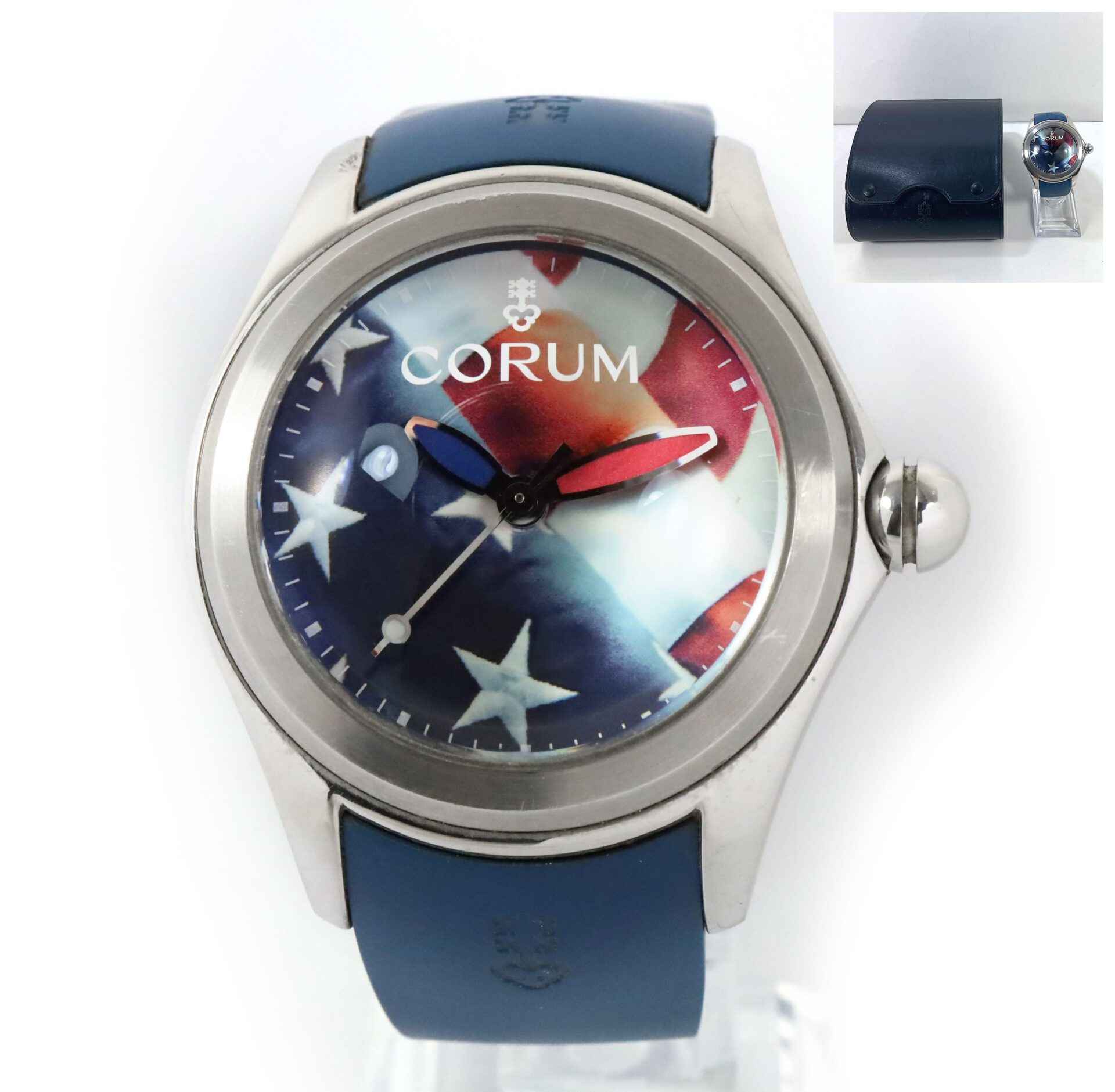Read Morethis corum watch is in good overall condition showing some signs of wear that is consistent with regular use. This watch comes with its box only as shown in the pictures attached. This watch is part of a limited edition with only 88 timepieces produced. This watch is in stock and available to ship immediately!