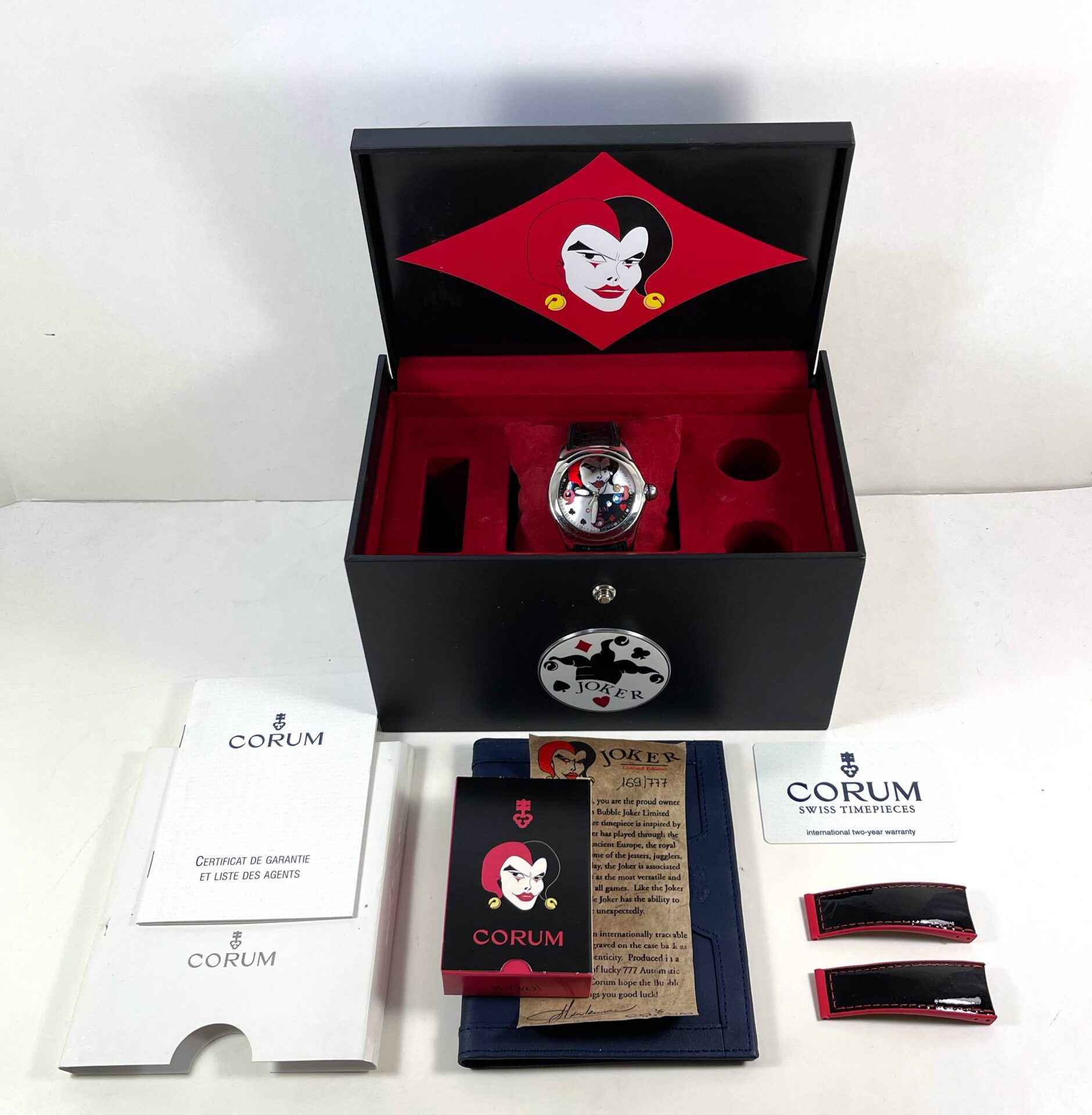This Corum watch is in good overall condition showing some signs of wear that is consistent with regular use. This watch comes with its box, papers, one additional strap, and warranty card. This watch is part of a limite...