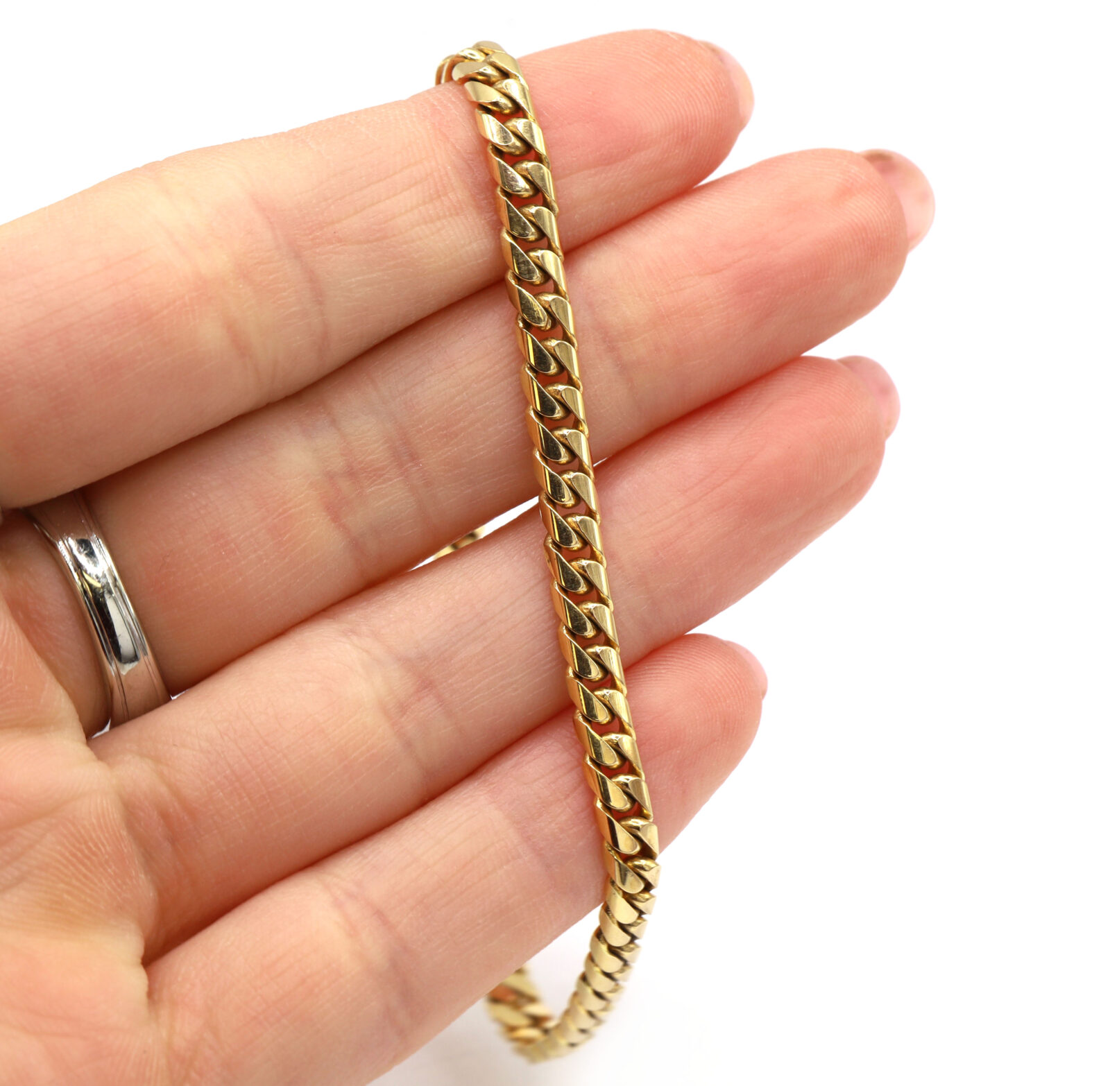 Material: 18k Yellow Gold Type: Cuban Link Length: 7 Inches Width: 4mm Weight: 13.2 Grams