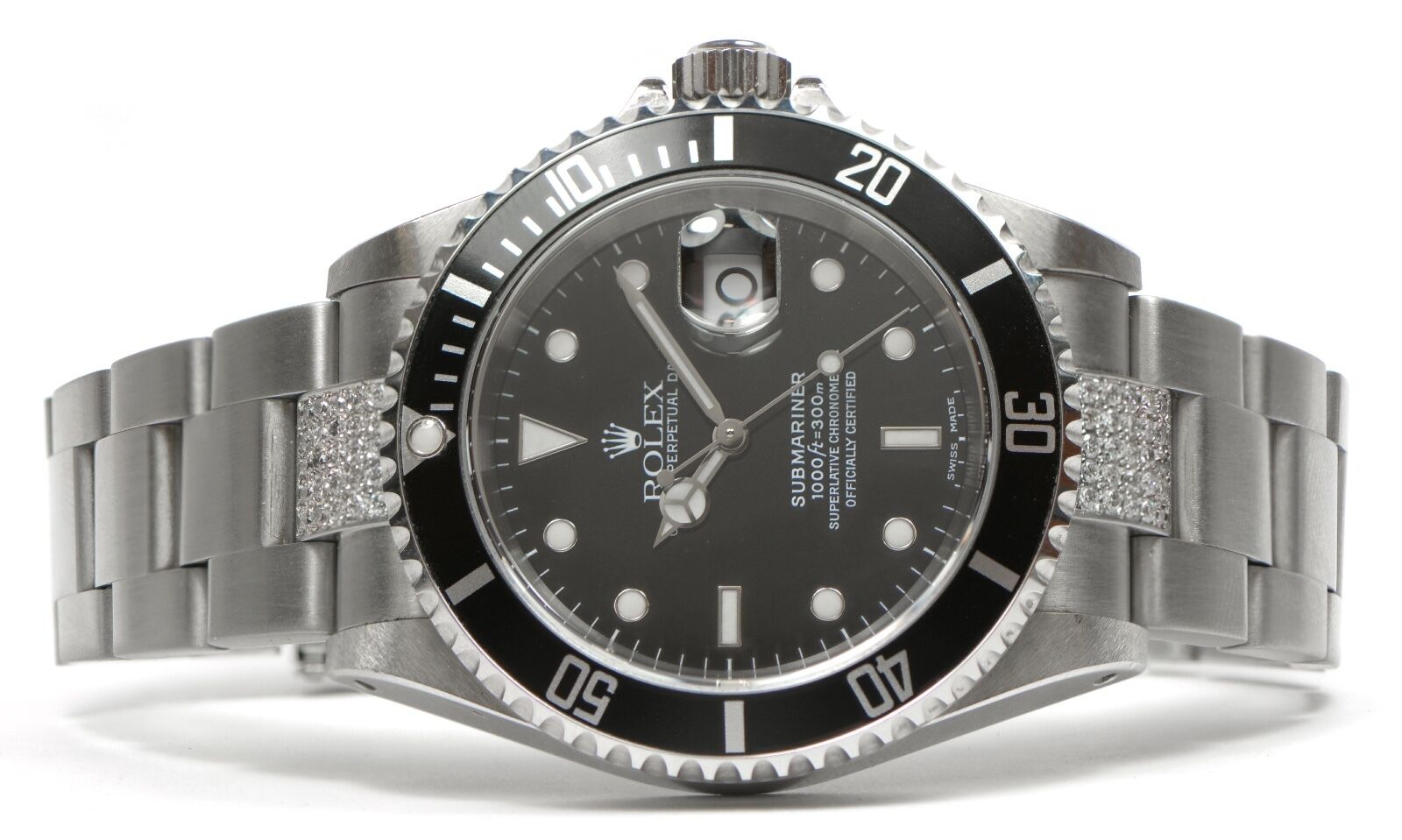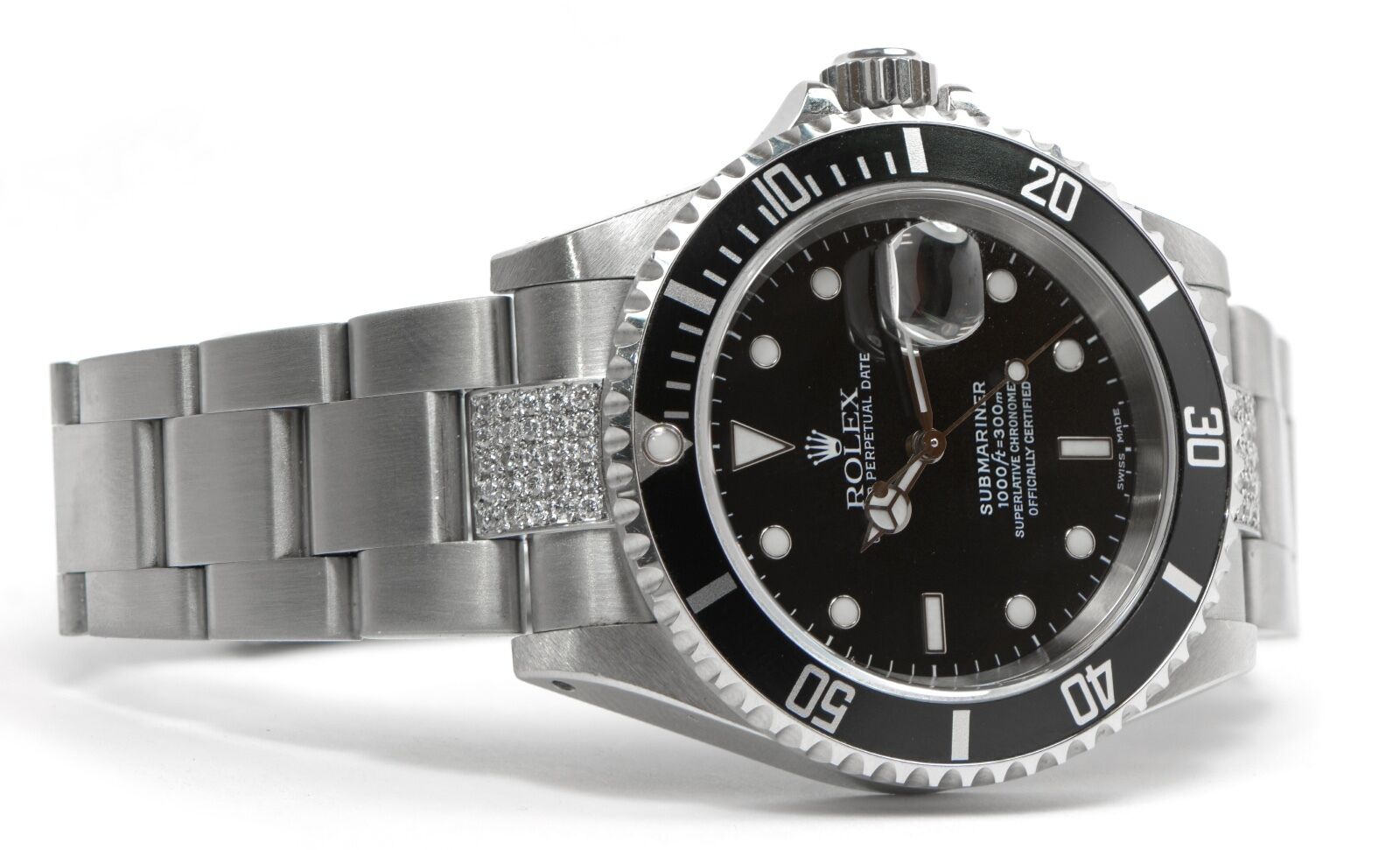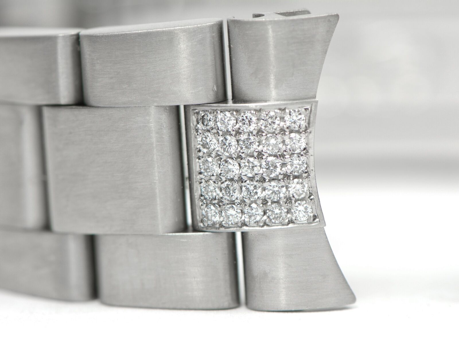 we can install diamonds to almost any part of a watch, and we work on all brands! diamond bezels, bracelets, lugs, end links, you name it we can do it. Feel free to contact us regarding any other custom diamond work you want done!