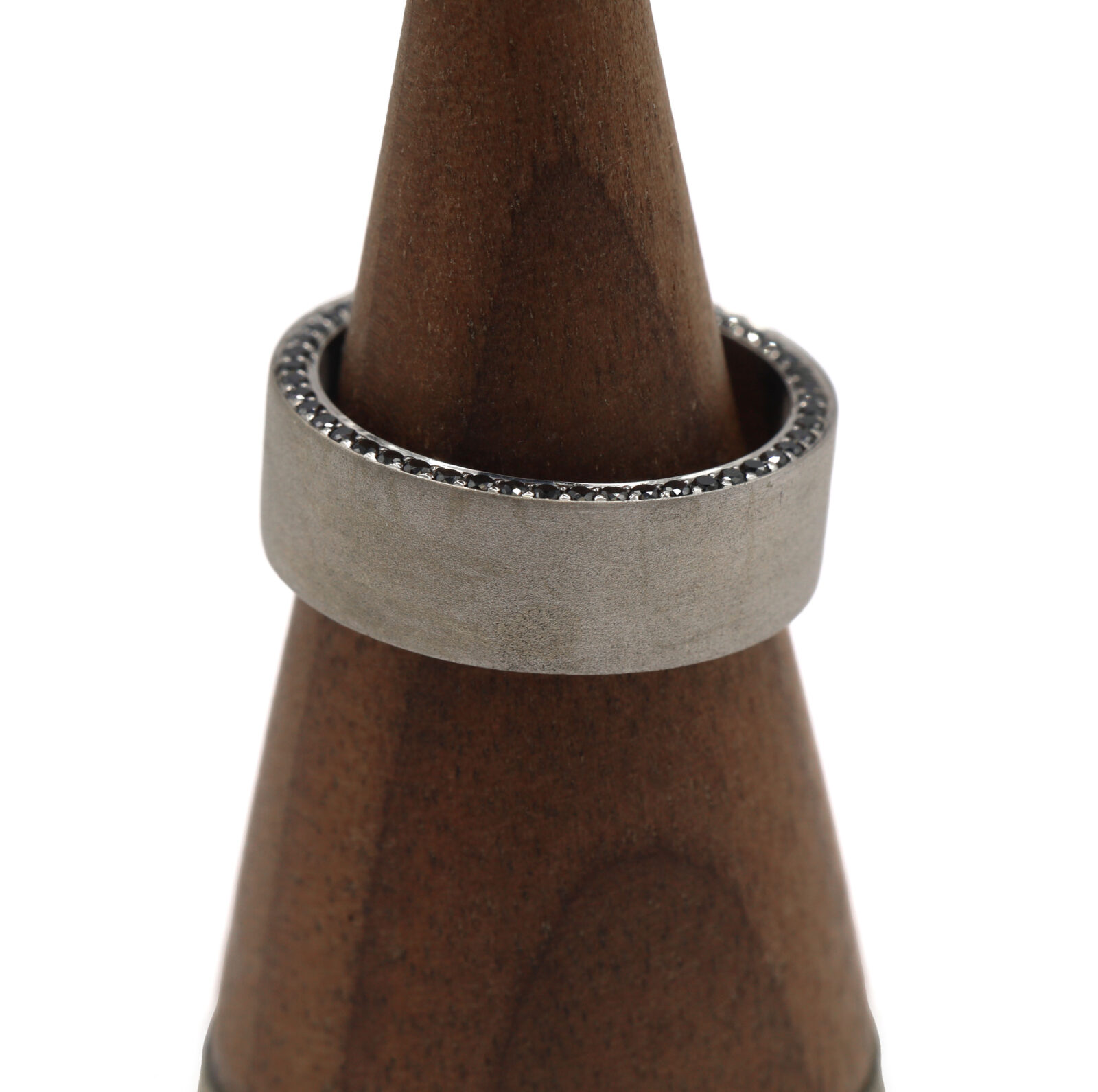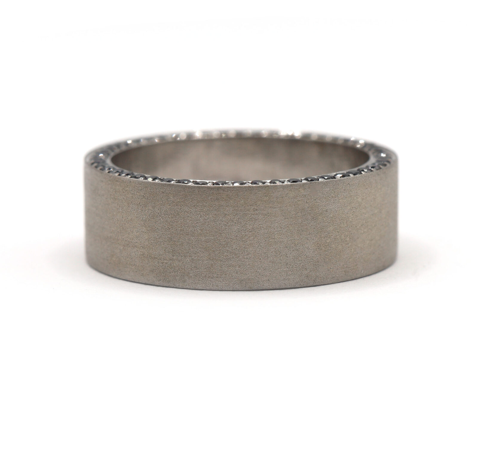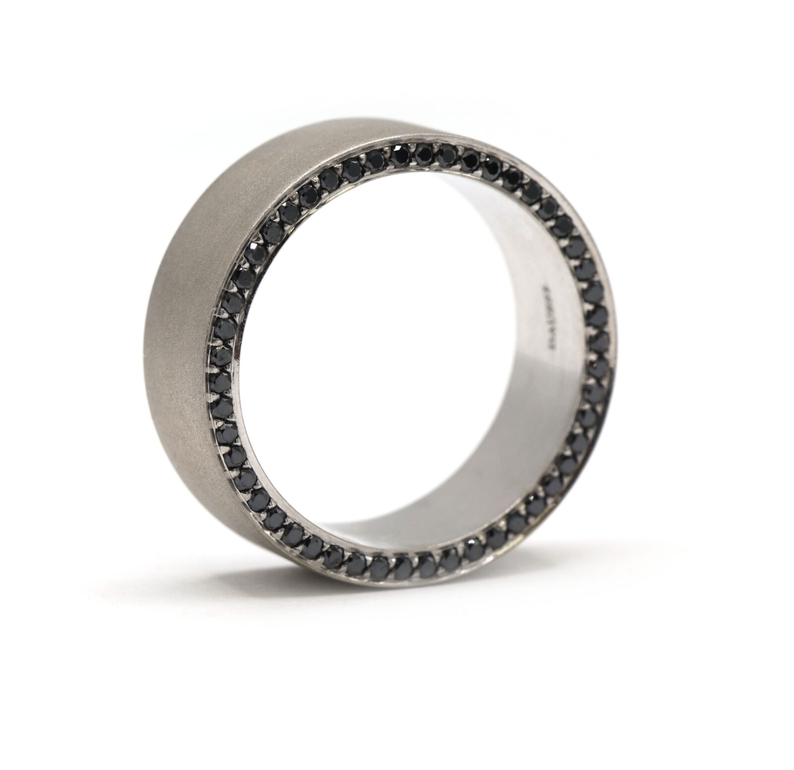 Daussi Black Diamond Row Men’s 14K White Gold Satin Matte Brushed Thick Band Ring