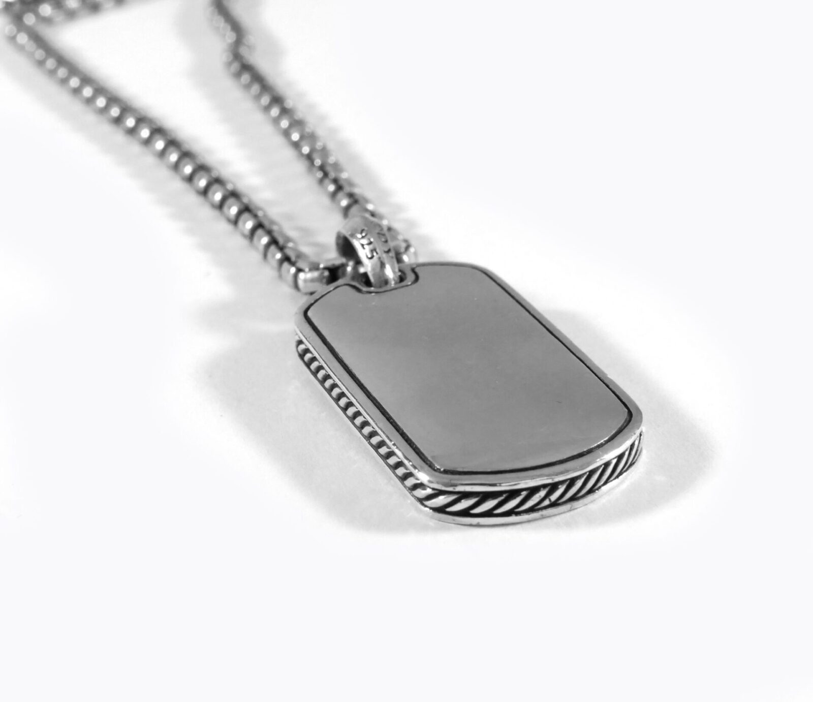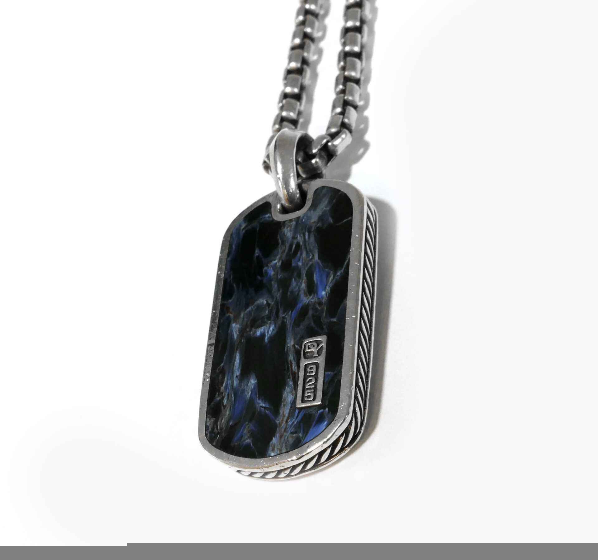 Product Description: This David yurman Dog Tag pendant is crafted in sterling silver 925, and features a piece of Pietersite set in the middle. Material: ...