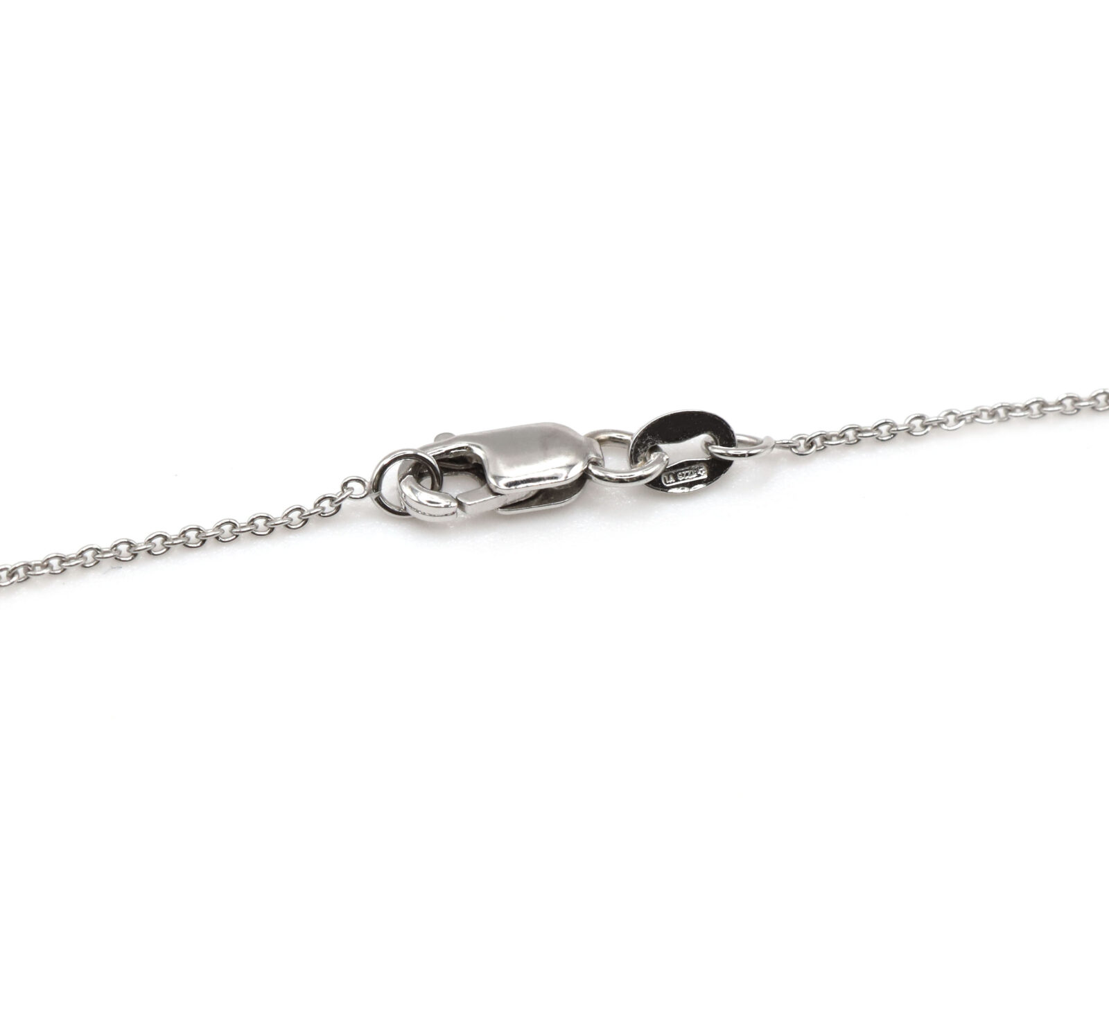 Brand: Roberto Coin Metal: 18k White Gold Gemstone: Diamond Length: 18 Inches Pendant Measurements: 12 x 13.5 mm