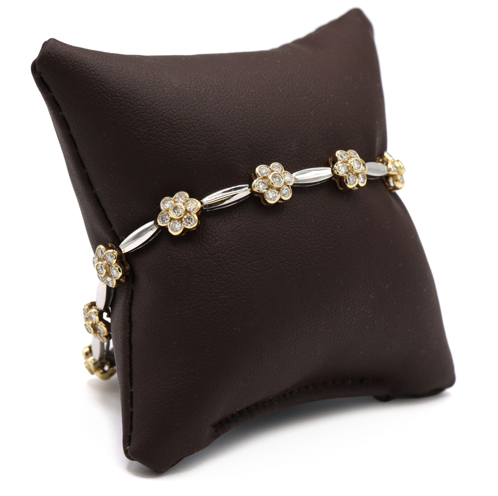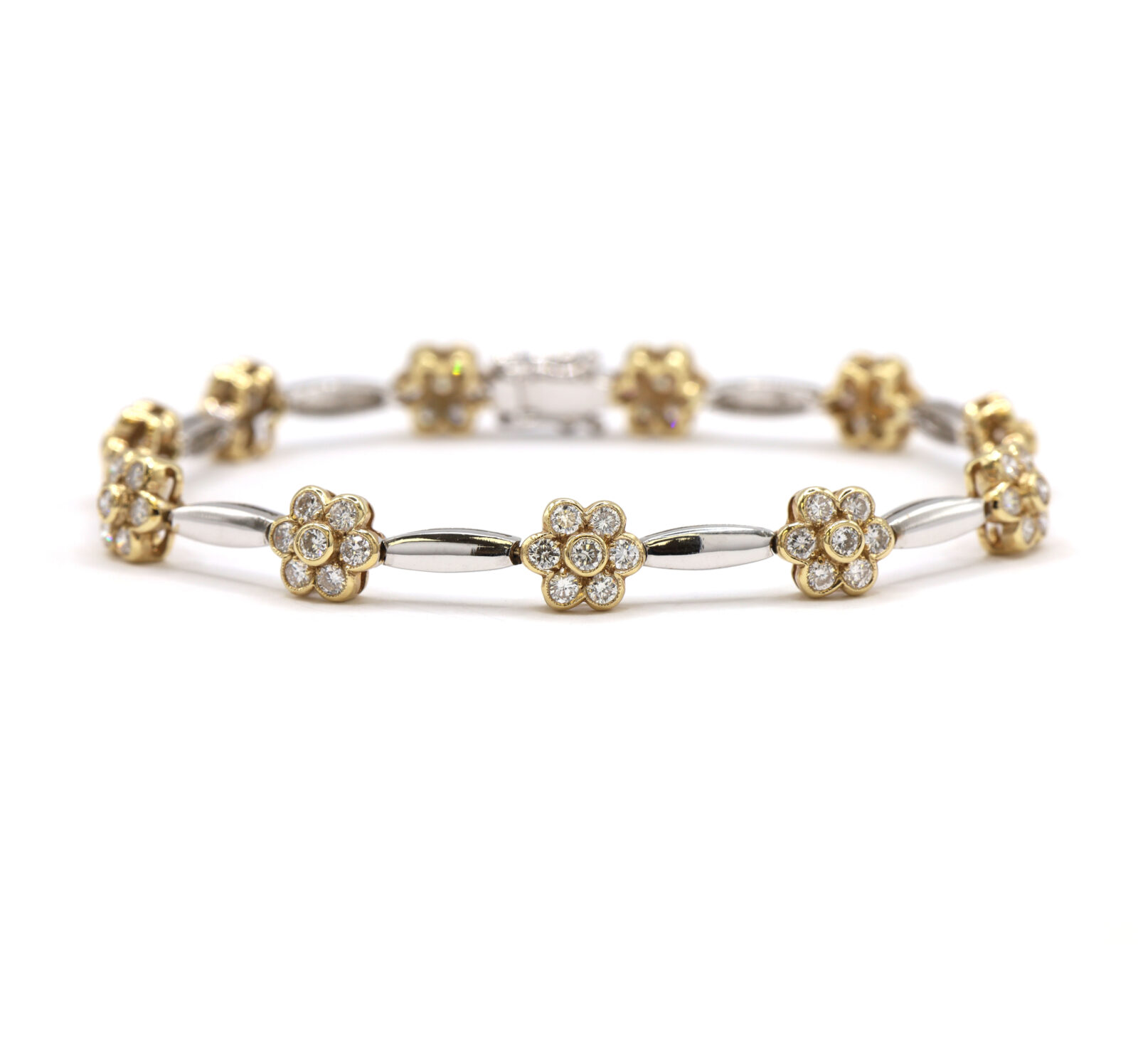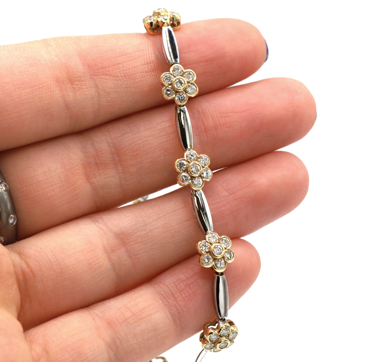 Material: 14k Yellow and White Gold Gemstone: Natural Diamond Carat Weight: Approximately 3.08 Carat Clarity: VS2/SI2 Color: F/G Cut: Round Width: 7.6mm Length: 7 Inches Weight: 9.6 Grams