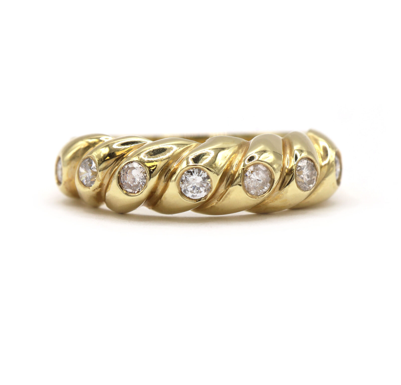 Diamond Row Invisible Set Stacking Stackable 14K Yellow Gold Bubble Retro Women’s Ring