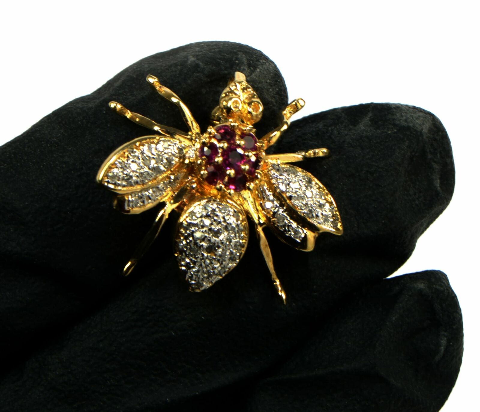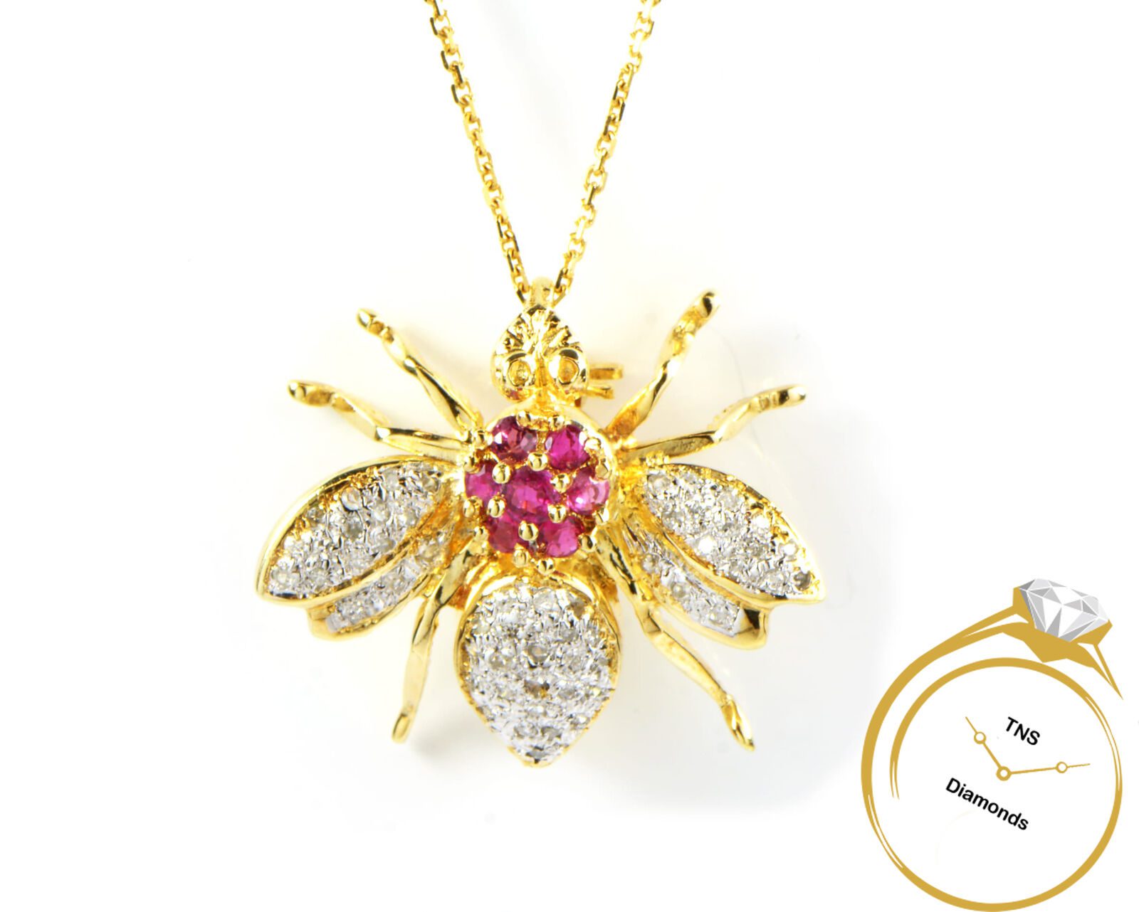 Diamond Ruby Bee Pendant 14k Yellow White Gold Charm