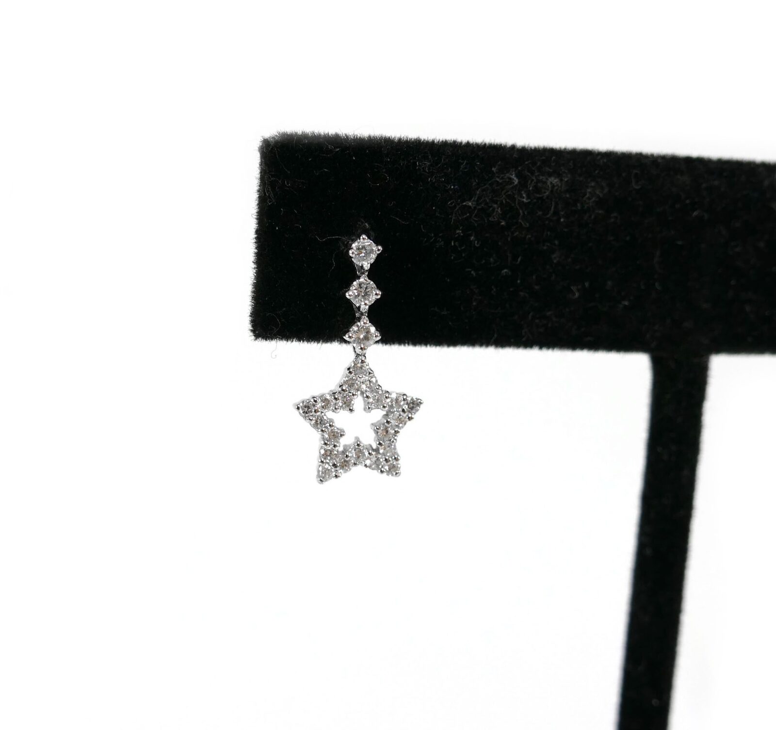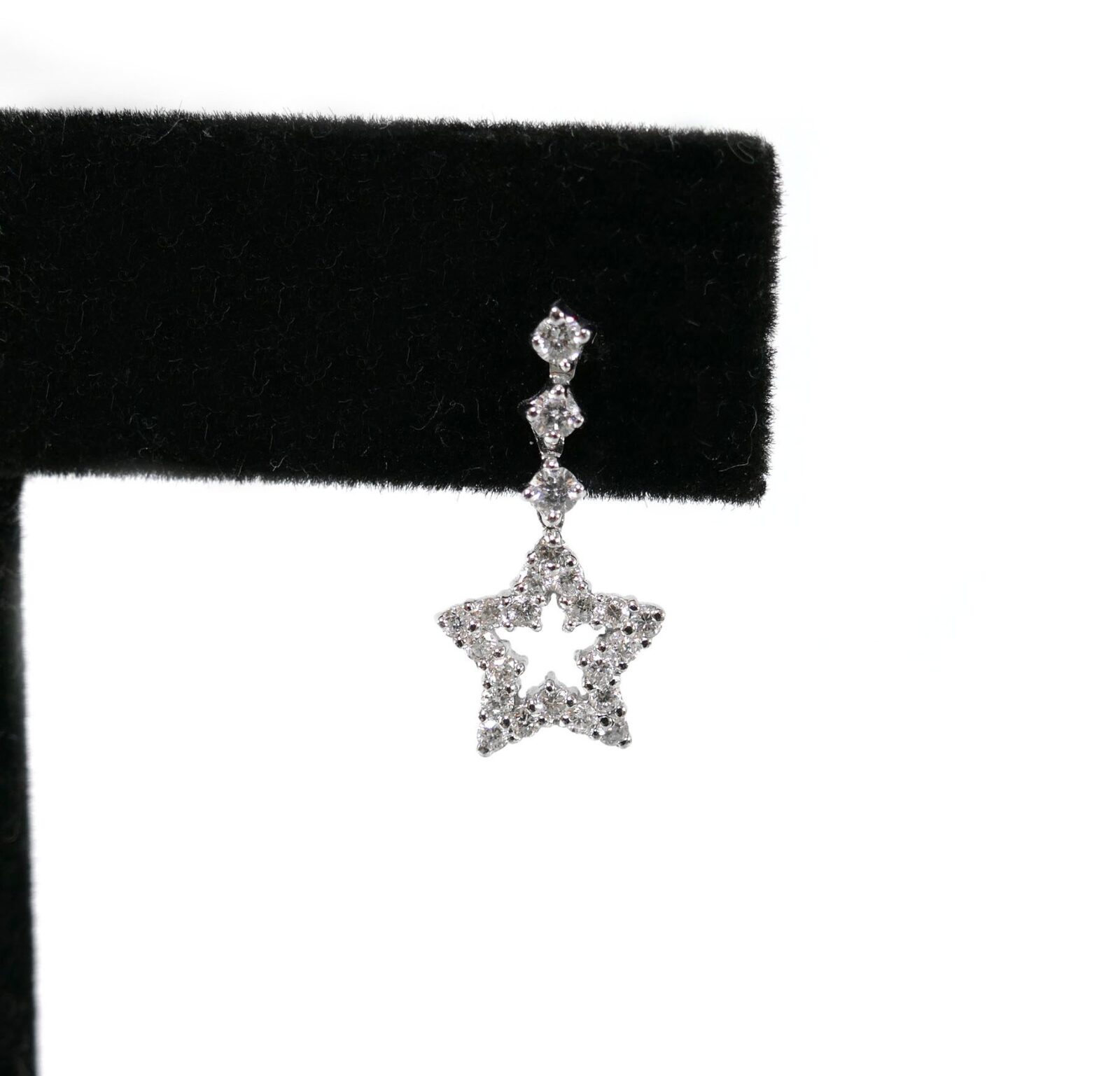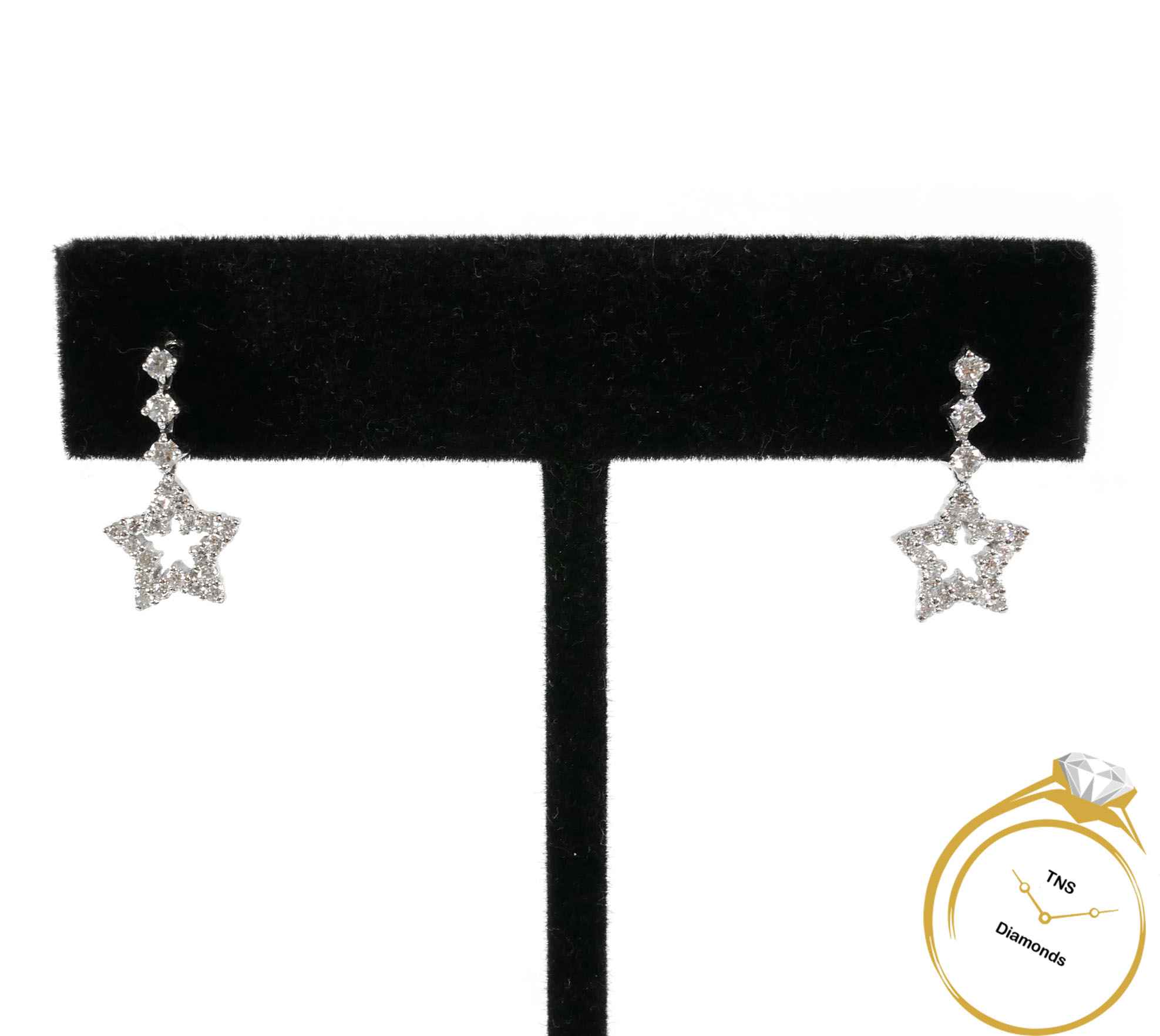 Product Description: These gorgeous diamond star shape earrings are filled with .49 carats of VS diamonds. Material: 18k White Gold Stone:...