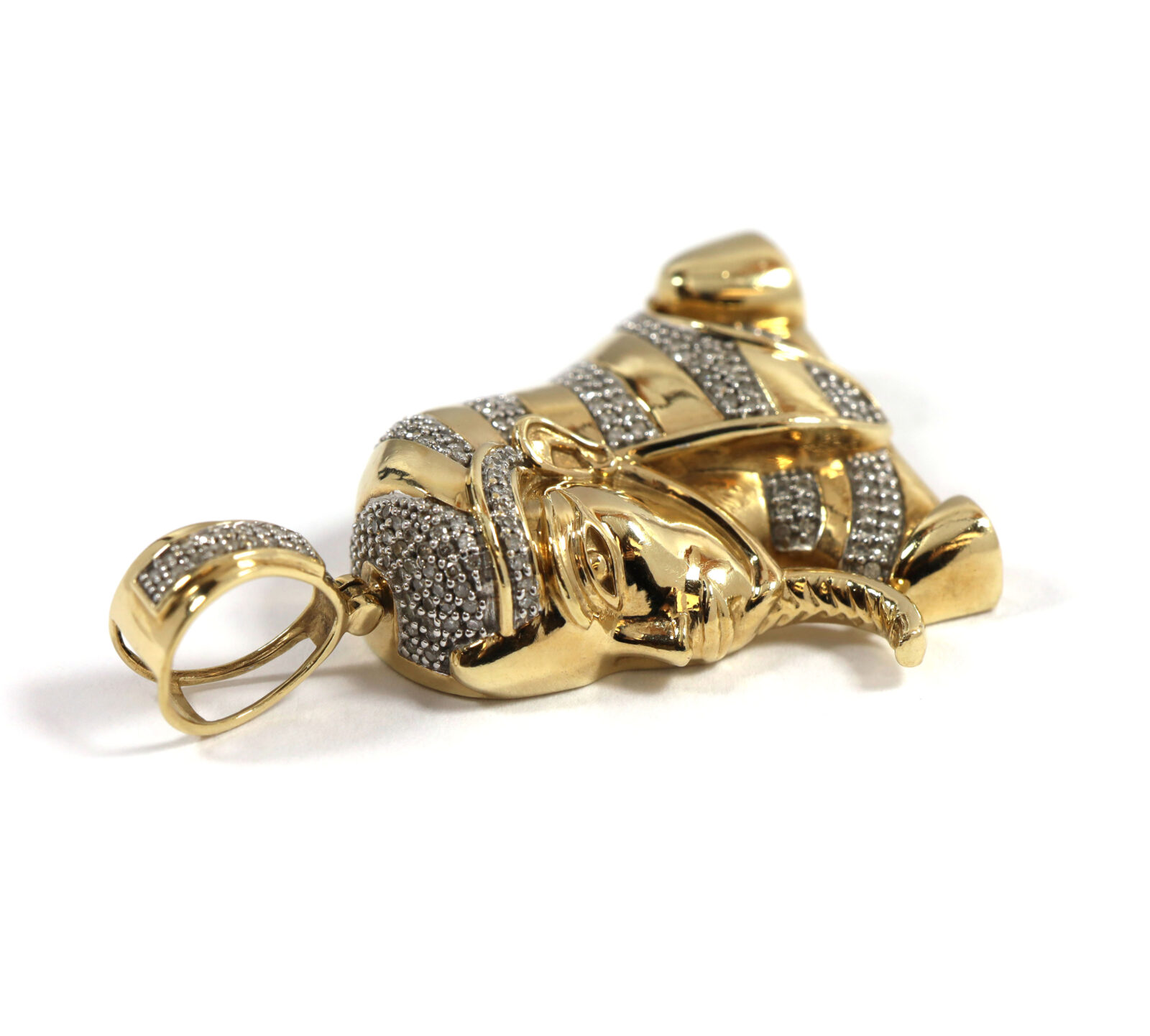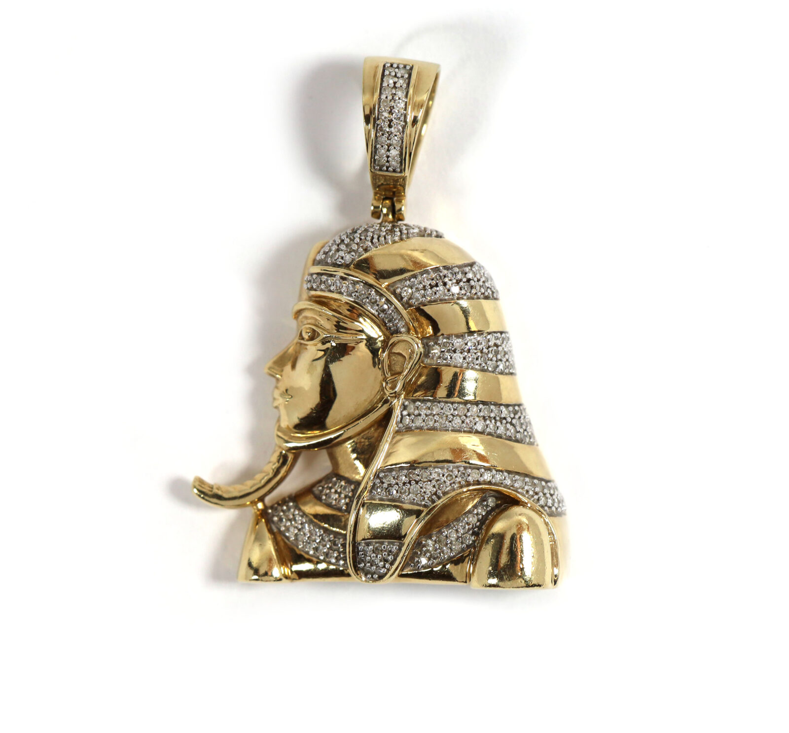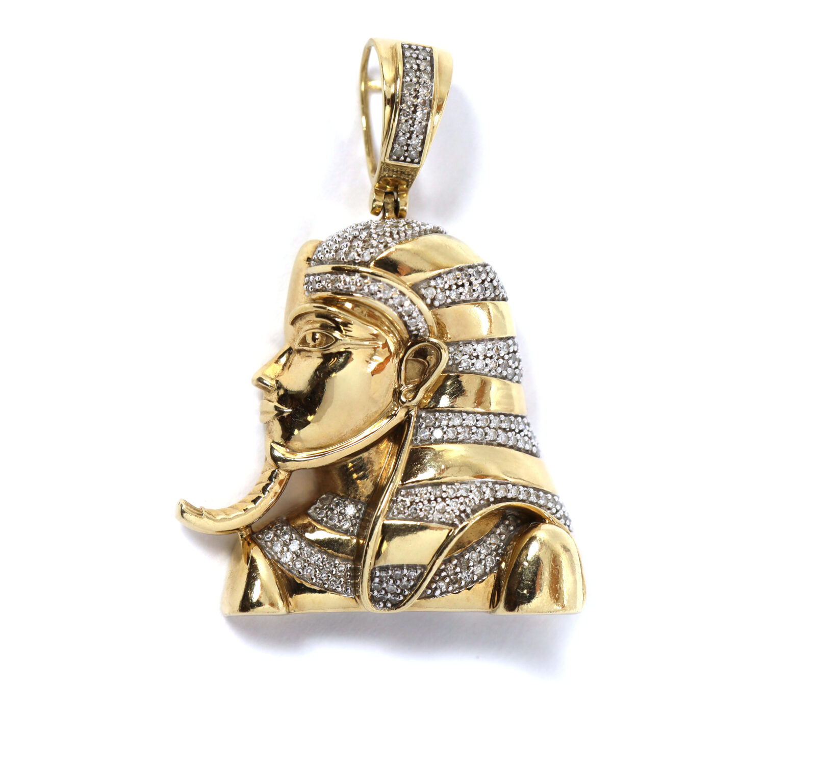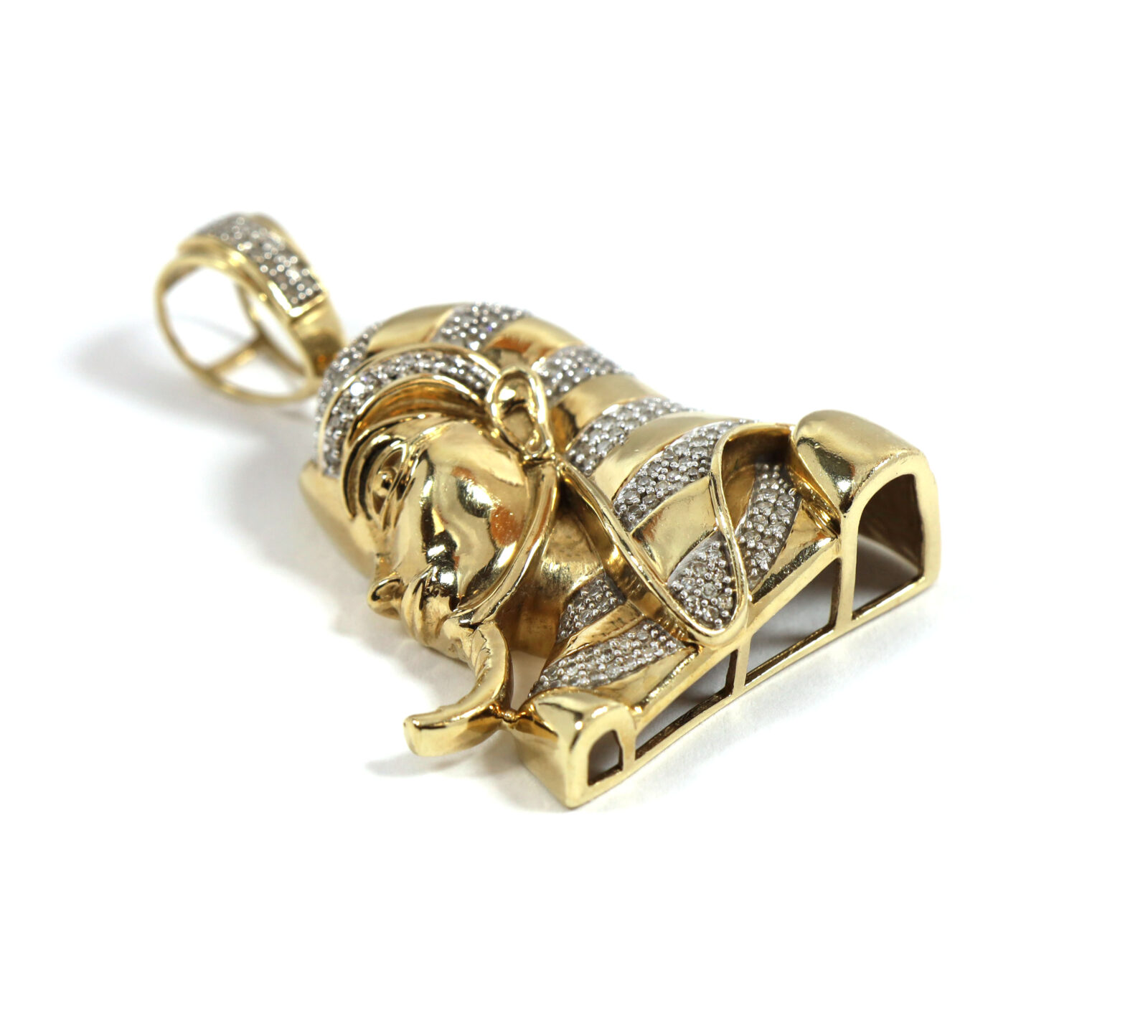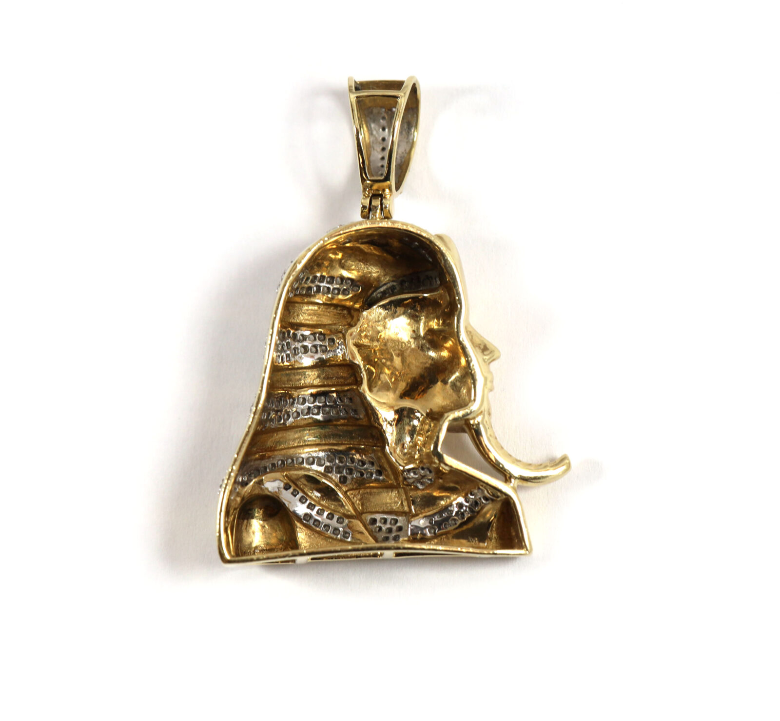 Egyptian Pharaoh King Tut Diamond Pave 10K Yellow/white Gold Pendant Necklace
