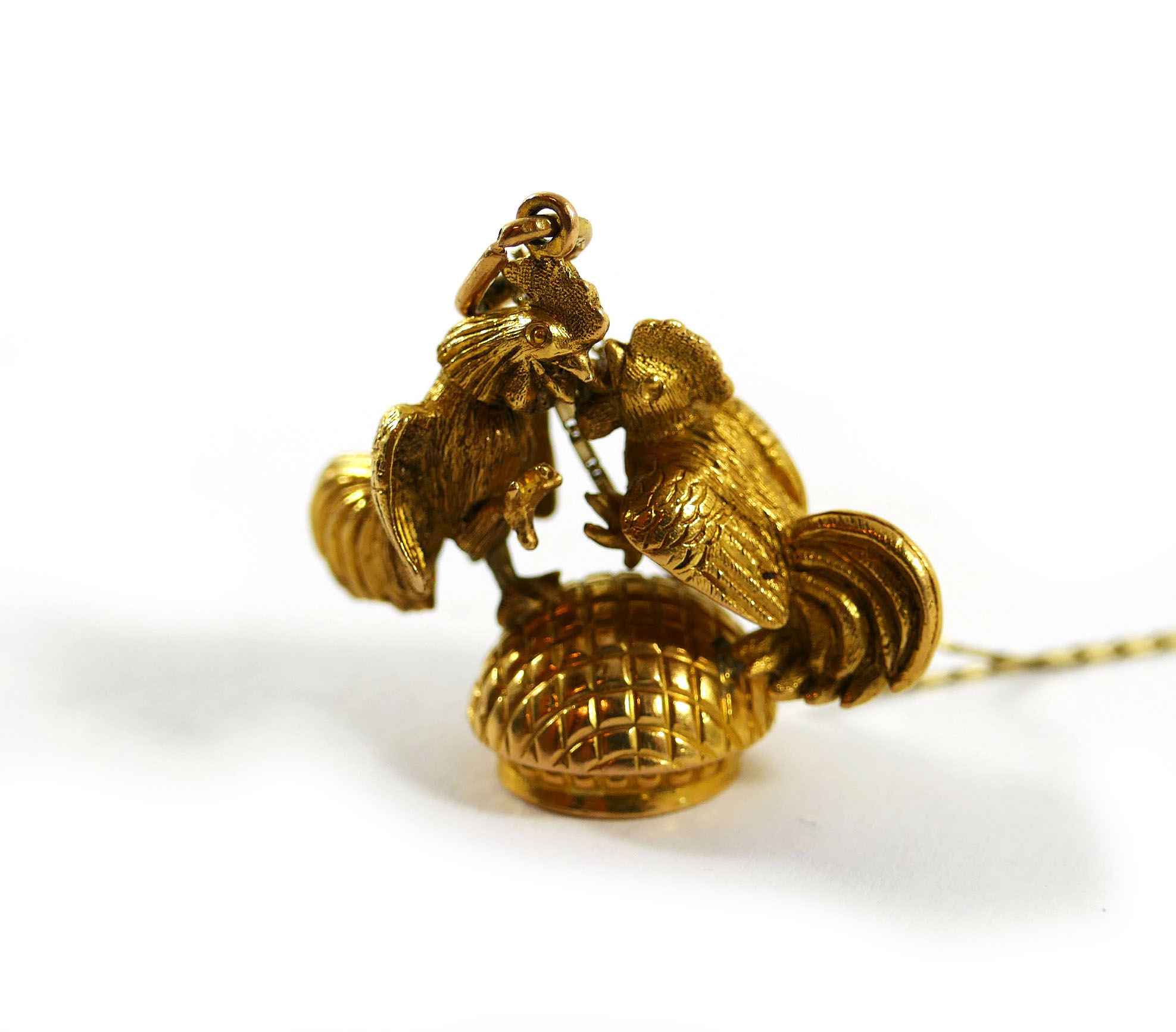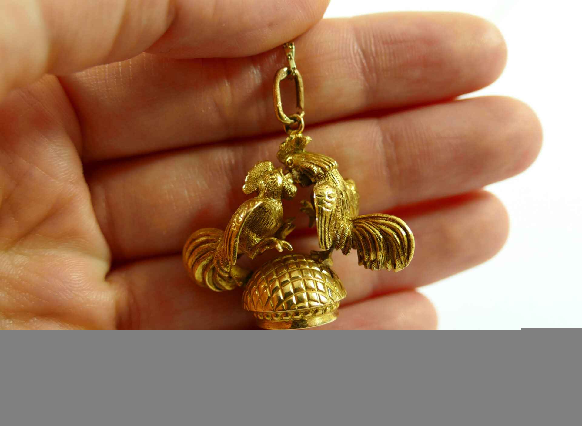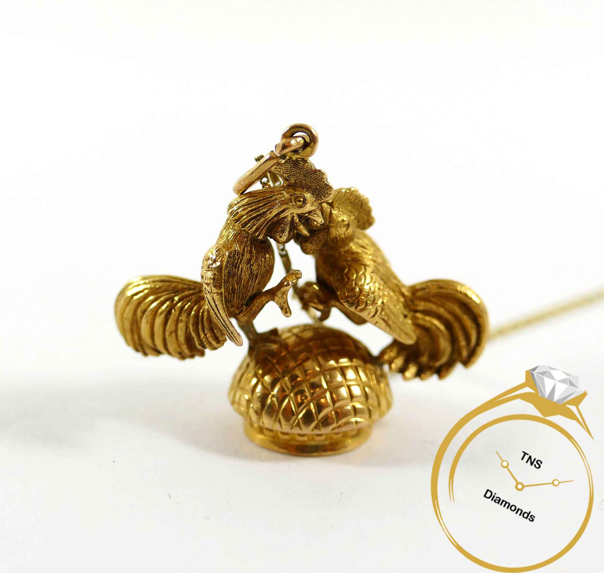 This amazing custom made pendant is shaped as two fighting roosters, extremely detailed in solid 18k yellow gold. This is definitely a one of a kind piece of jewelry! This pendant doesn't come with...