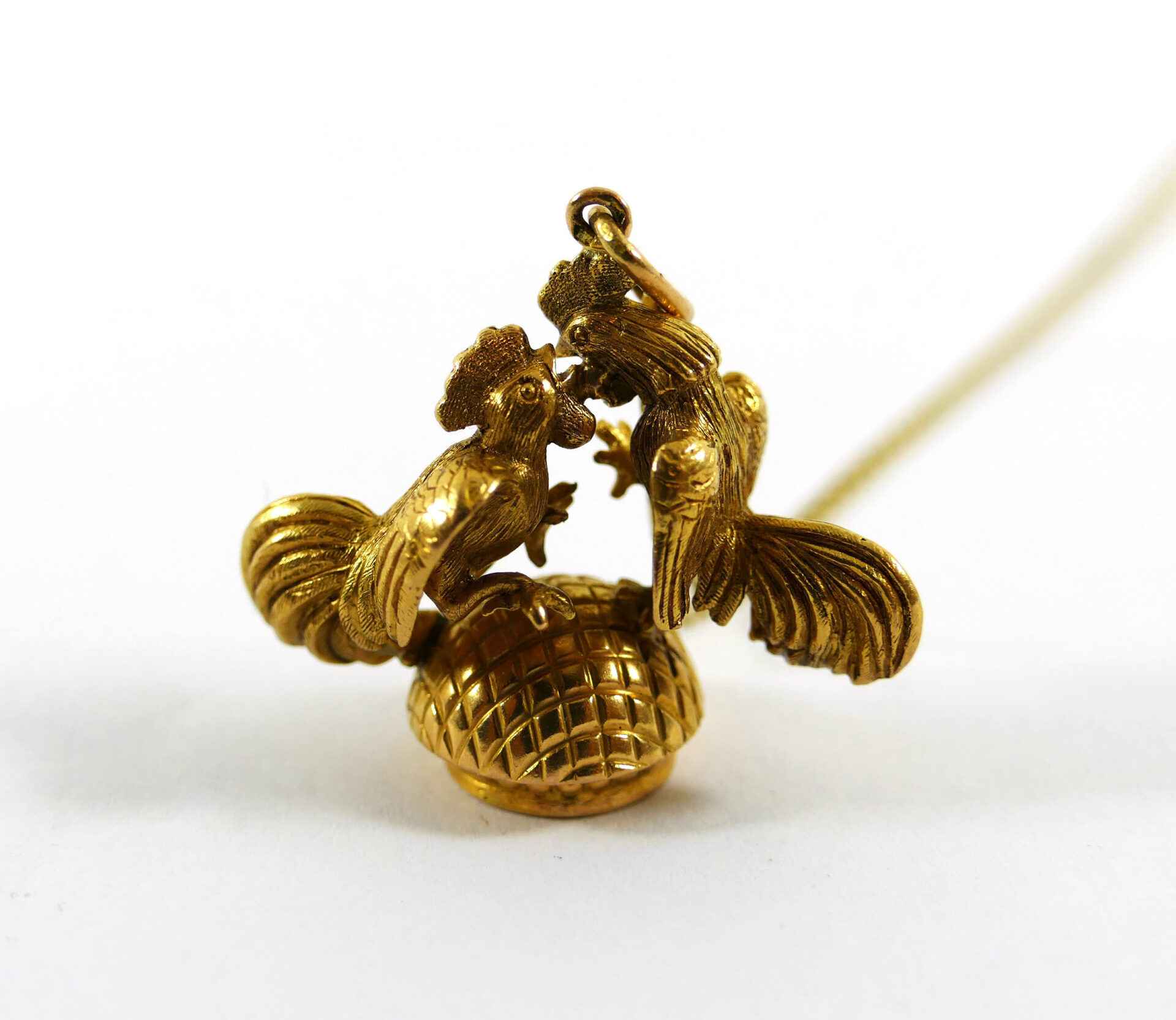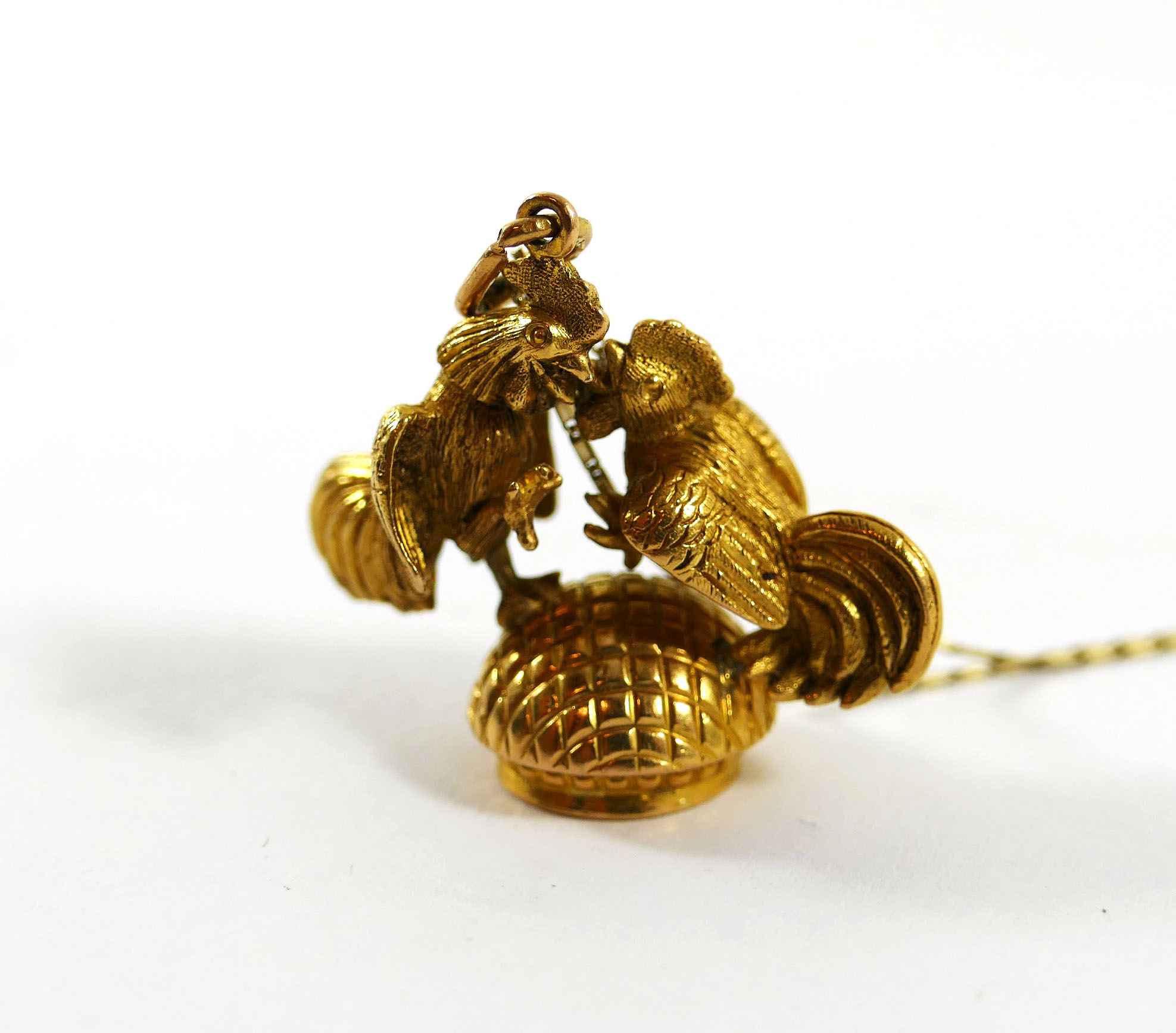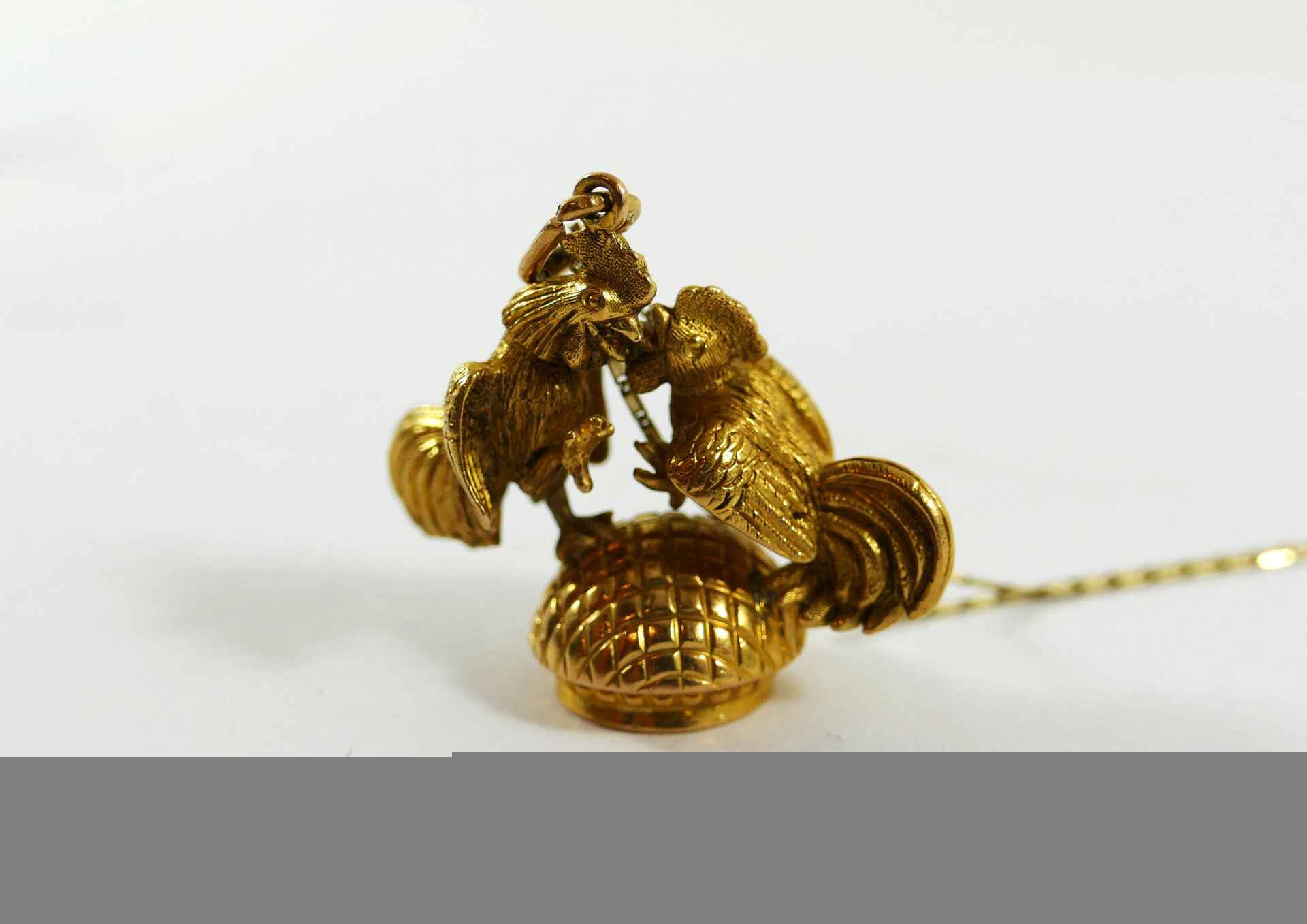 This amazing custom made pendant is shaped as two fighting roosters, extremely detailed in solid 18k yellow gold. This is definitely a one of a kind piece of jewelry! This pendant doesn't come with...