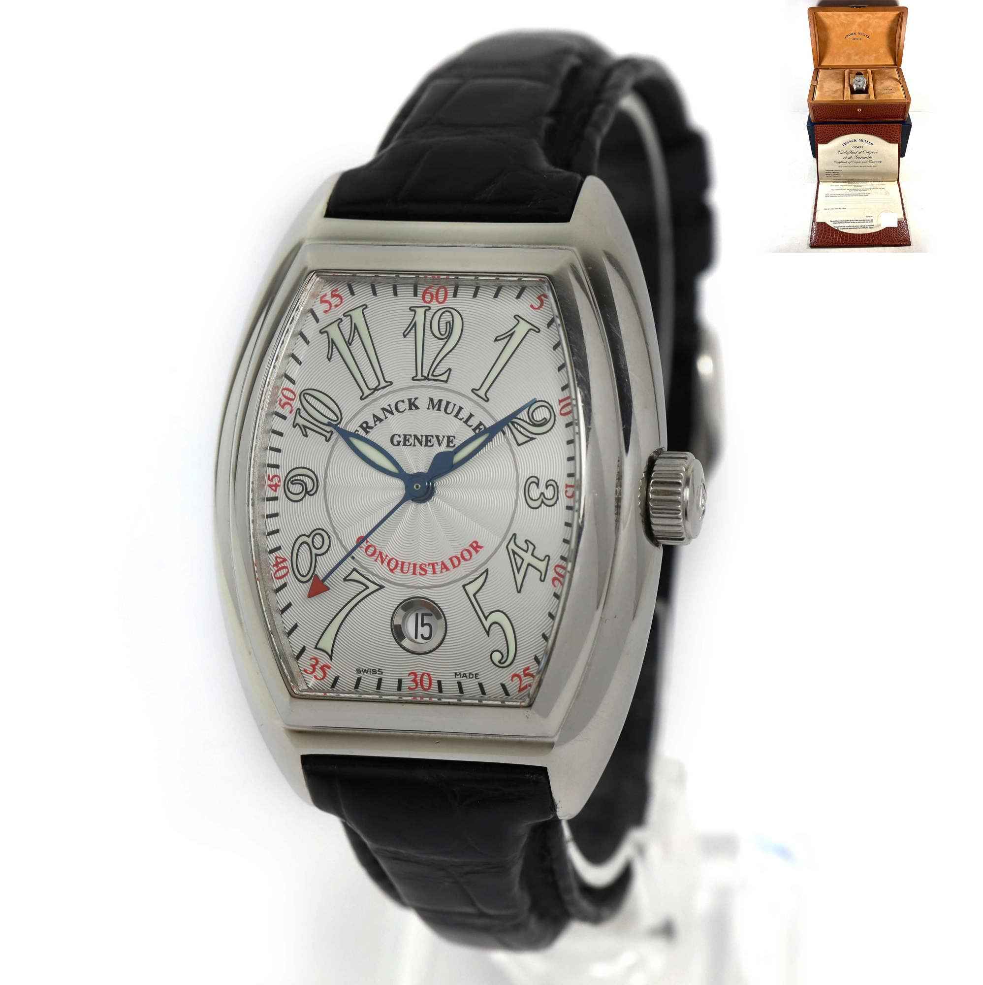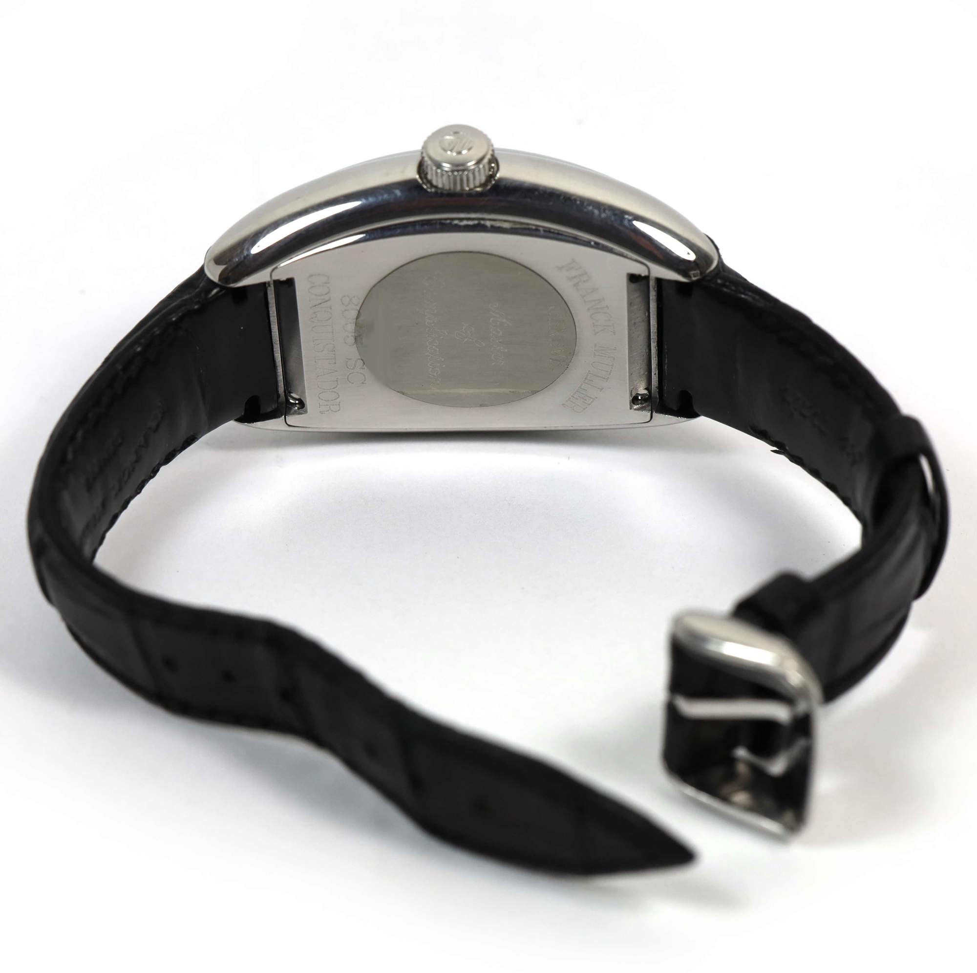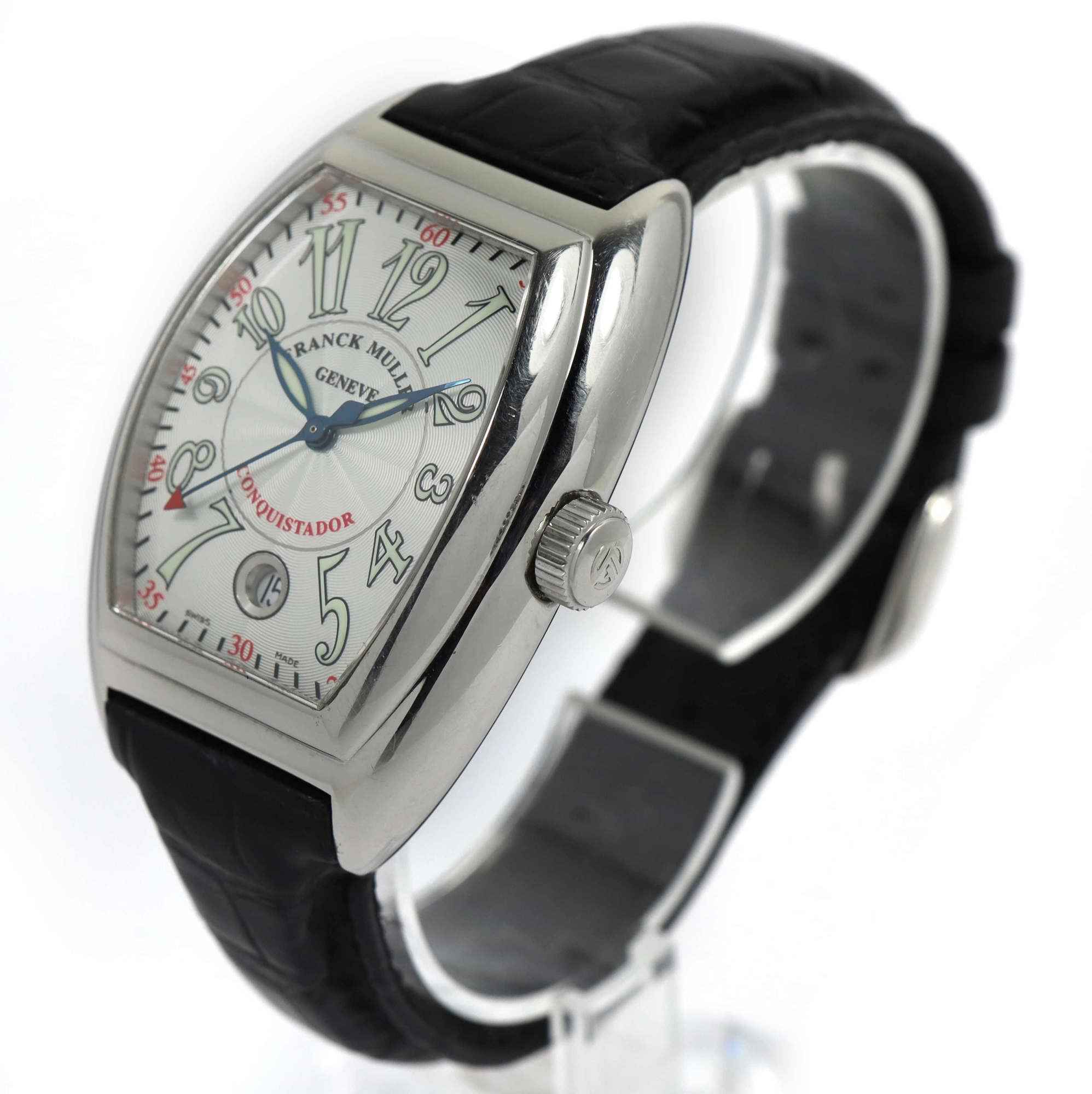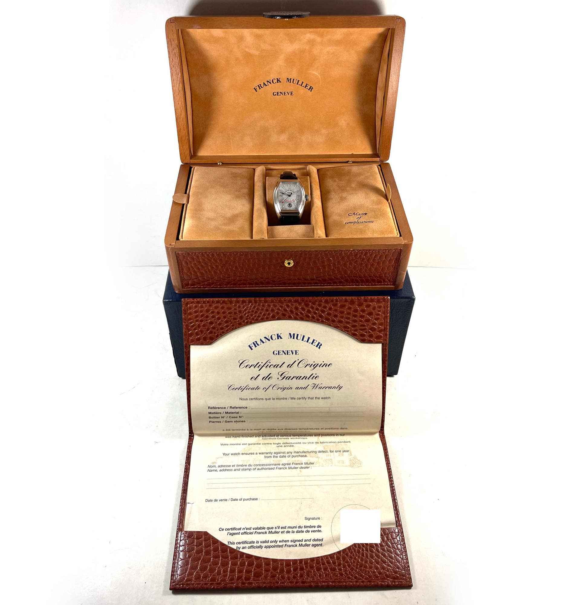 THIS FRANCK MULLER WATCH IS IN VERY GOOD OVERALL CONDITION SHOWING SOME SIGNS OF WEAR ON THE CASE AND COMES WITH ITS BOX AND WARRANTY PAPER AS SHOWN IN THE PICTURES ATTACHED. THIS WATCH FEATURES A 35MM X 41MM STAINLESS STEEL CASE SURROUNDING A SILVER DIAL O...