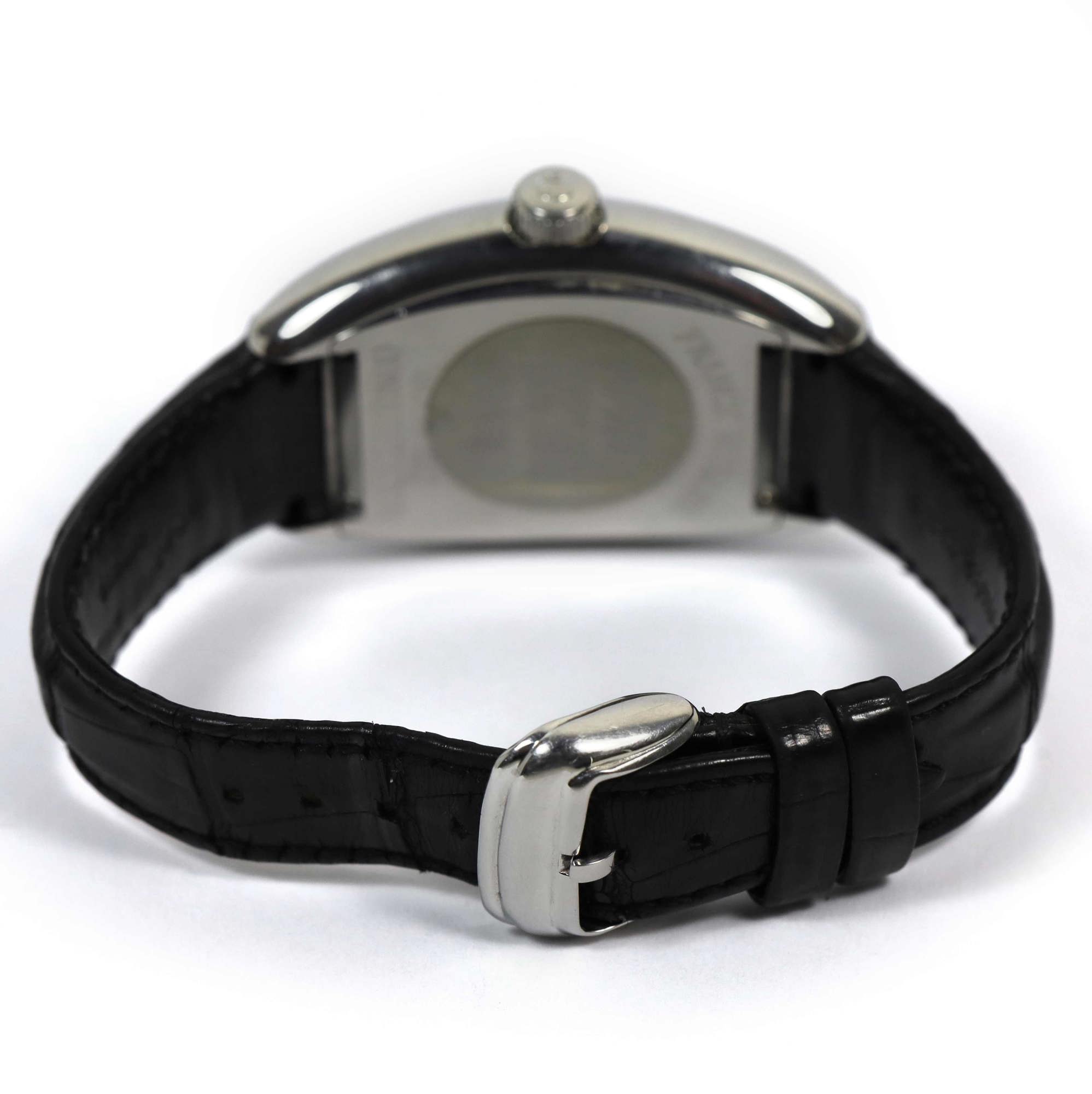 Read Morethis franck muller watch is in very good overall condition showing some signs of wear on the case and comes with its box and warranty paper as shown in the pictures attached. This watch features a 35mm x 41mm stainless steel case surrounding a silver dial on a black leather strap with a stainless steel tang buckle. The watch functions include hours, minutes, seconds and date.