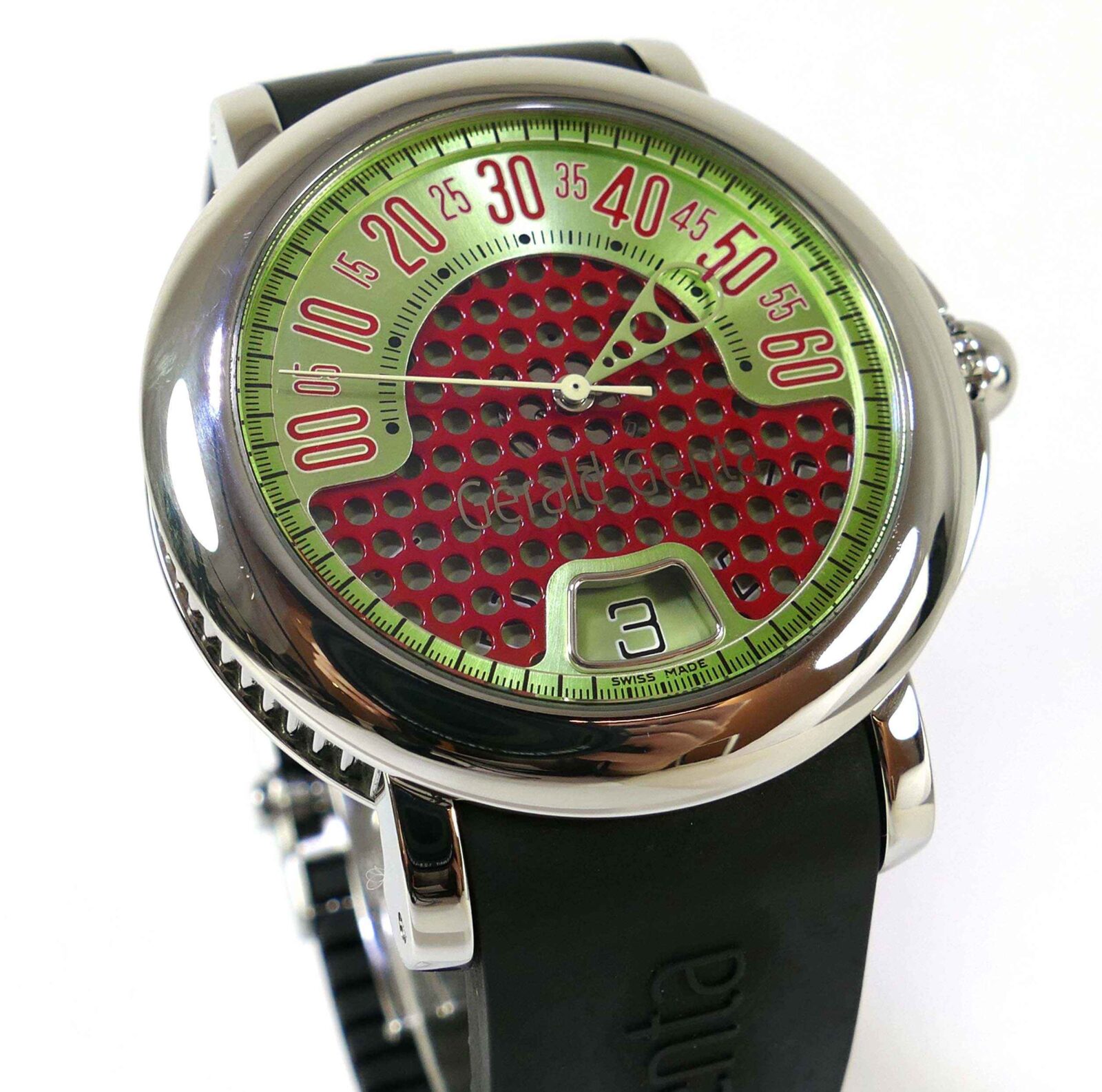 This amazing watch features a very cool Green and Red dial. The first photo of the watch reads the time as 3:50 and 5 seconds. The bottom number is the hour, and once the minute hand reaches the 60 minute mark, it jumps b...