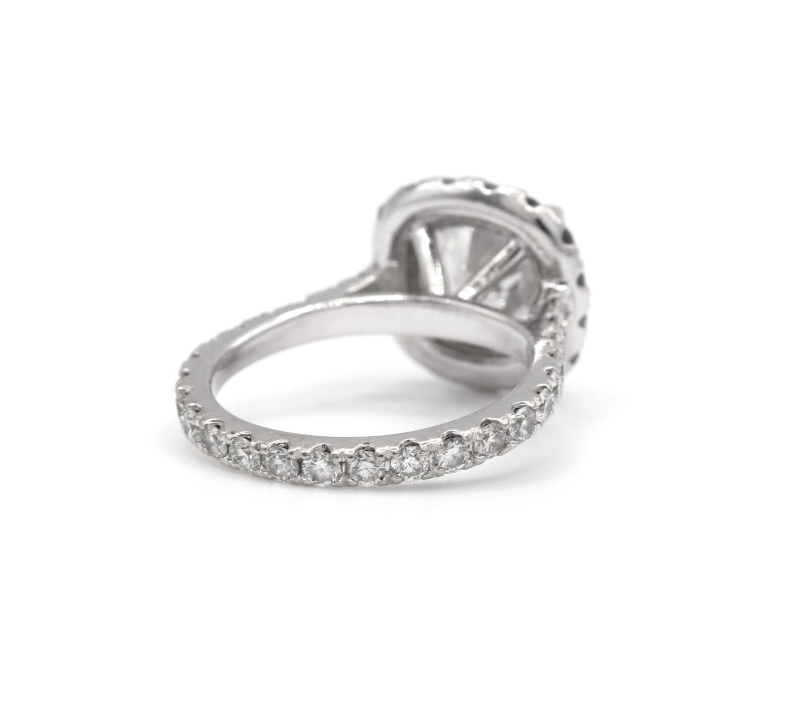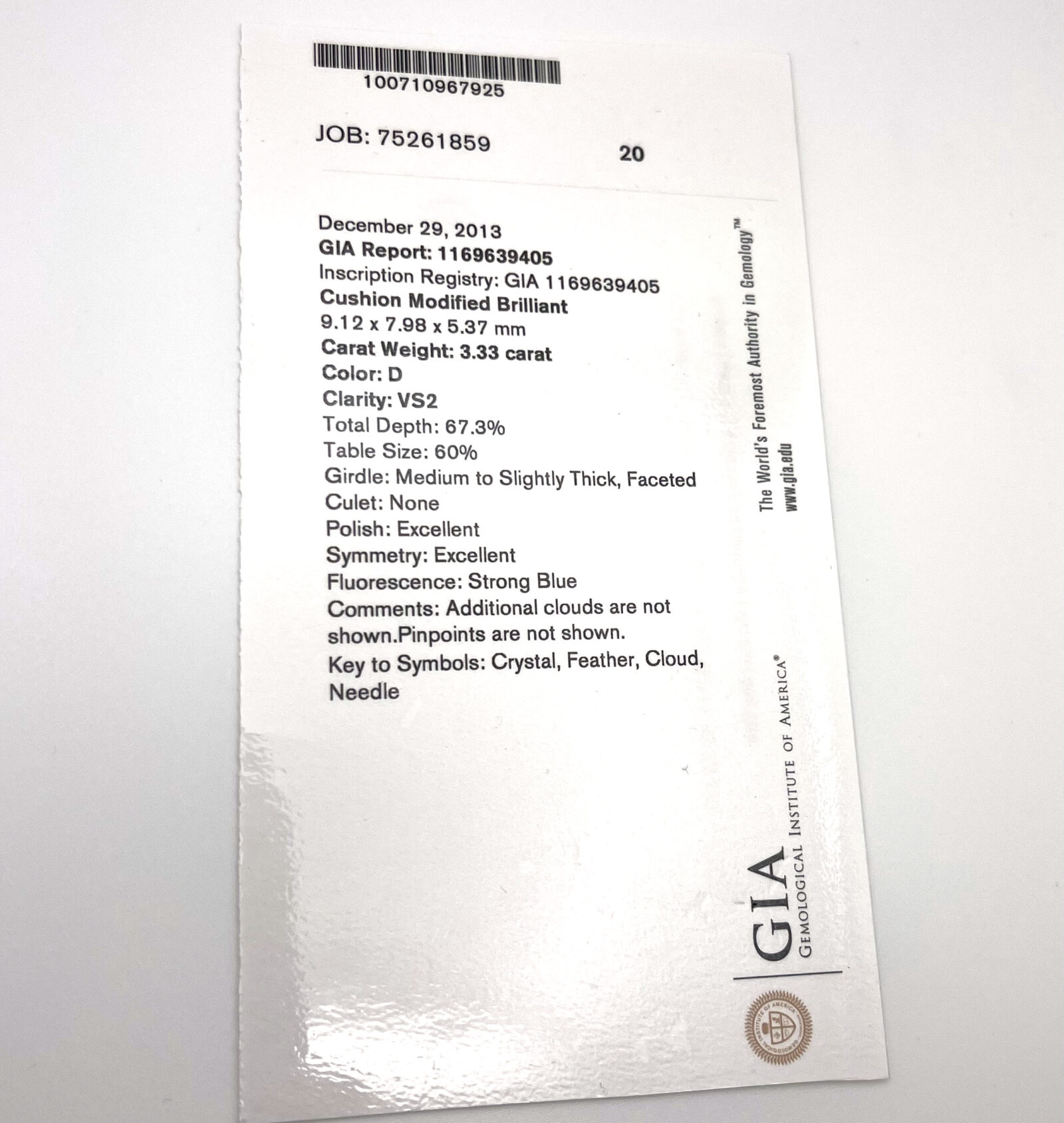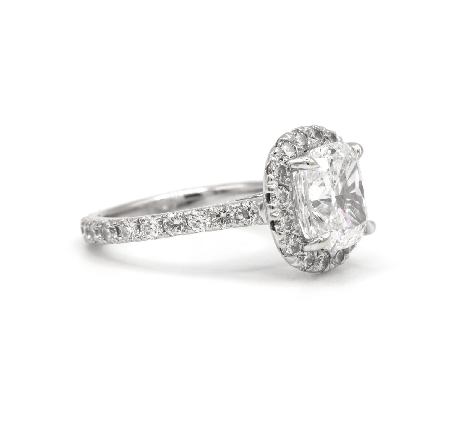 celebrate forever with this elegant 14k white gold engagement ring, featuring a gia-certified 3.33-carat elongated cushion-cut diamond. With d color, vs2 clarity, and exceptional brilliance, the center stone is enhanced by a sparkling diamond halo and a 2mm band adorned with 0.85 carats of d color, si2 clarity side stones for added radiance. Metal: 14k white gold band width: 2mm size: 5.5 total diamond carat weight: 4.18 carat center stone: gia graded diamond center stone carat weight: 3.33 carat color: d clarity: vs2 cut: elongated modified brilliant cushion side stones: diamond side stone carat weight: 0.85 carat clarity: si2 color: d