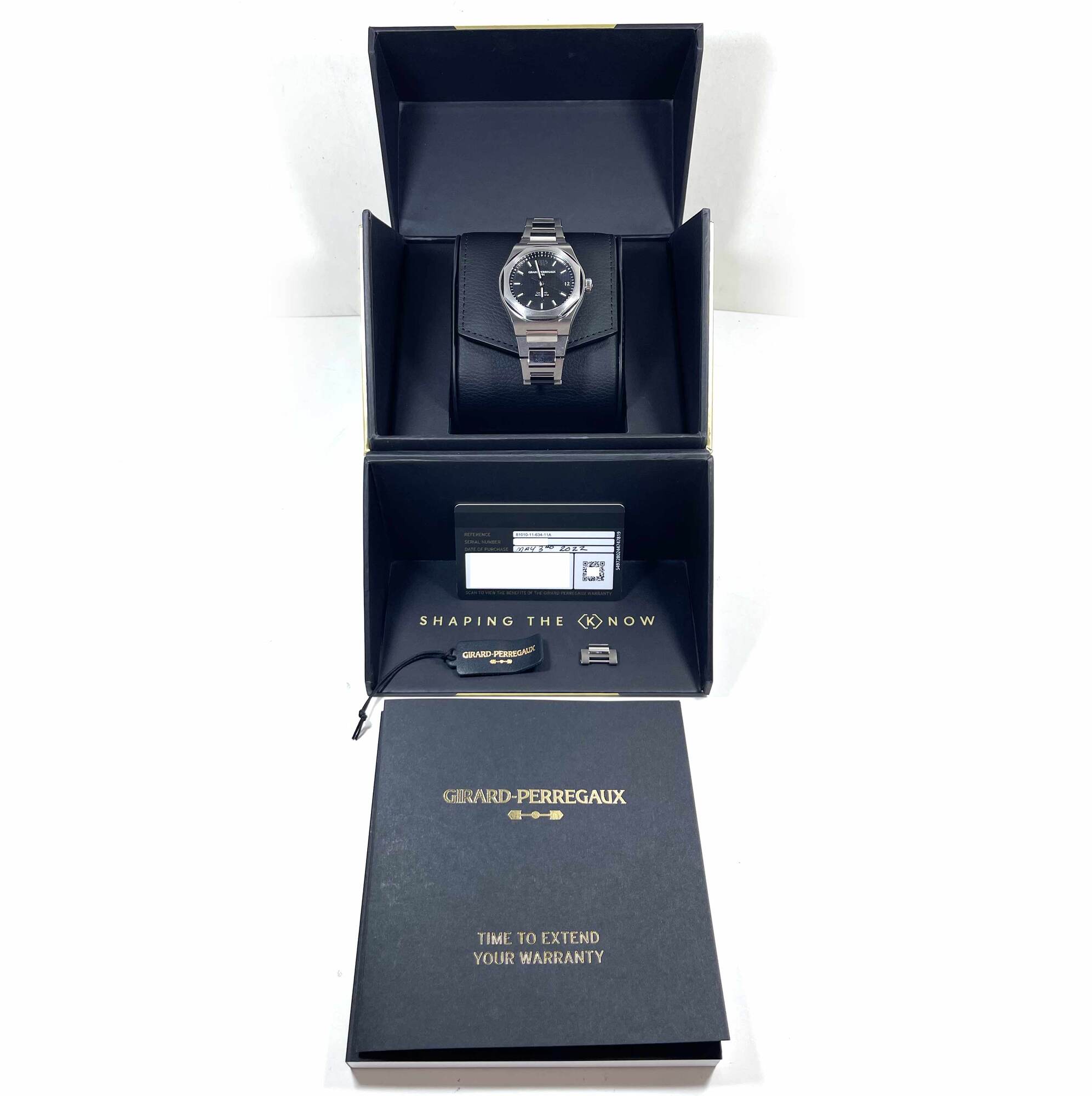 THIS GIRARD PERREGAUX IS IN EXCELLENT OVERALL CONDITION AND COMES WITH ITS BOX, BOOKLETS, ONE SPARE LINK, HANG TAG, AND WARRANTY CARD DATED MAY 3RD, 2022 AS SHOWN IN THE PICTURES ATTACHED. THIS WATCH IS IN STOCK AND AVAILABLE TO SHIP IMMEDIATELY!