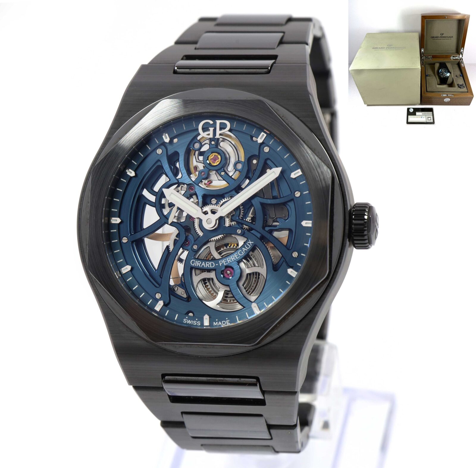 this girard perregaux watch is in amazing overall condition and comes with its box and warranty card dated january 14th, 2022 as shown in the pictures attached. This watch is in stock and available to ship immediately!