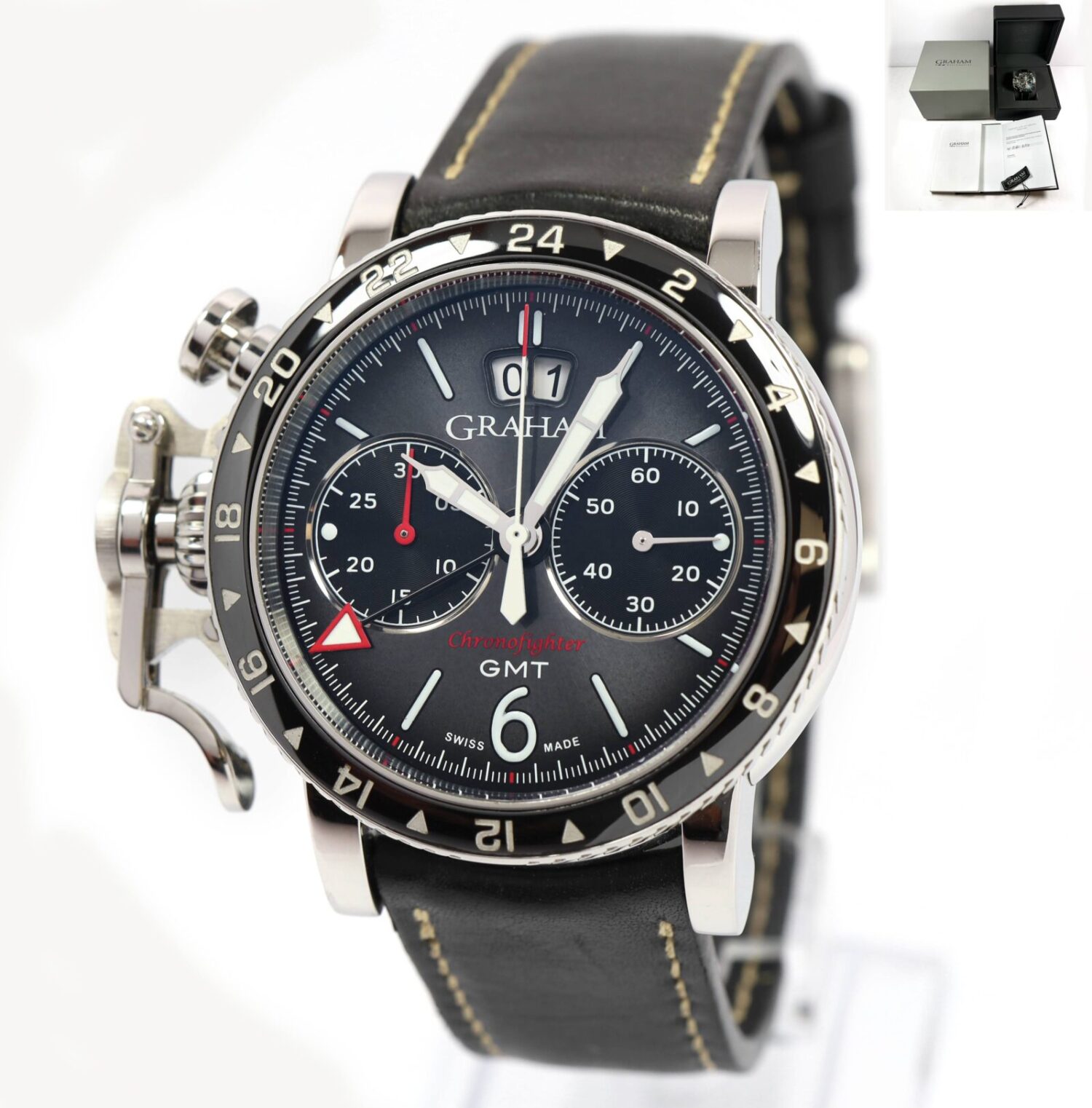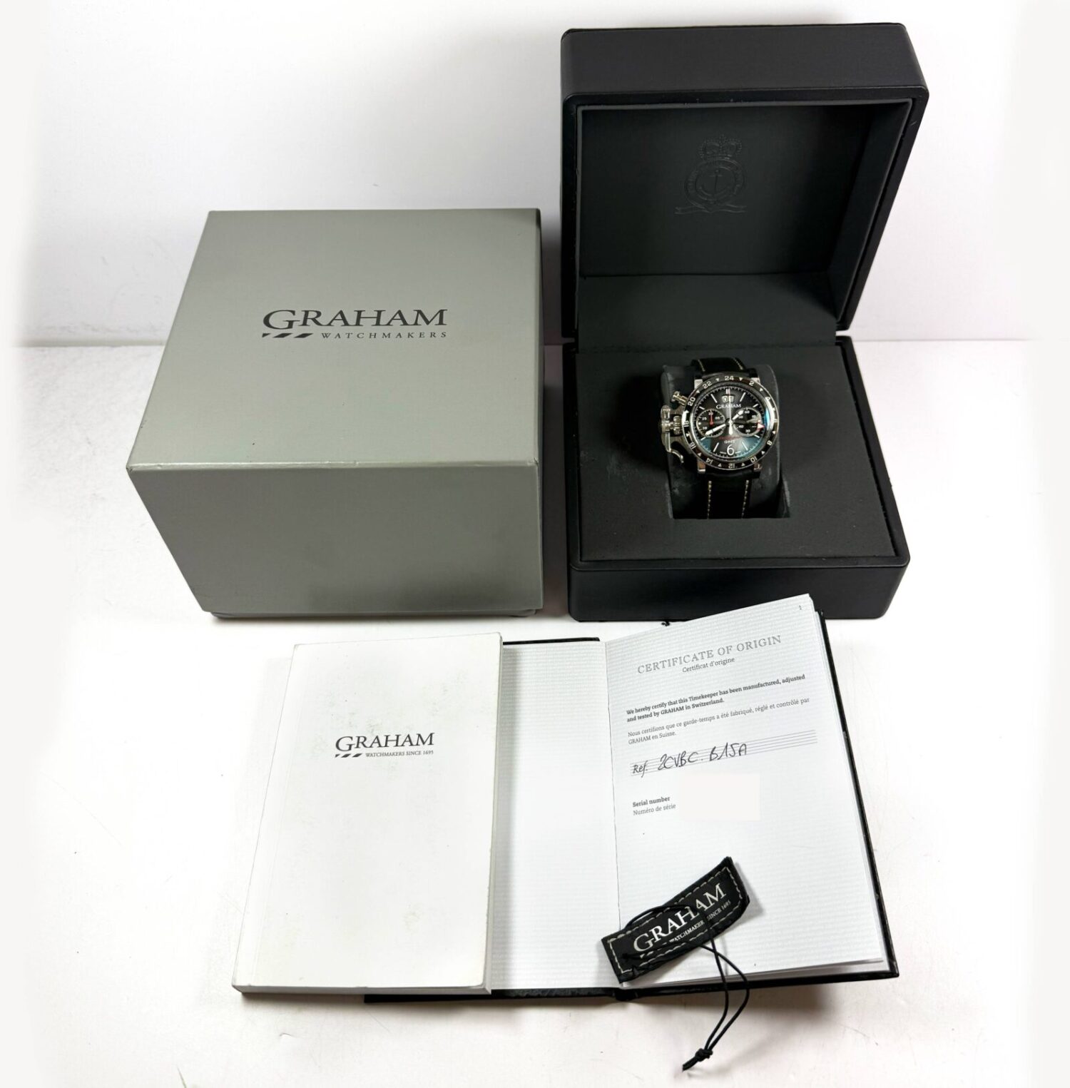 this graham watch is in excellent overall condition and comes with box, booklets, hang tag, and warranty paper as shown in the pictures attached. This watch is in stock and available to ship immediately!