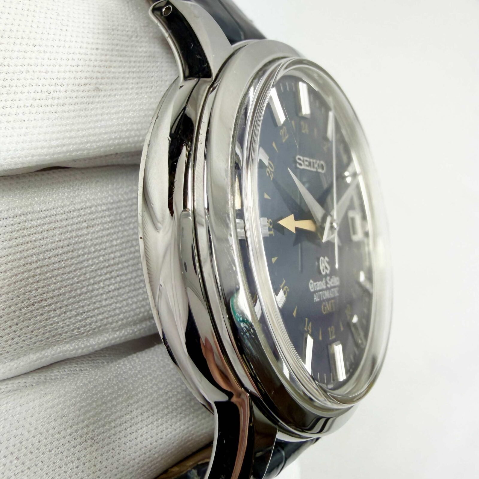 this grand seiko watch is in great condition showing some light signs of surface wear consistent with preowned watches. This comes with its box, booklets, and warranty paper as shown in the pictures attached. Please note the leather strap does show wear from the previous owners and the crystal has a scratch on it around the 10 o’clock hour marker. This watch is in stock and is ready to ship immediately!