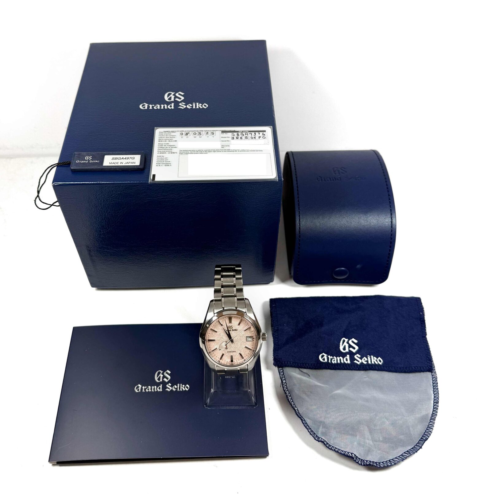 this grand seiko watch is in mint overall condition and comes with its box, booklets, hang tag, and warranty card dated may 8th, 2025 as shown in the pictures attached. This watch is in stock and available to ship immediately!