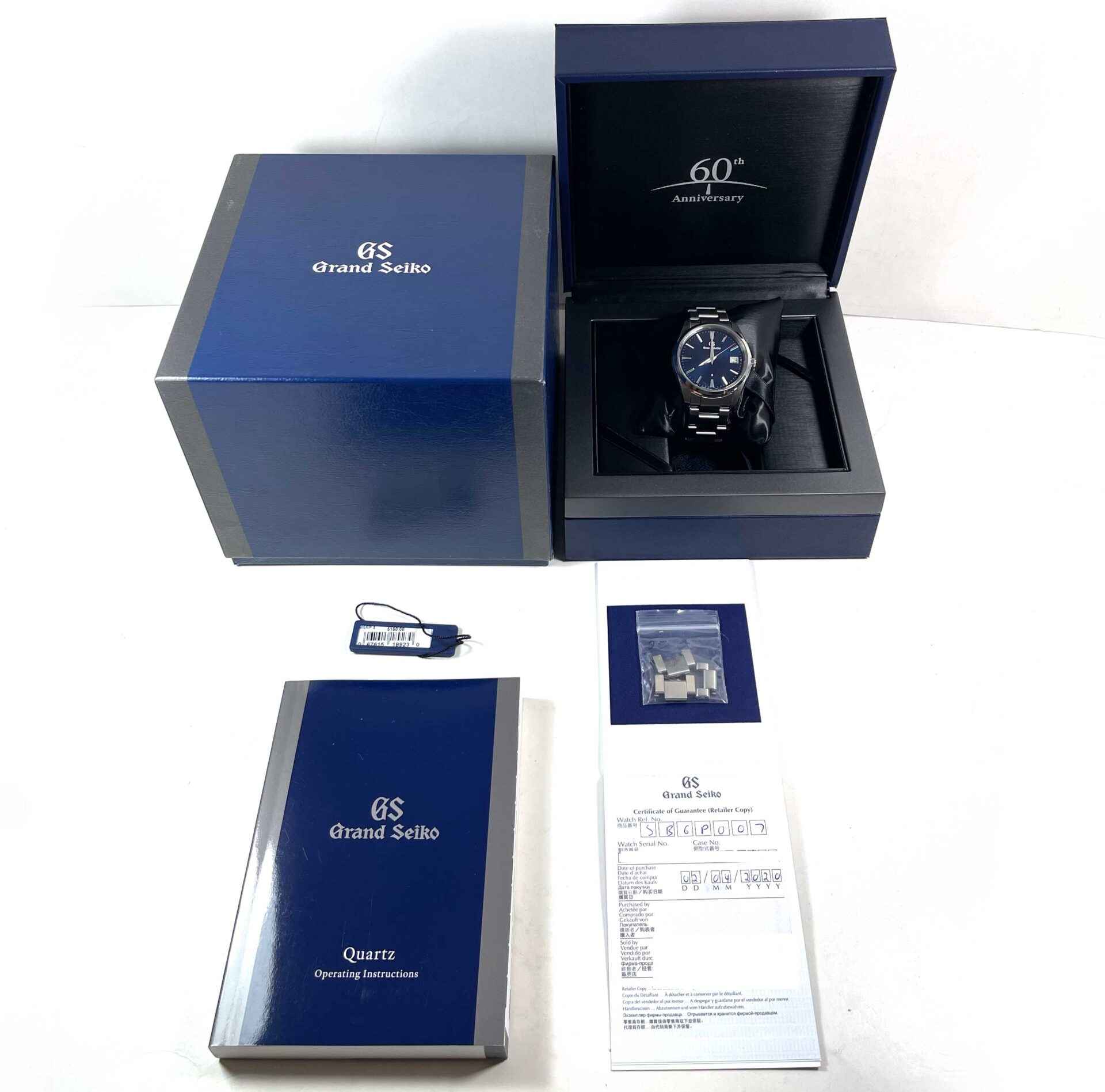 this grand seiko watch is in excellent condition and comes with its box, booklets, hang tag, spare links, and warranty paper dated april 2nd, 2020. This watch is in stock and available to ship immediately!