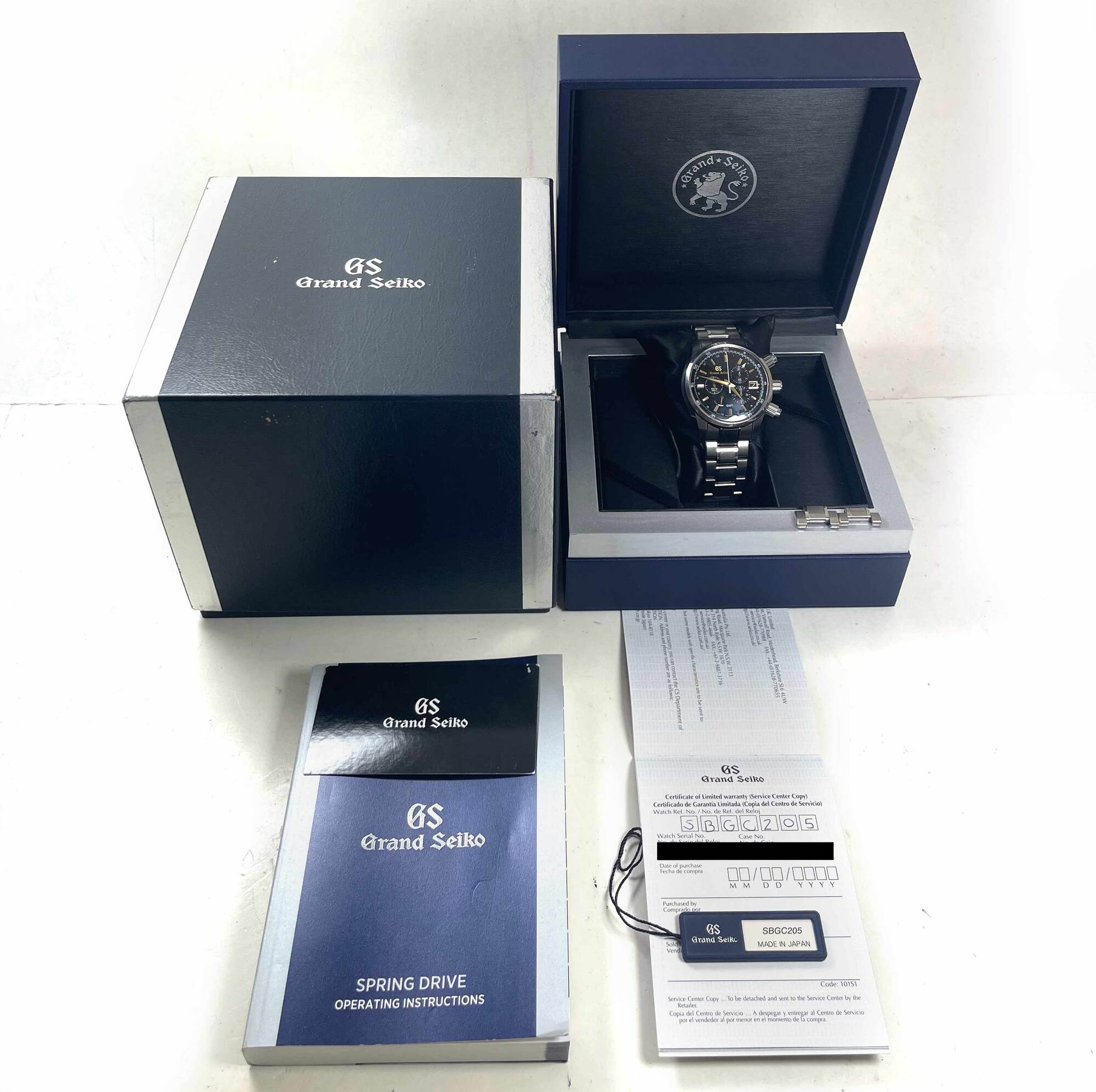 Grand Seiko Spring Drive Chronograph SBGC205 43.5MM Titanium Black Dial Box Papers