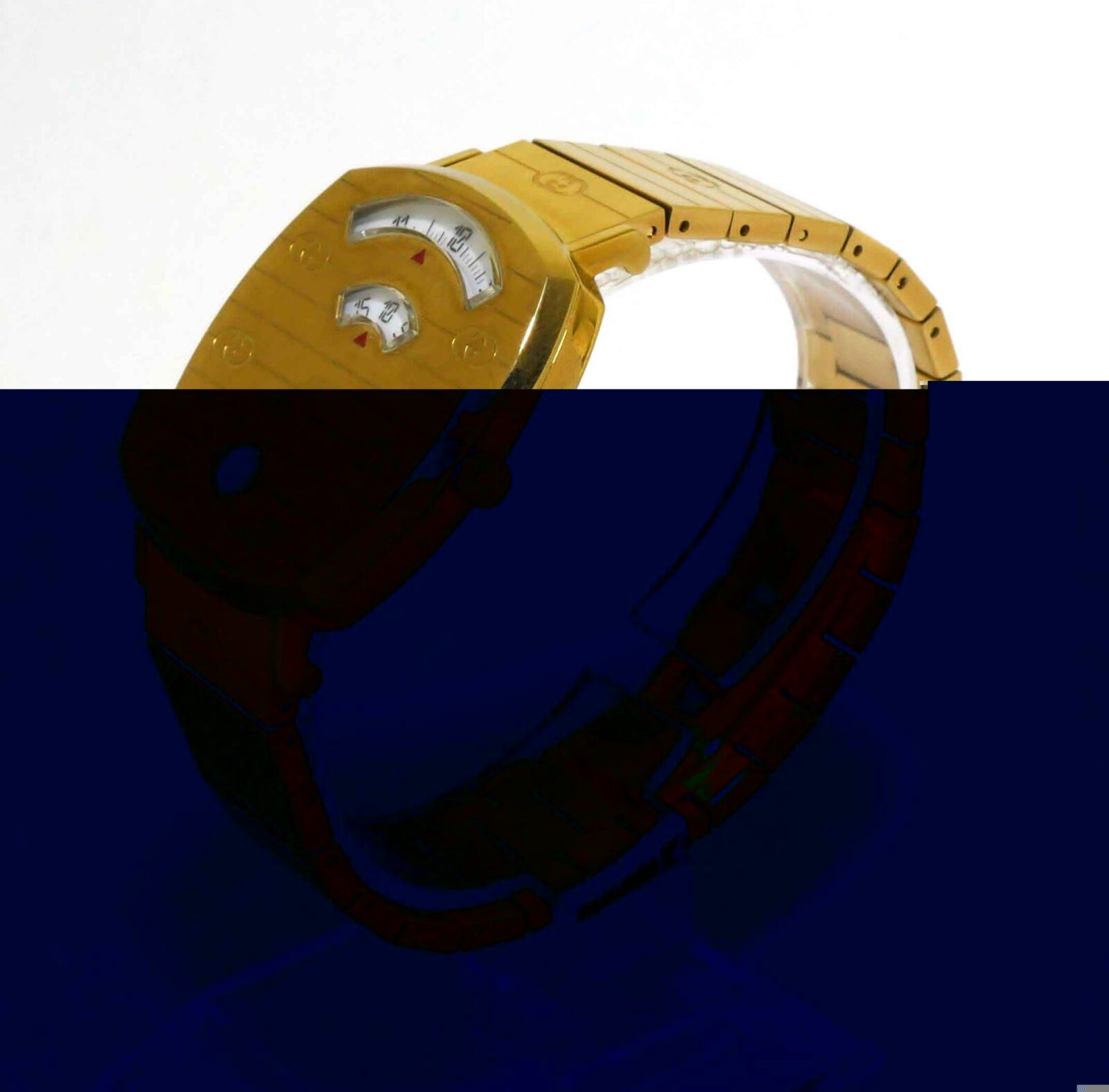 this gucci watch is in mint condition and appears to be unworn. It comes with its original box and all original links.